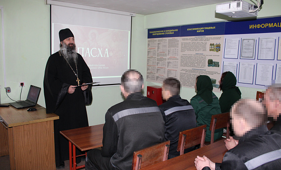 На Светлой седмице руководитель отдела по взаимодействию с пенитенциарными учреждениями провел миссионерскую встречу с осужденными, посвященную празднику Пасхи