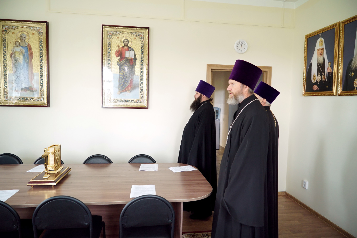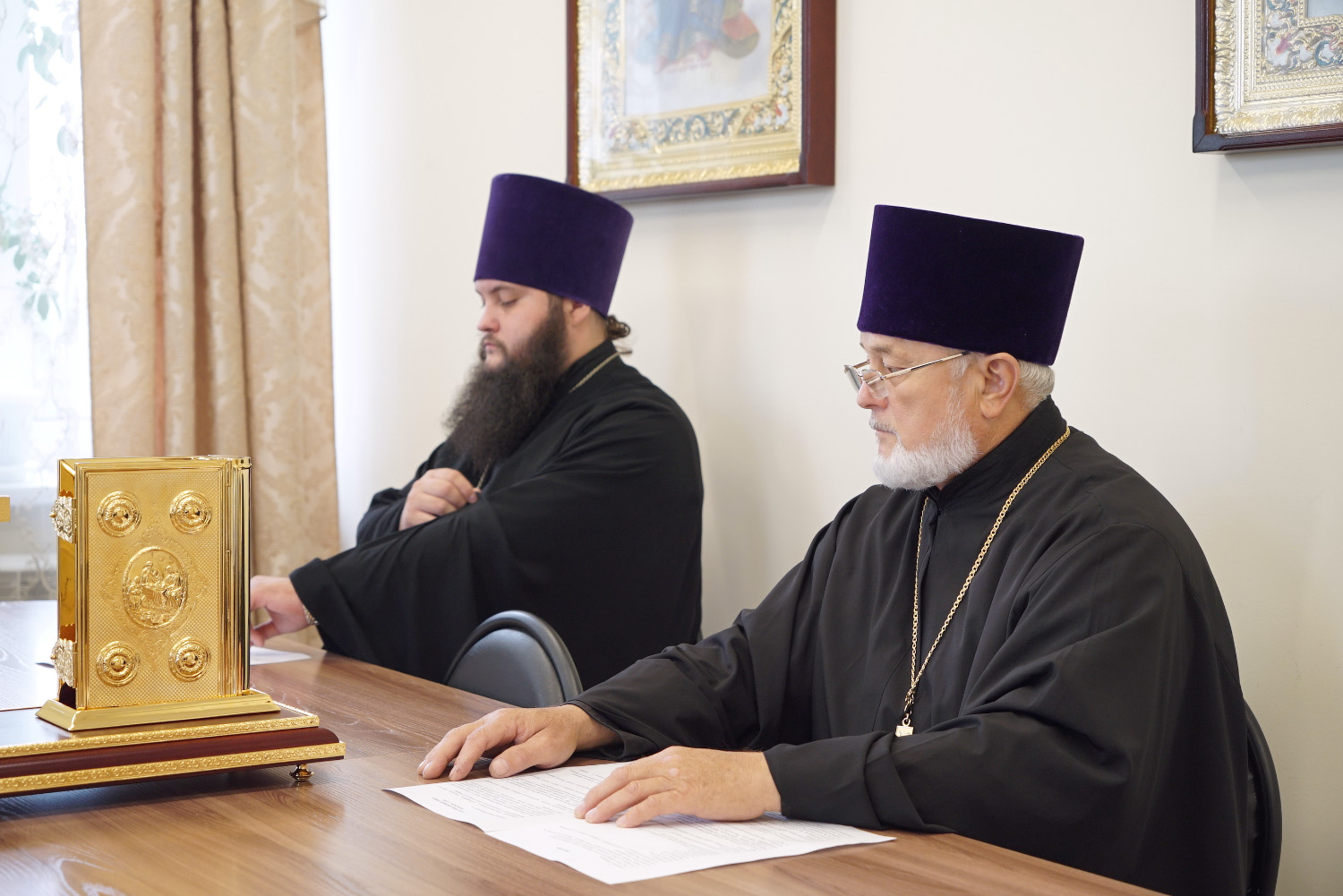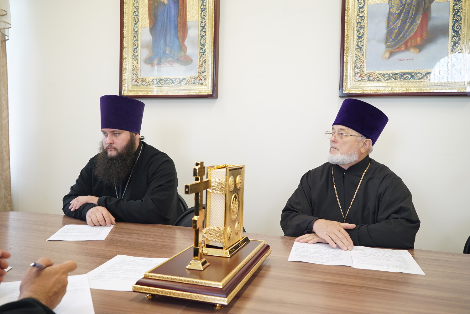 На заседание были приглашены руководители епархиальных отделов: по культуре – иерей Василий Давыдкин, религиозного образования и катехизации – иерей Иоанн Шкуропацкий.