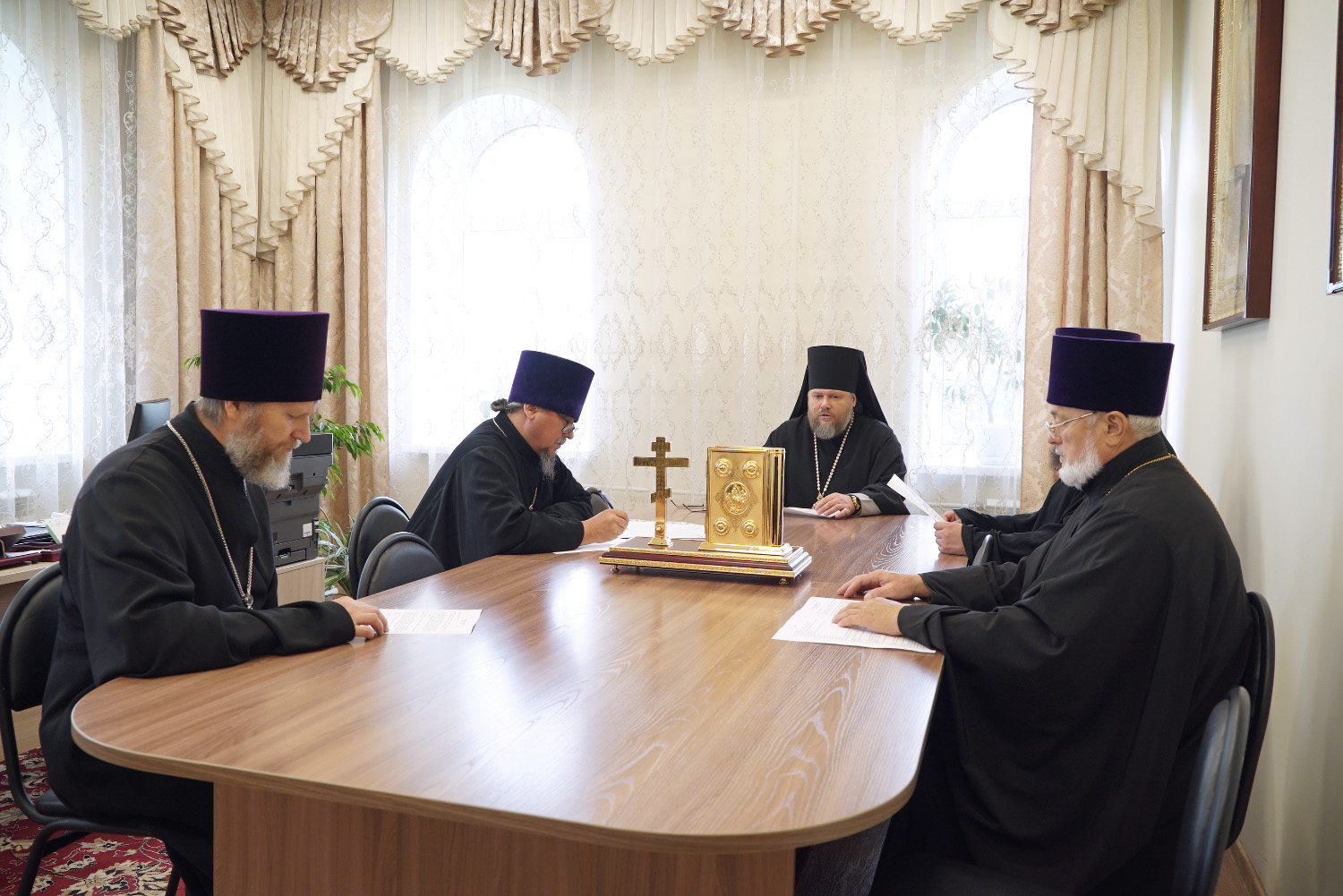 В заседании приняли участие секретарь епархии протоиерей Валерий Замятин и члены совета протоиерей Александр Жгунов, иерей Леонид Клепиков, иерей Александр Лобанов.