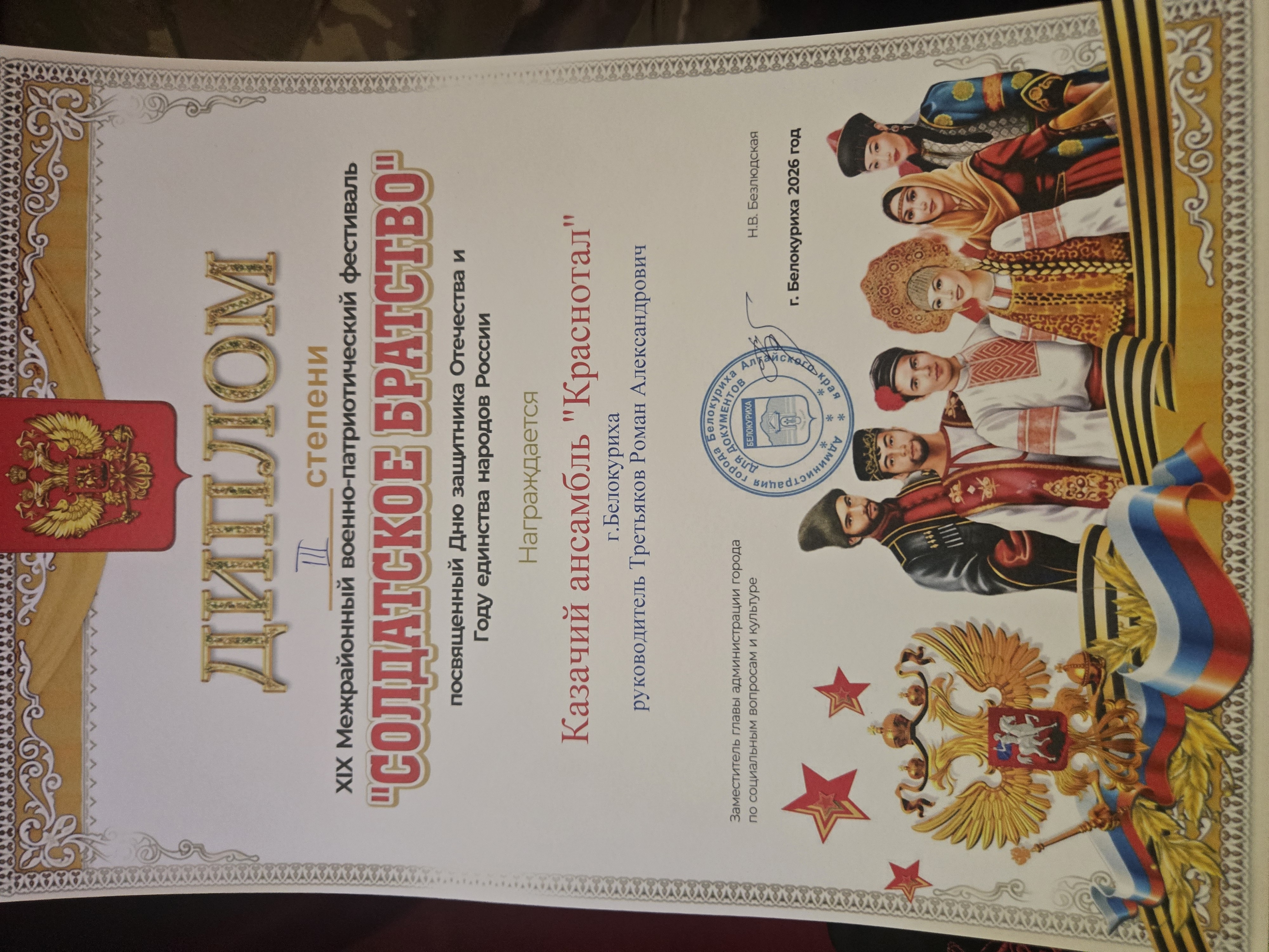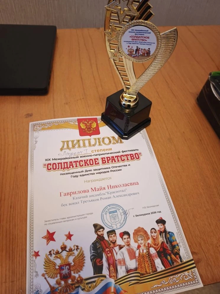 По итогам фестиваля казачий ансамбль «Краснотал» получил диплом 3 степени, а соло Майи Николаевны с бэквокалом отца Романа получил диплом лауреата 1 степени.
