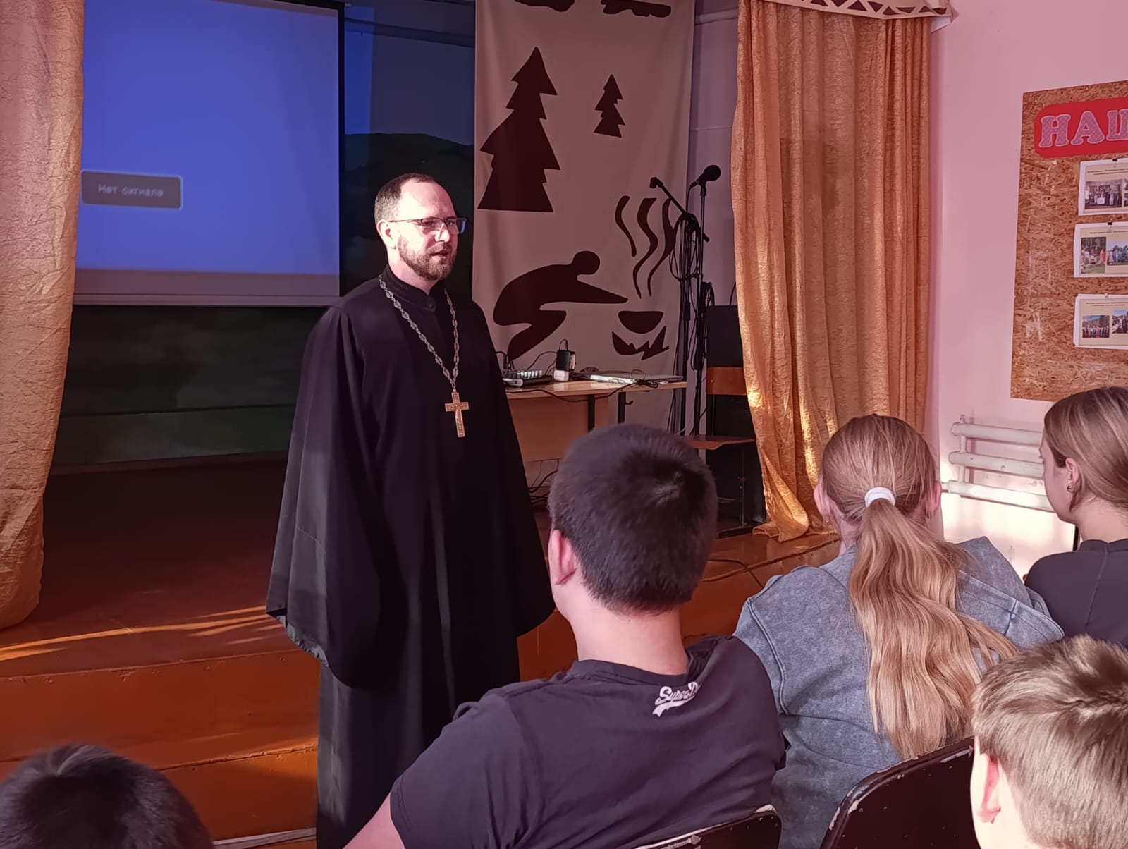 В беседе приняли участие благочинный Красногорского округа иерей Сергий Юречко, капитан полиции Таскина Дарья Александровна и специалист отдела по делам молодёжи и спорту районной администрации Дайбова Светлана Владимировна.