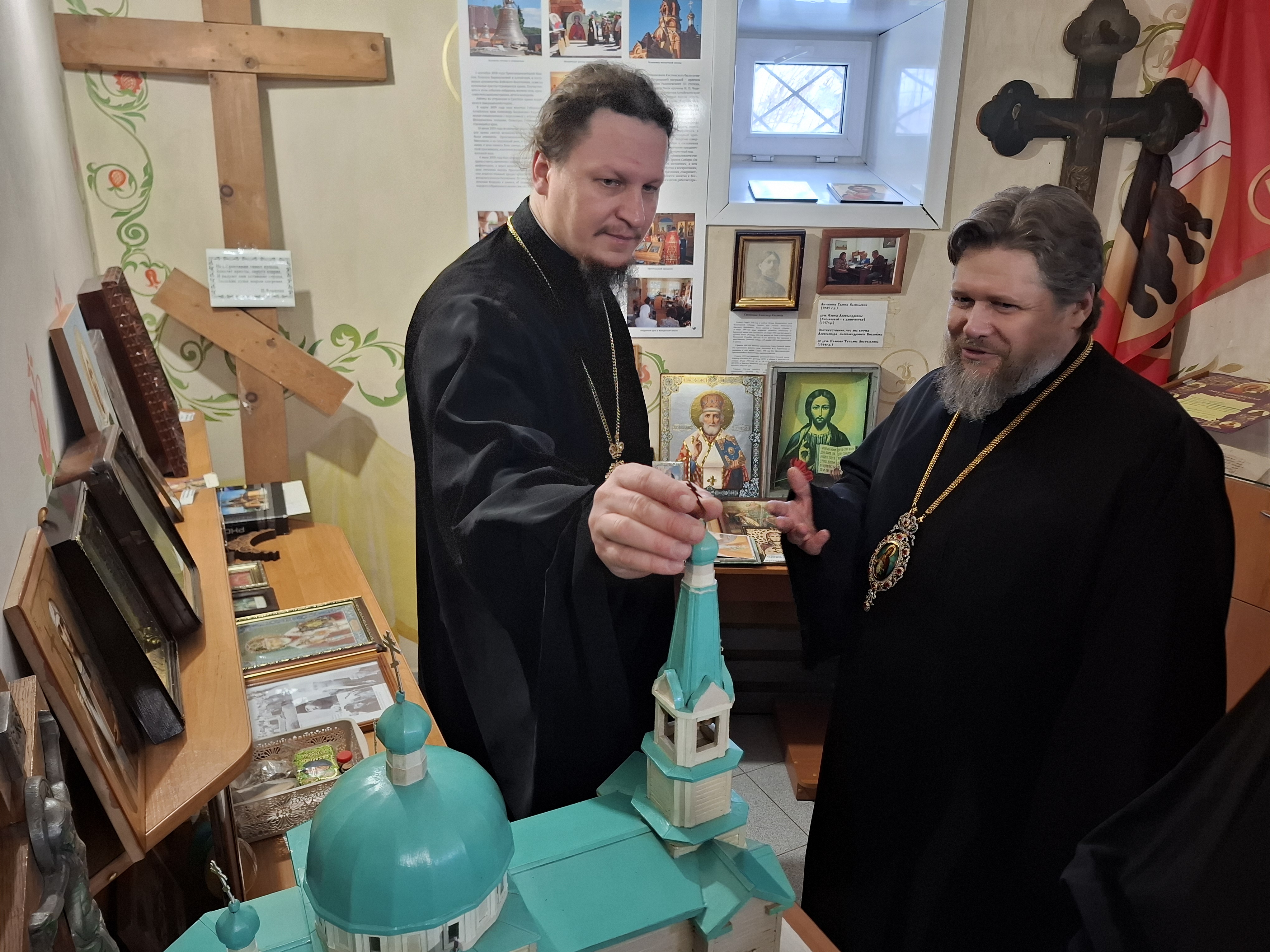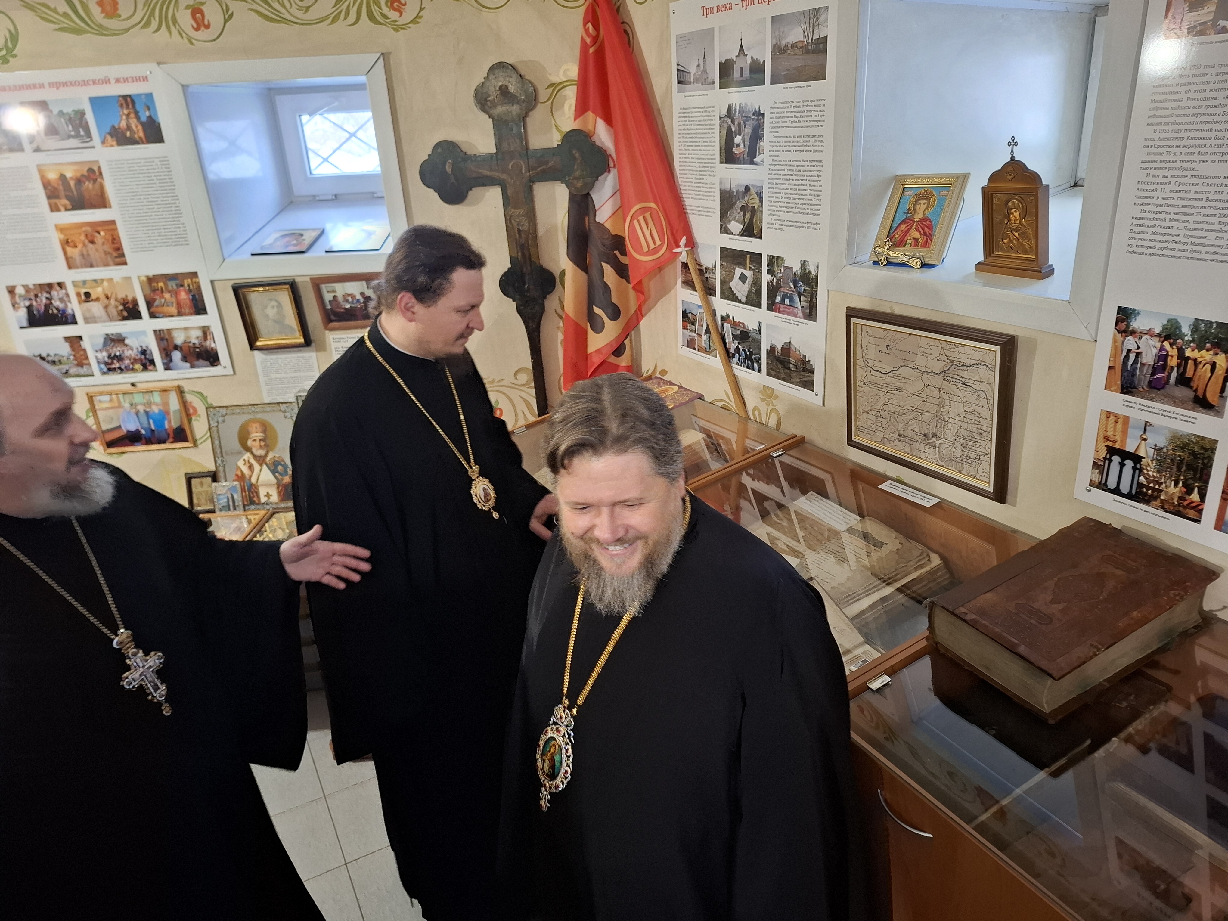 7 декабря, по окончании богослужения в храме святой великомученицы Екатерины Александрийской села Сростки, Преосвященный Серафим и Преосвященный Макарий посетили музейную комнату храма и ознакомились с её экспозицией.