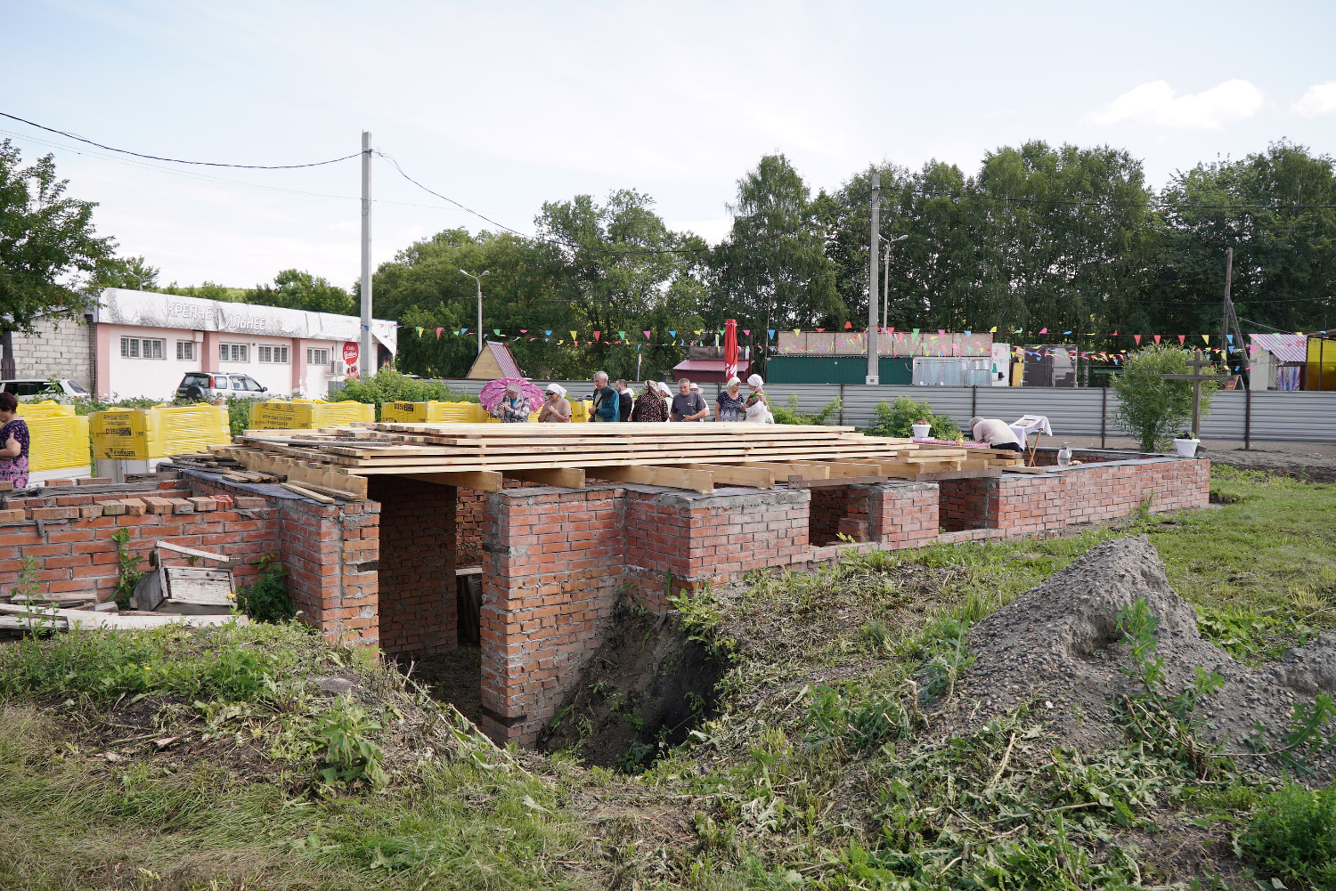 Церковь будет построена из камня, материал завезен на ее территорию. Нулевой цикл строительства уже завершен.