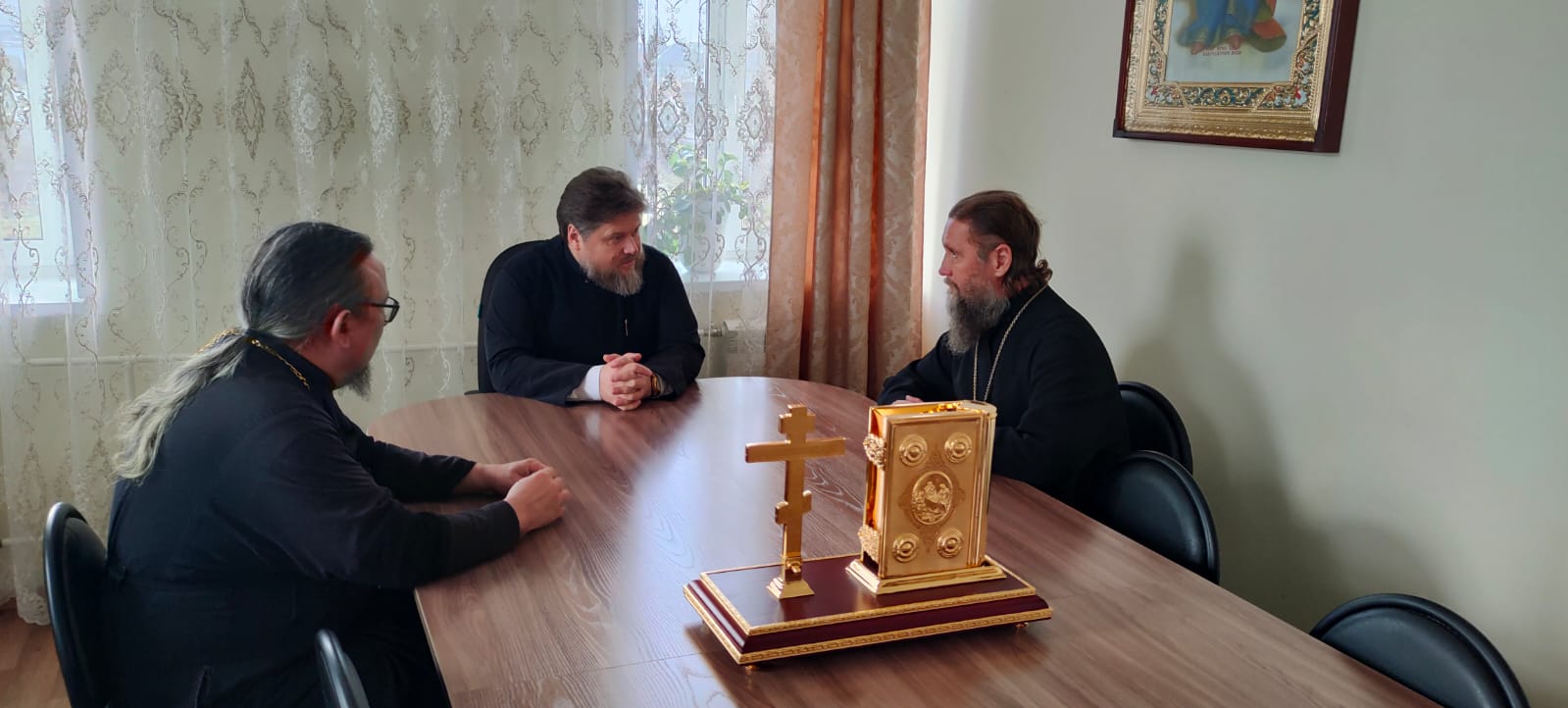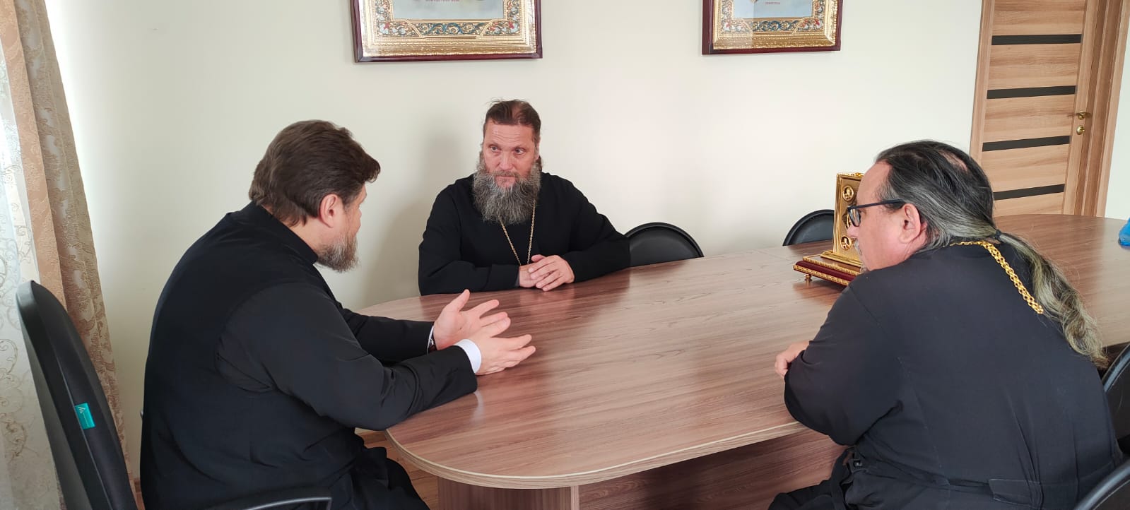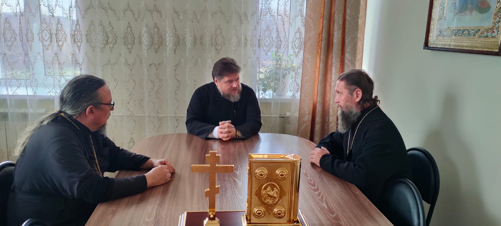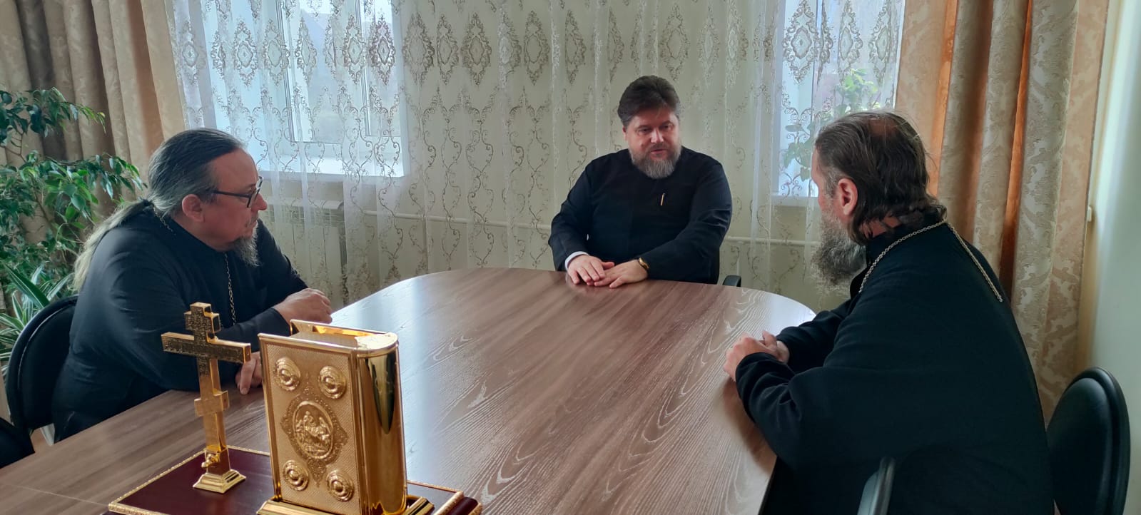 28 октября епископ Бийский и Белокурихинский Серафим провел рабочее совещание в Бийском епархиальном управлении с участием секретаря епархии протоиерея Валерия Замятина и руководителя епархиального отдела по взаимодействию с вооруженными силами и правоохранительными органами иерея Димитрия Камбалина.