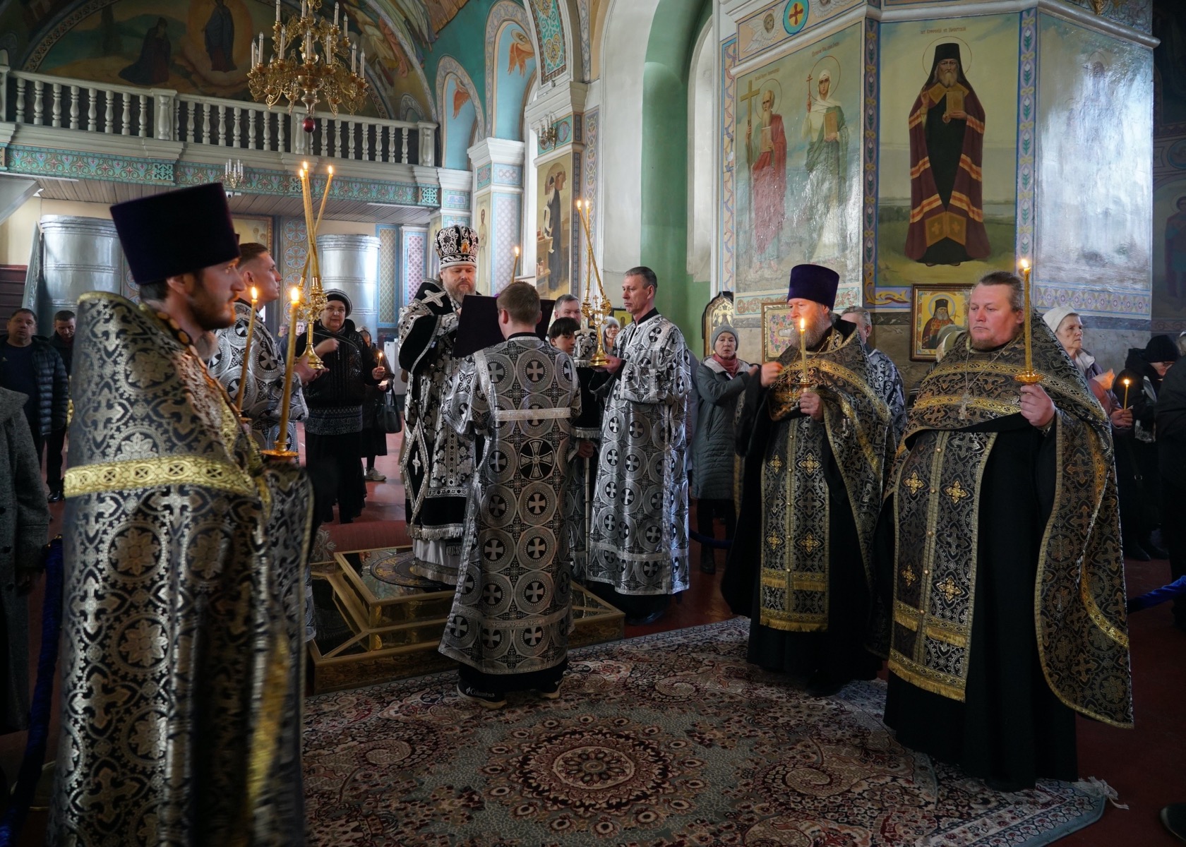 Преосвященному владыке сослужили: ключарь собора протоиерей Александр Петров, протоиерей Владимир Ащеулов, иерей Иоанн Шкуропацкий, иерей Артемий Золотых, диакон Никита Гологузов, диакон Андрей Поповичев.