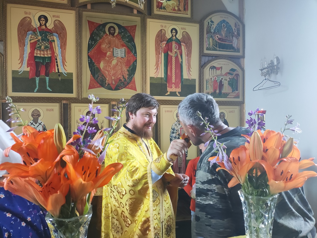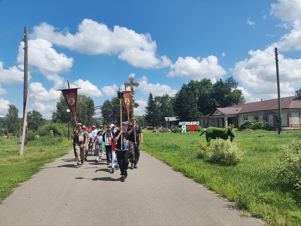 После утренней трапезы крестный ход проследовал к селу Антоньевка Петропавловского района. По прибытии к храму преподобных Антония и Феодосия Печерских в Антоньевке крестоходцев встретил настоятель иерей Георгий Степанищев и окропил их святой водой. Желающие посетили святой источник Параскевы Пятницы, расположенный поблизости от села.