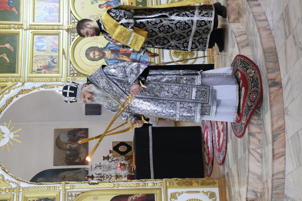 Его Преосвященству сослужили: благочинный Троицкого церковного округа и настоятель храма протоиерей Александр Жгунов, диакон Никита Гологузов.