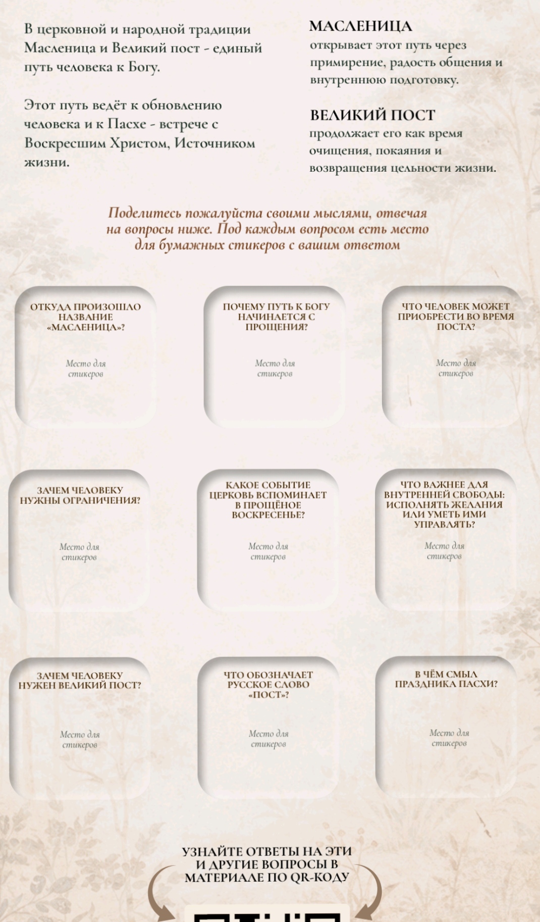 Эти материалы содержат сведения о традициях празднования Масленицы, подготовке к Пасхе, о Великом посте – пути к возвращению человека к единству с Богом.