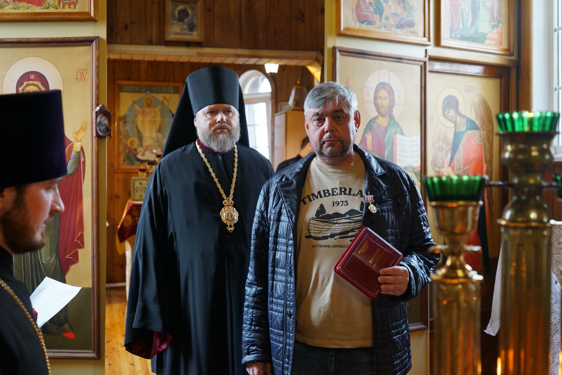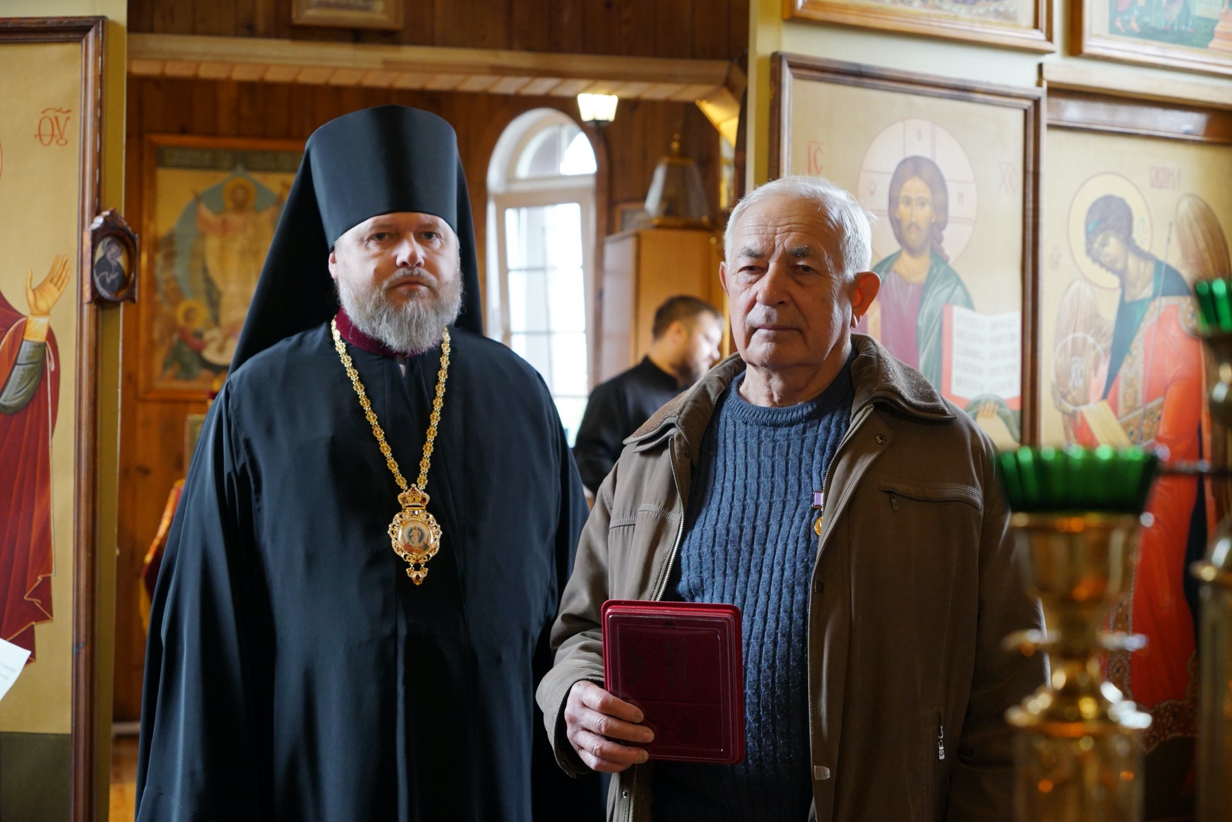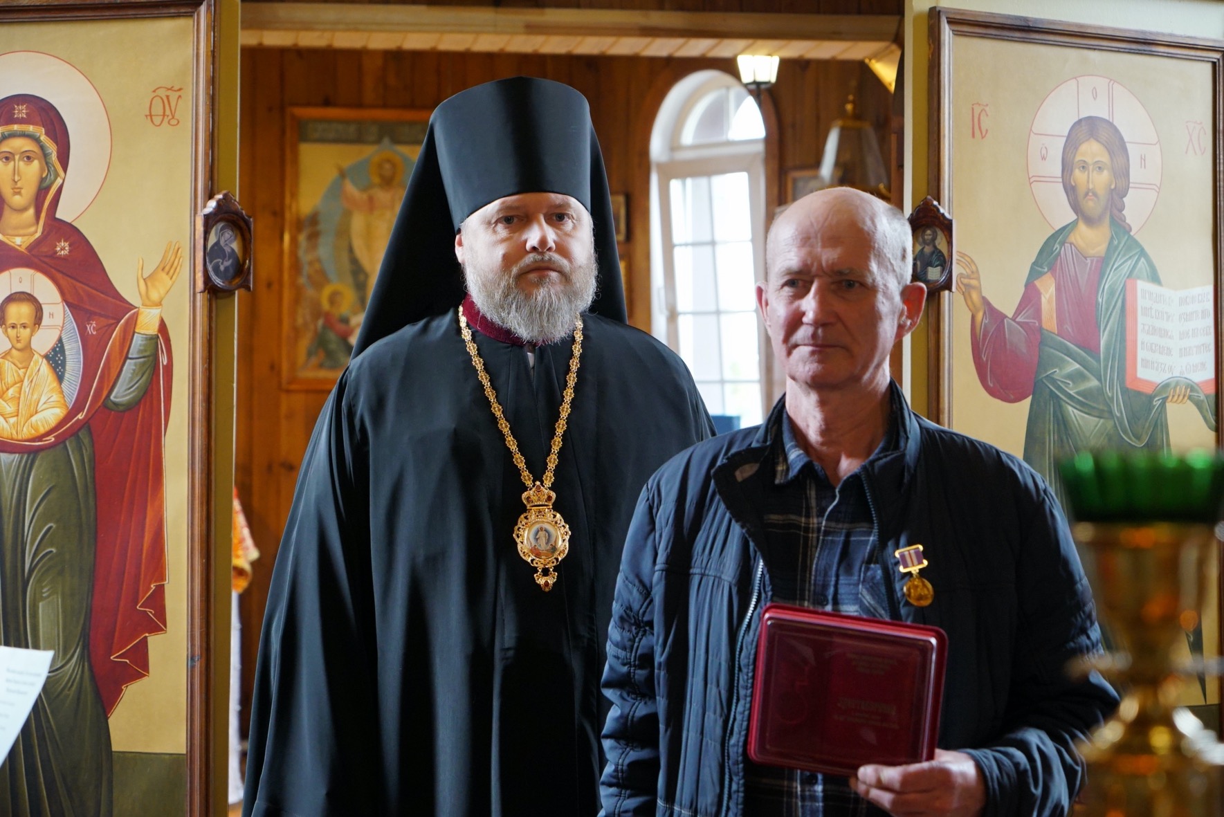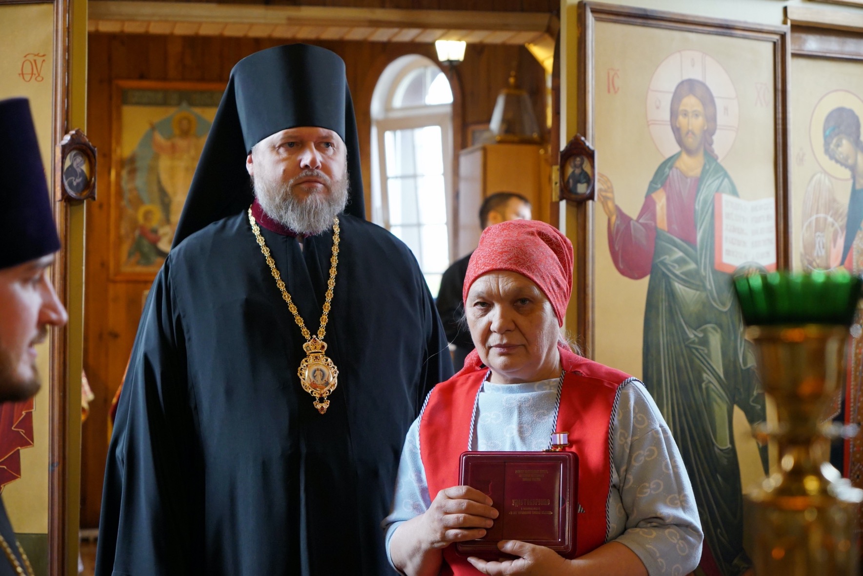 По окончании богослужения правящий архиерей наградил активных прихожан и работников храма юбилейными медалями к 10-летию образования Бийской епархии в составе Алтайской митрополии.