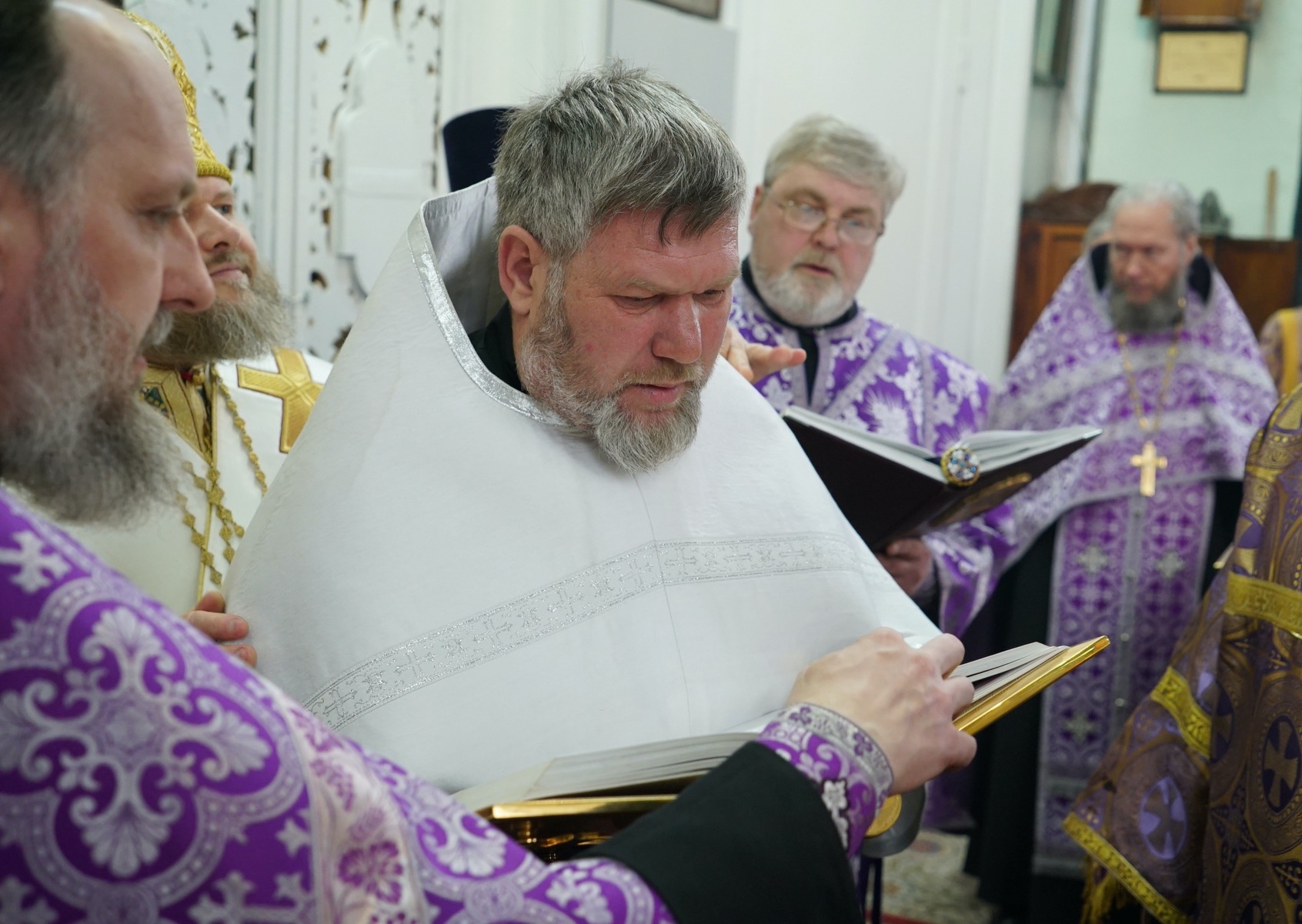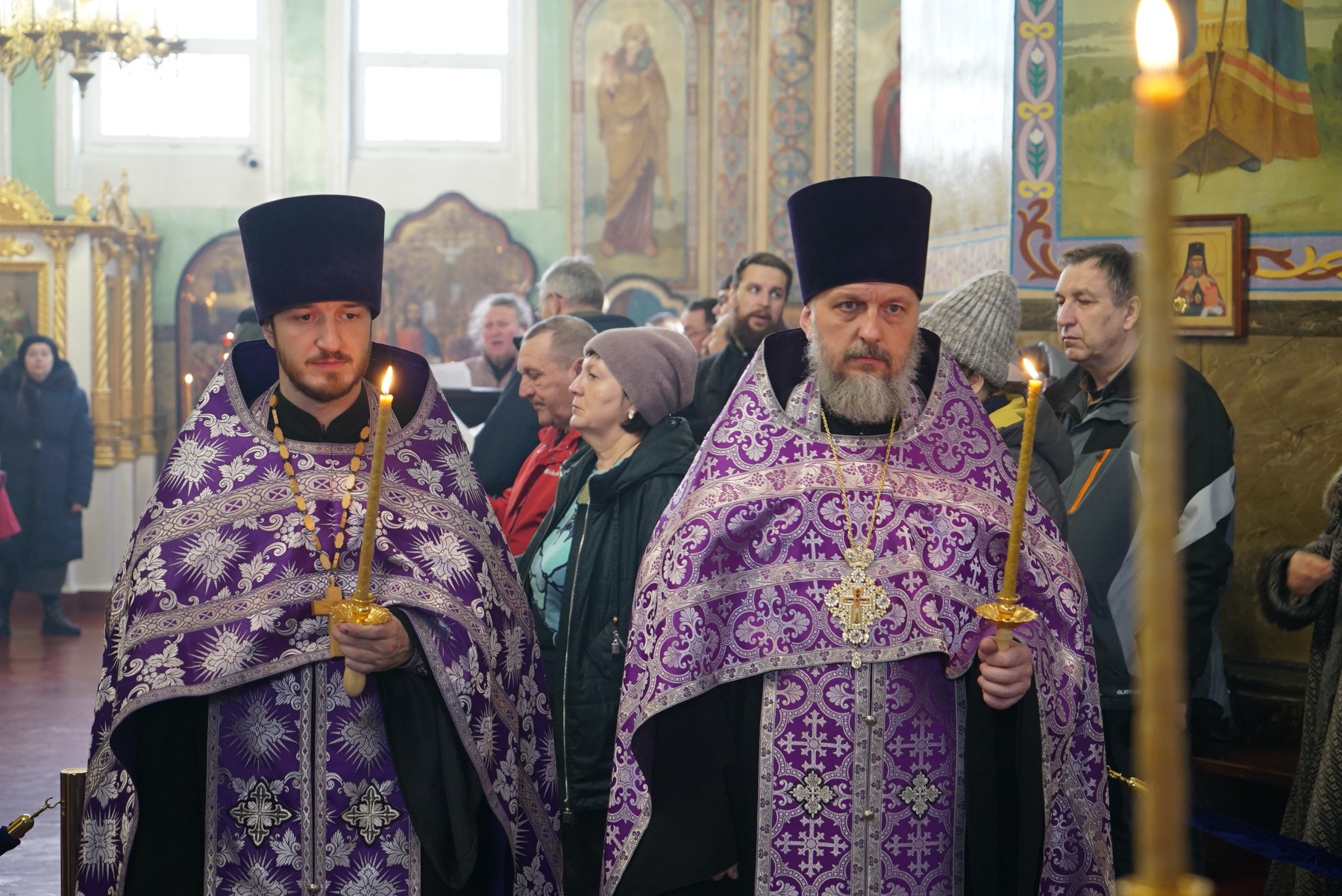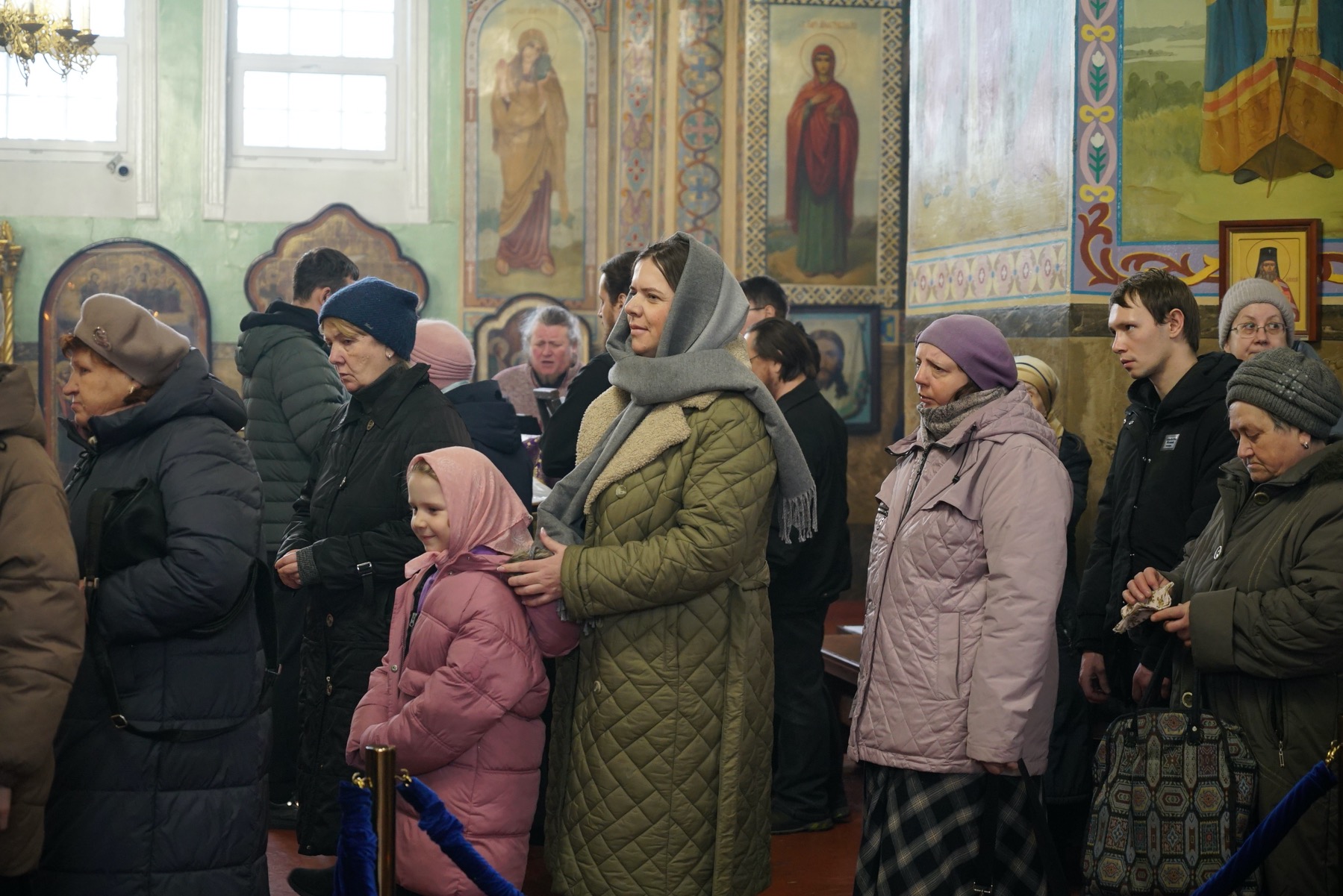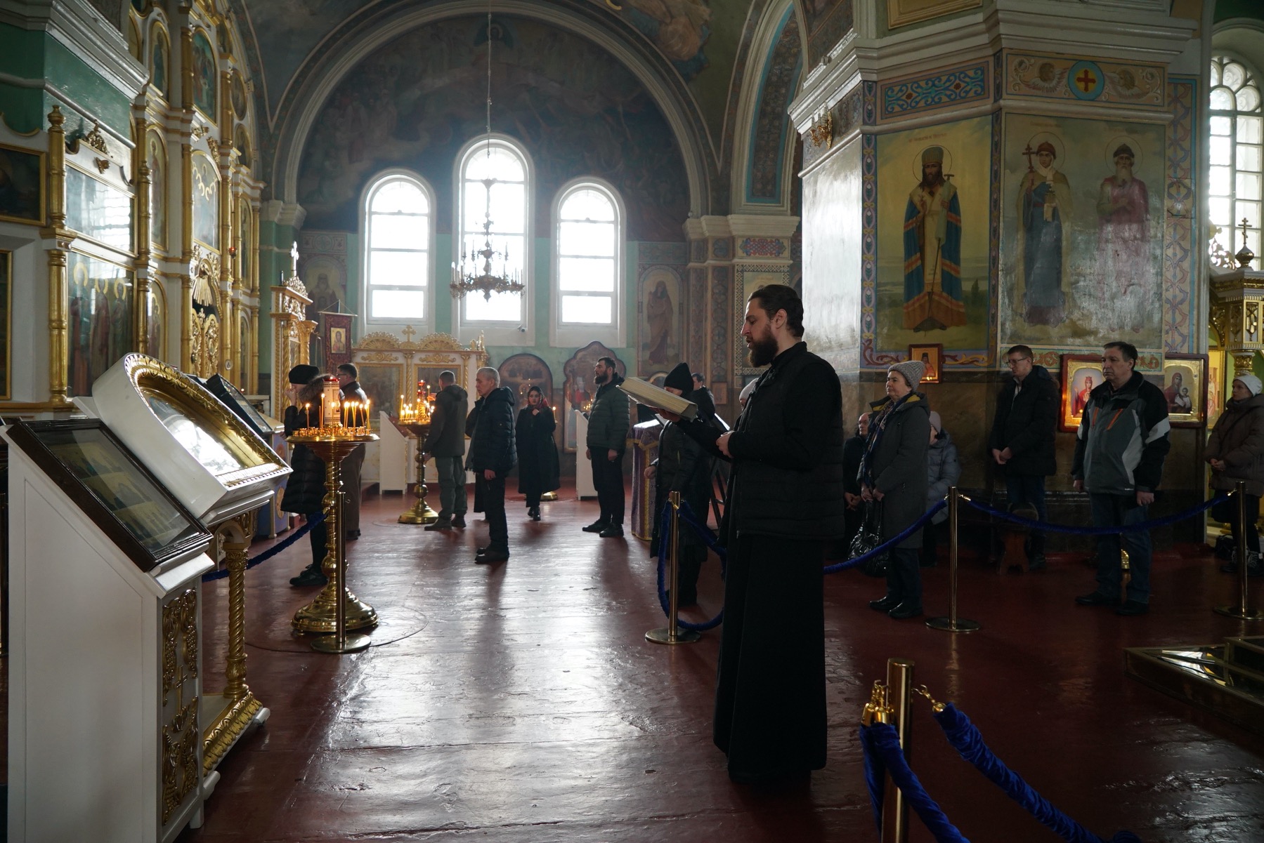 Преосвященному владыке сослужили: ключарь собора протоиерей Александр Петров, протоиерей Владимир Ащеулов, иерей Иоанн Шкуропацкий, диакон Вадим Шпак, диакон Никита Гологузов.