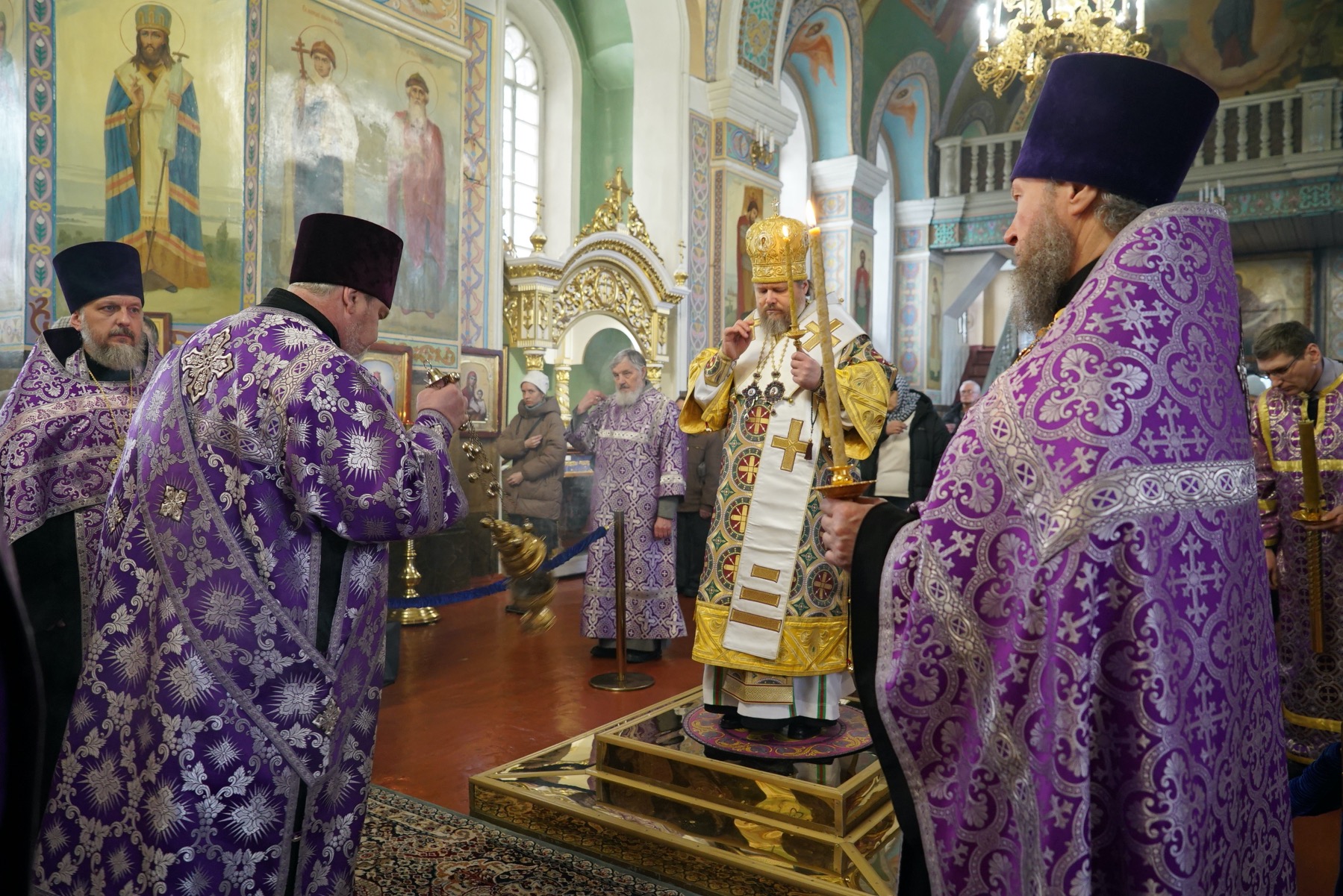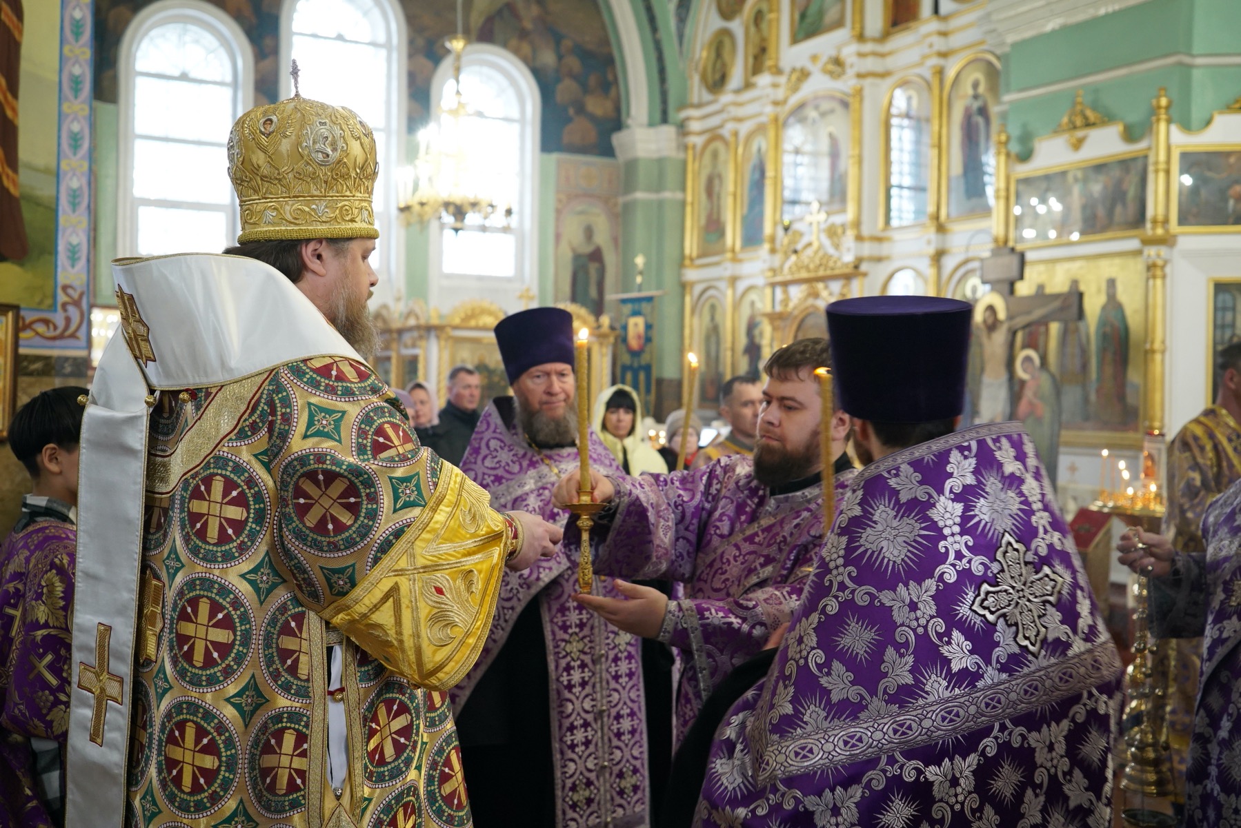 8 марта, в канун Недели 1-й Великого поста, Торжества Православия, Первого и второго обретения главы Пророка, Предтечи и Крестителя Господня Иоанна, епископ Бийский и Белокурихинский Серафим совершил всенощное бдение в Успенском кафедральном соборе города Бийска.
