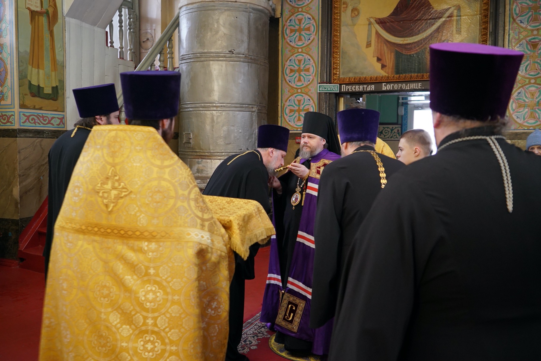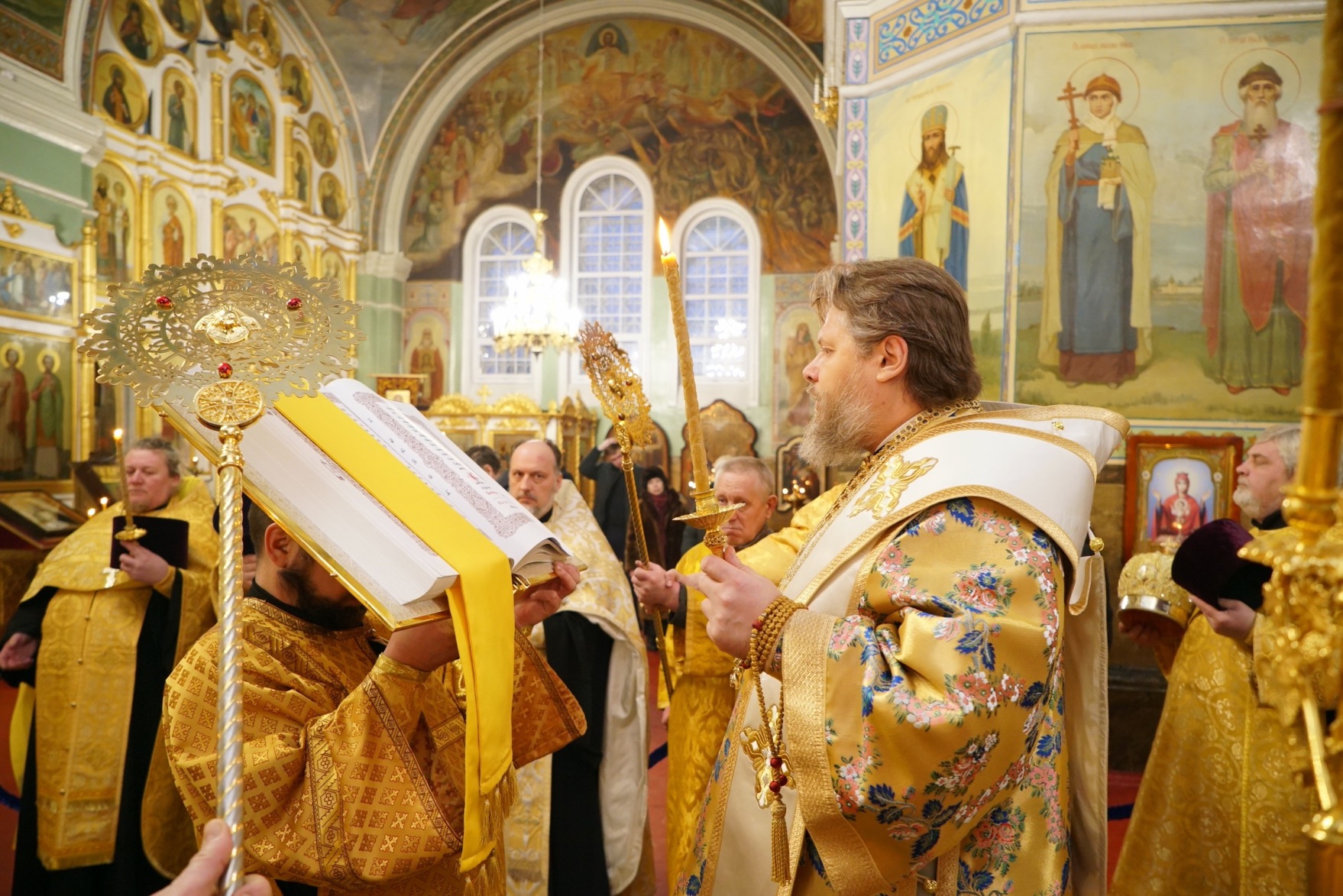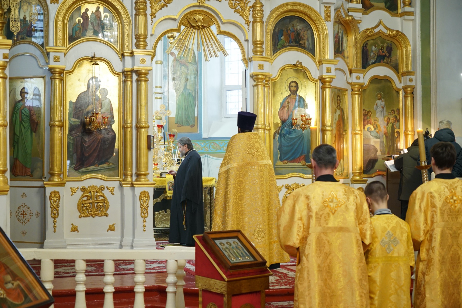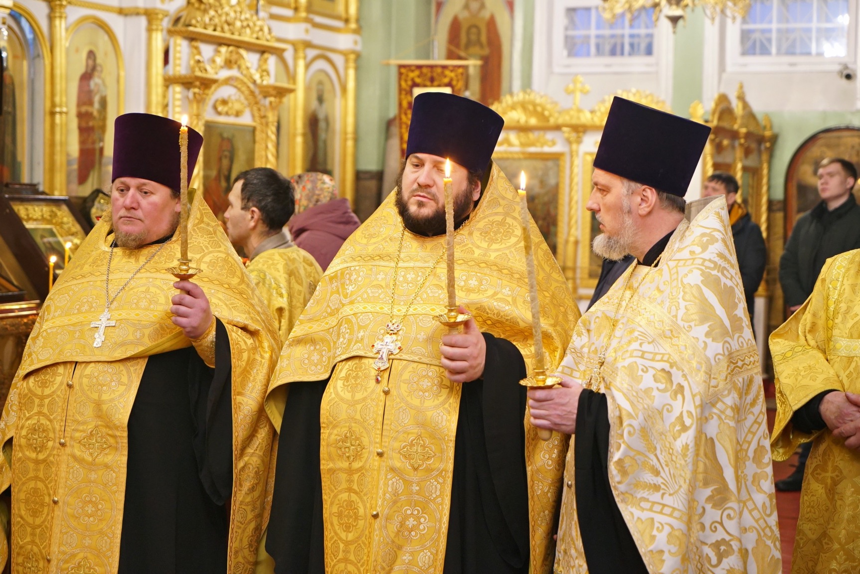 Преосвященному владыке сослужили: ключарь собора протоиерей Александр Петров, протоиерей Владимир Ащеулов, иерей Димитрий Щербаков, иерей Иоанн Шкуропацкий, иерей Артемий Золотых, диакон Вадим Шпак, диакон Никита Гологузов, диакон Артемий Волков.