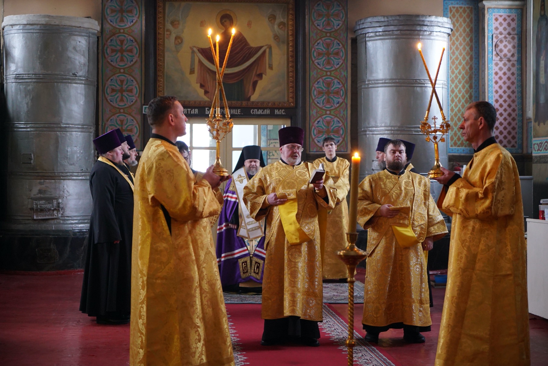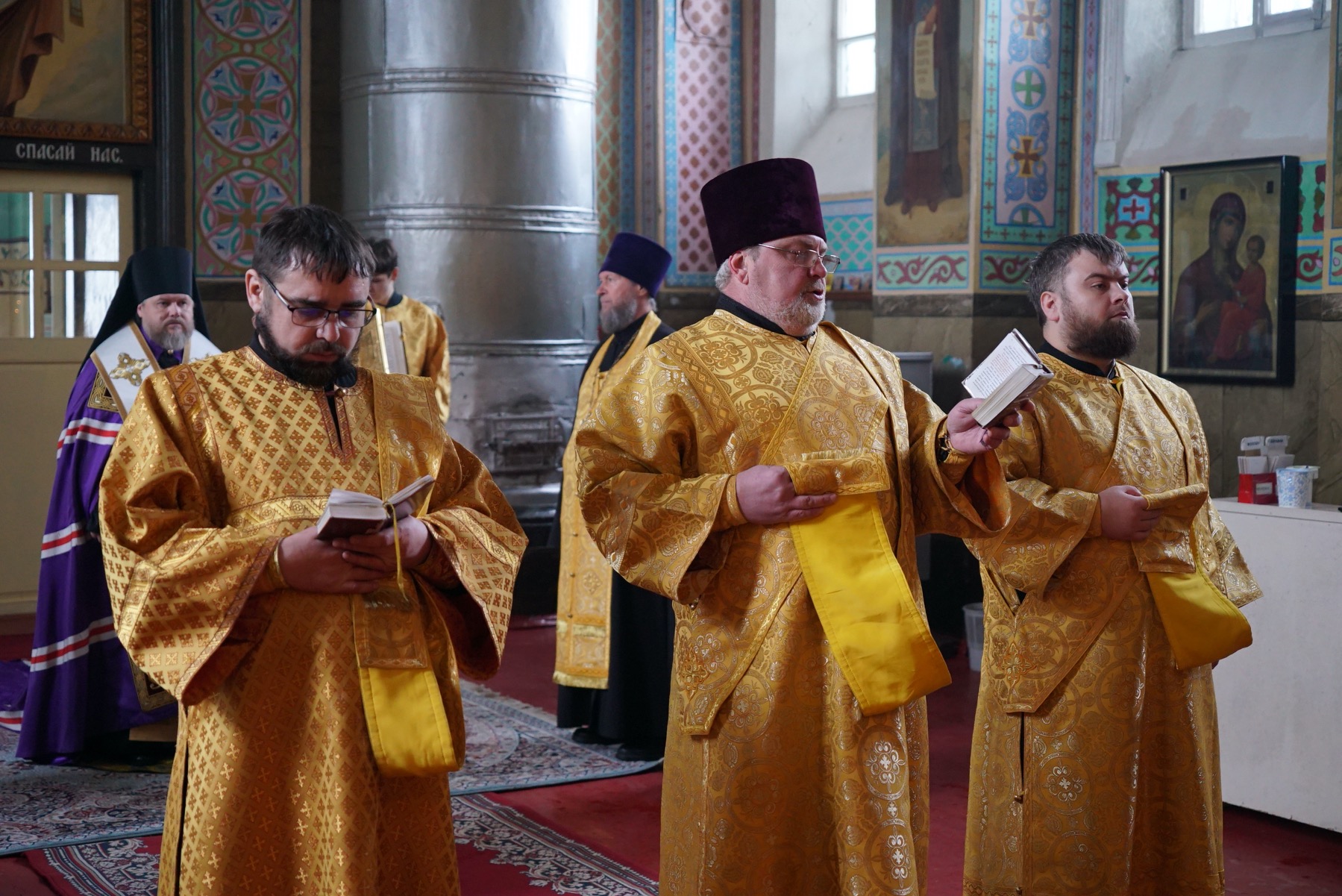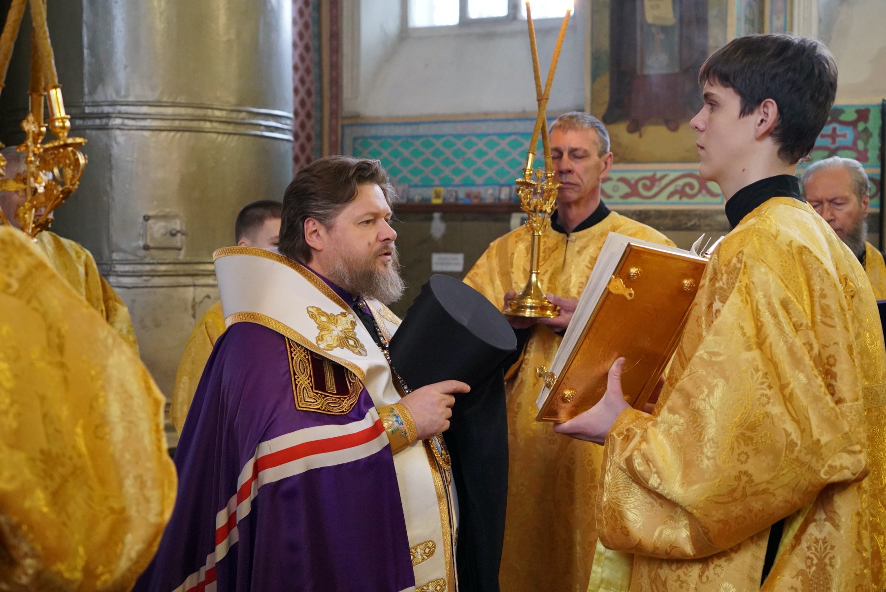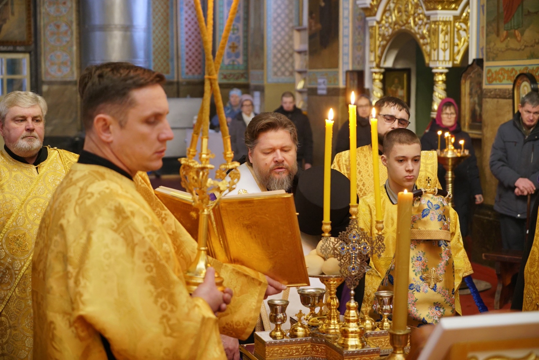 Преосвященному владыке сослужили: ключарь собора протоиерей Александр Петров, протоиерей Владимир Ащеулов, иерей Димитрий Щербаков, иерей Иоанн Шкуропацкий, иерей Артемий Золотых, диакон Вадим Шпак, диакон Никита Гологузов, диакон Артемий Волков.