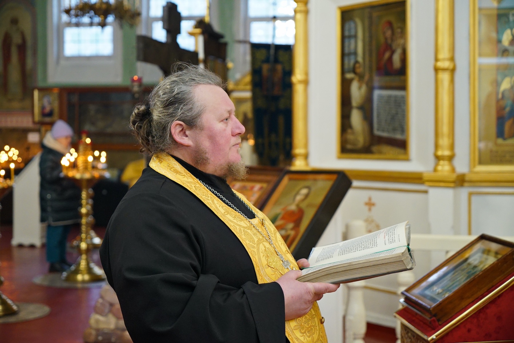 На утрене во время чтения канона владыка Серафим помазал верующих освященным елеем.