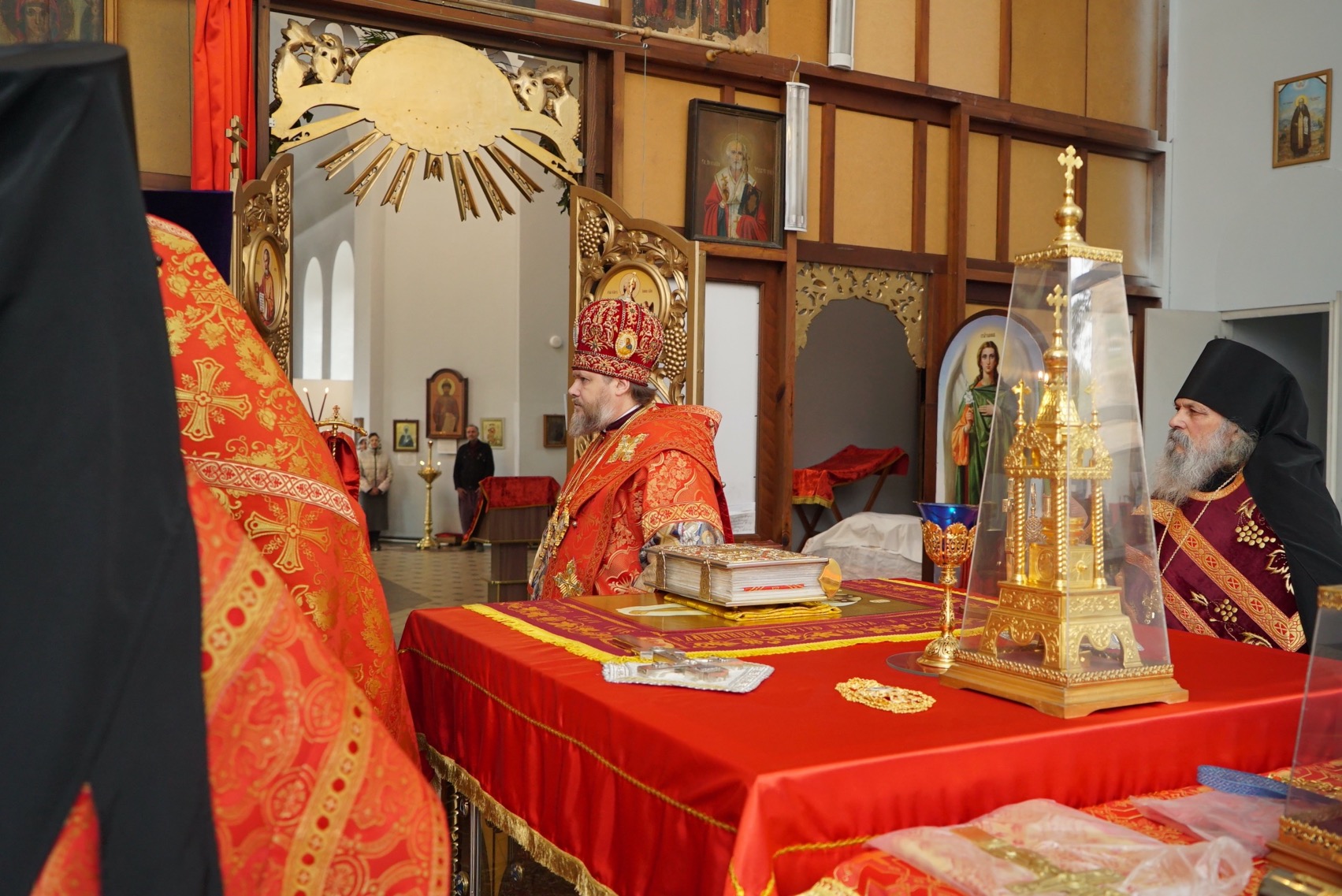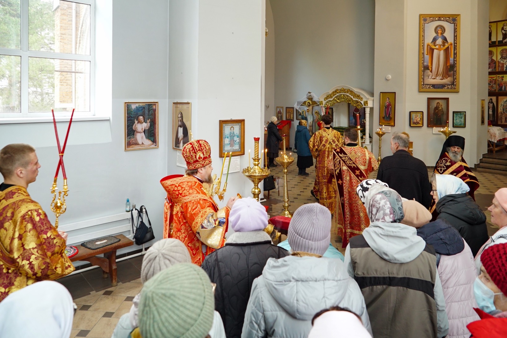 Преосвященному владыке сослужили: настоятель храма иеромонах Макарий (Михалев), иеромонах Никита (Москаленко), иерей Димитрий Щербаков, диакон Никита Гологузов.