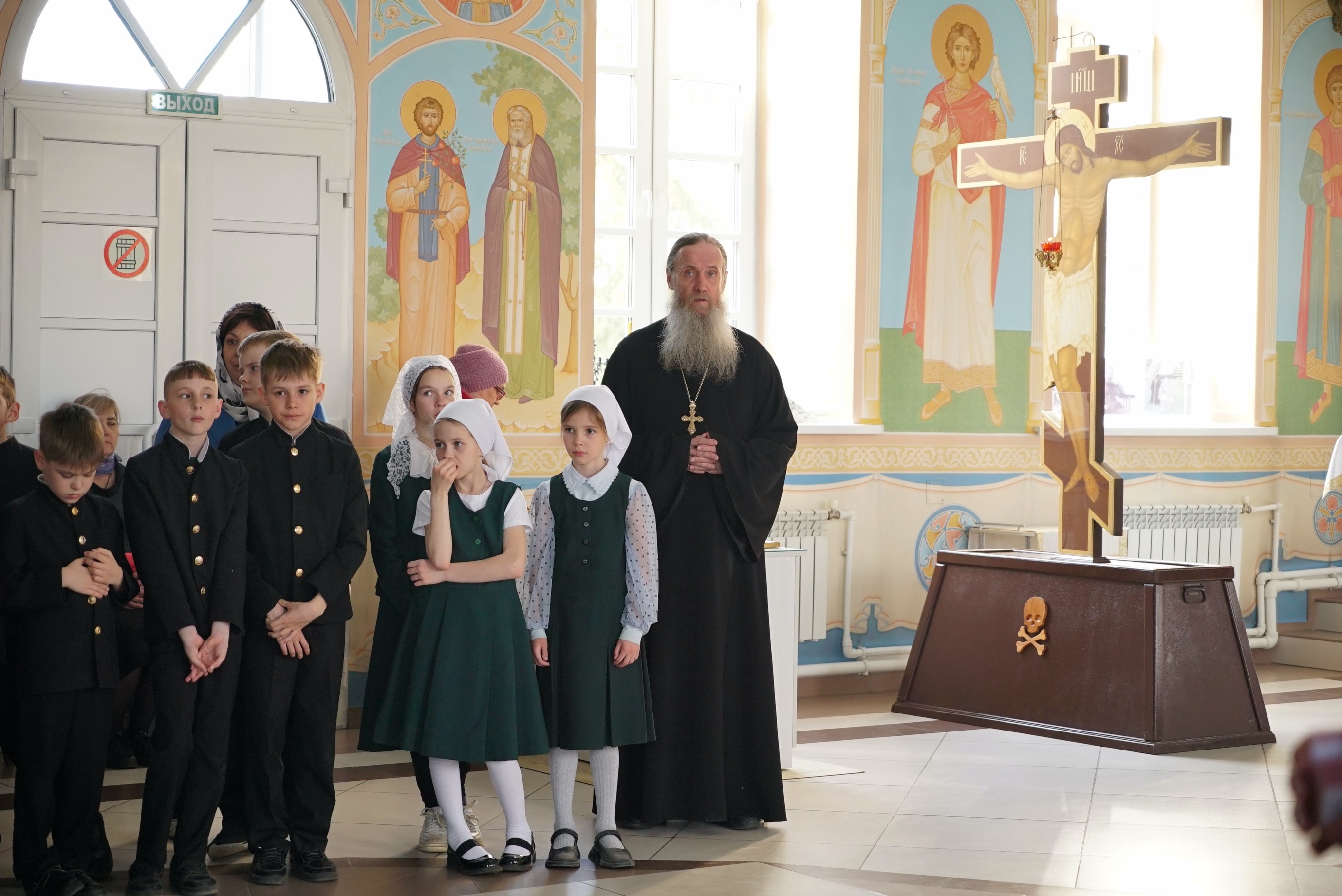 Преосвященному владыке сослужили: духовник школы протоиерей Вячеслав Трубин, иерей Симеон Медведев, протодиакон Вадим Шпак.