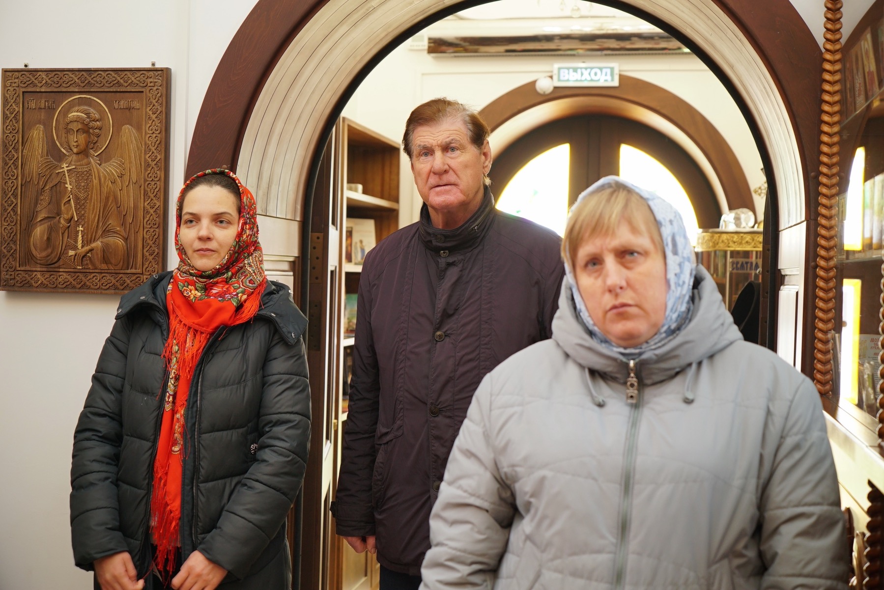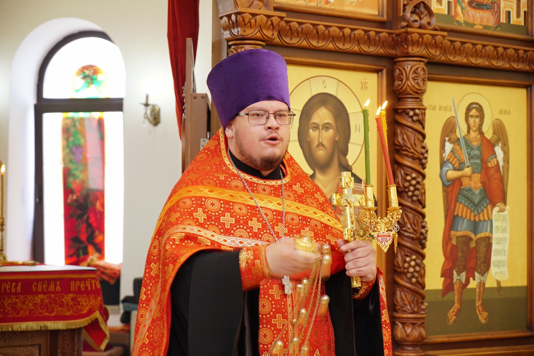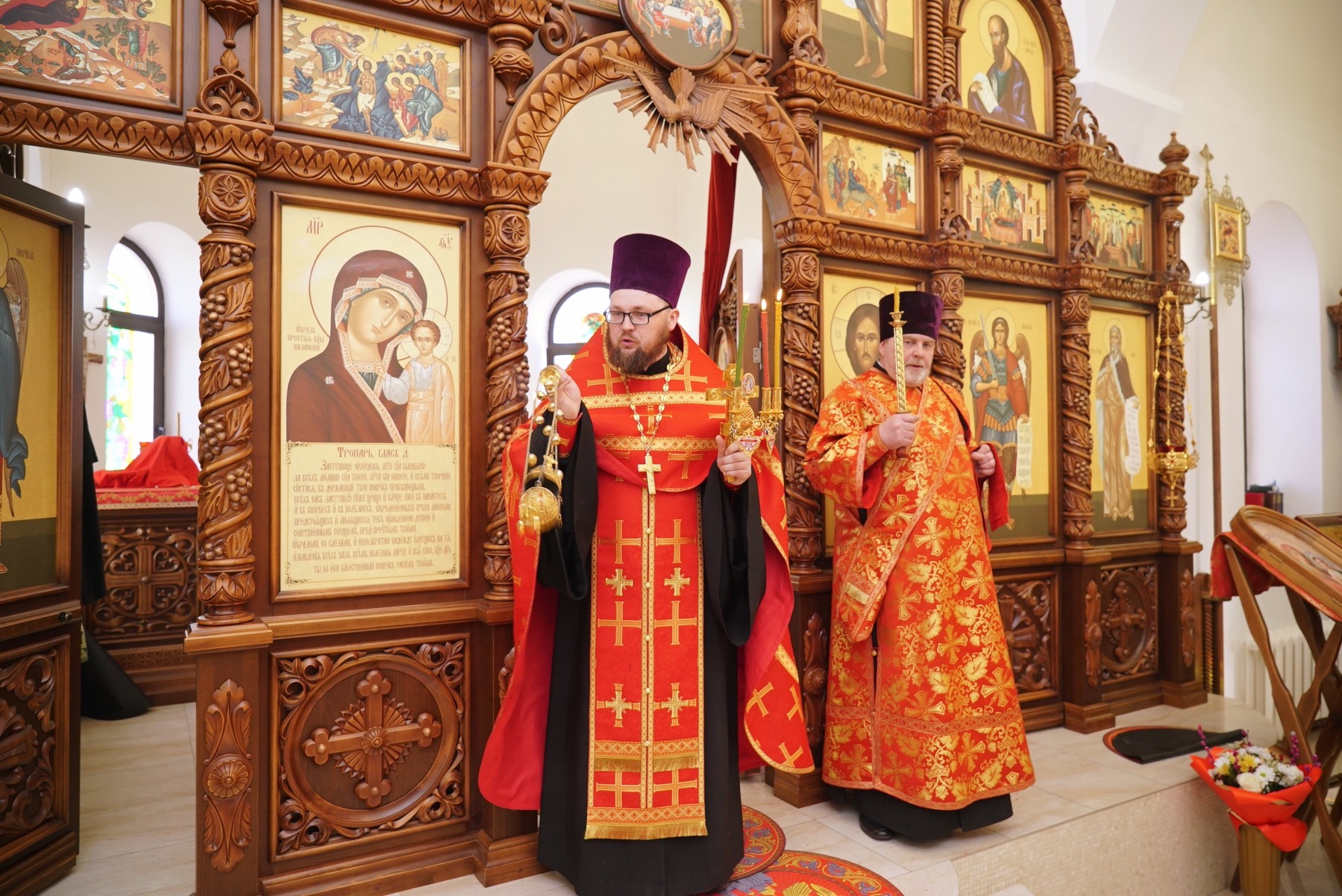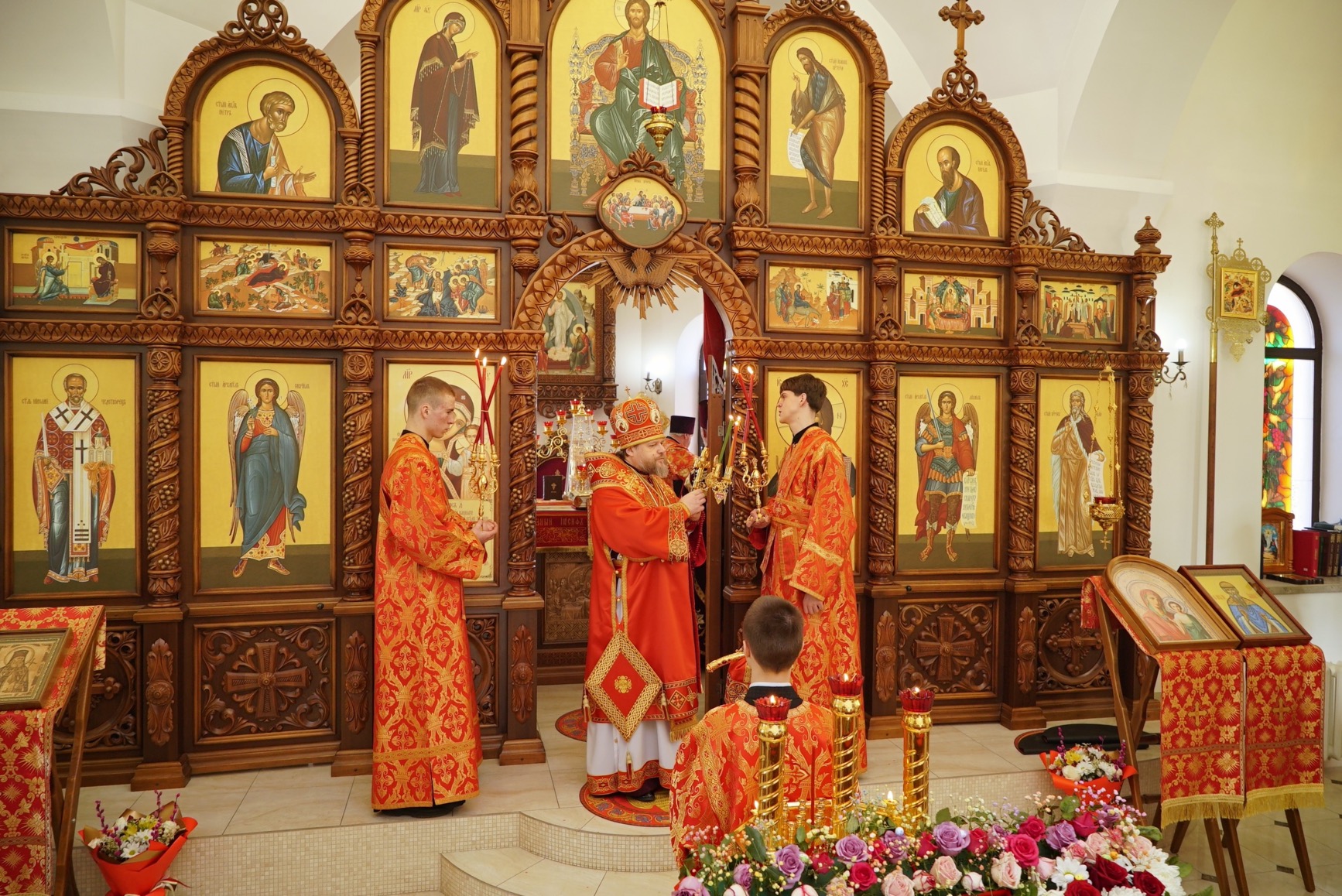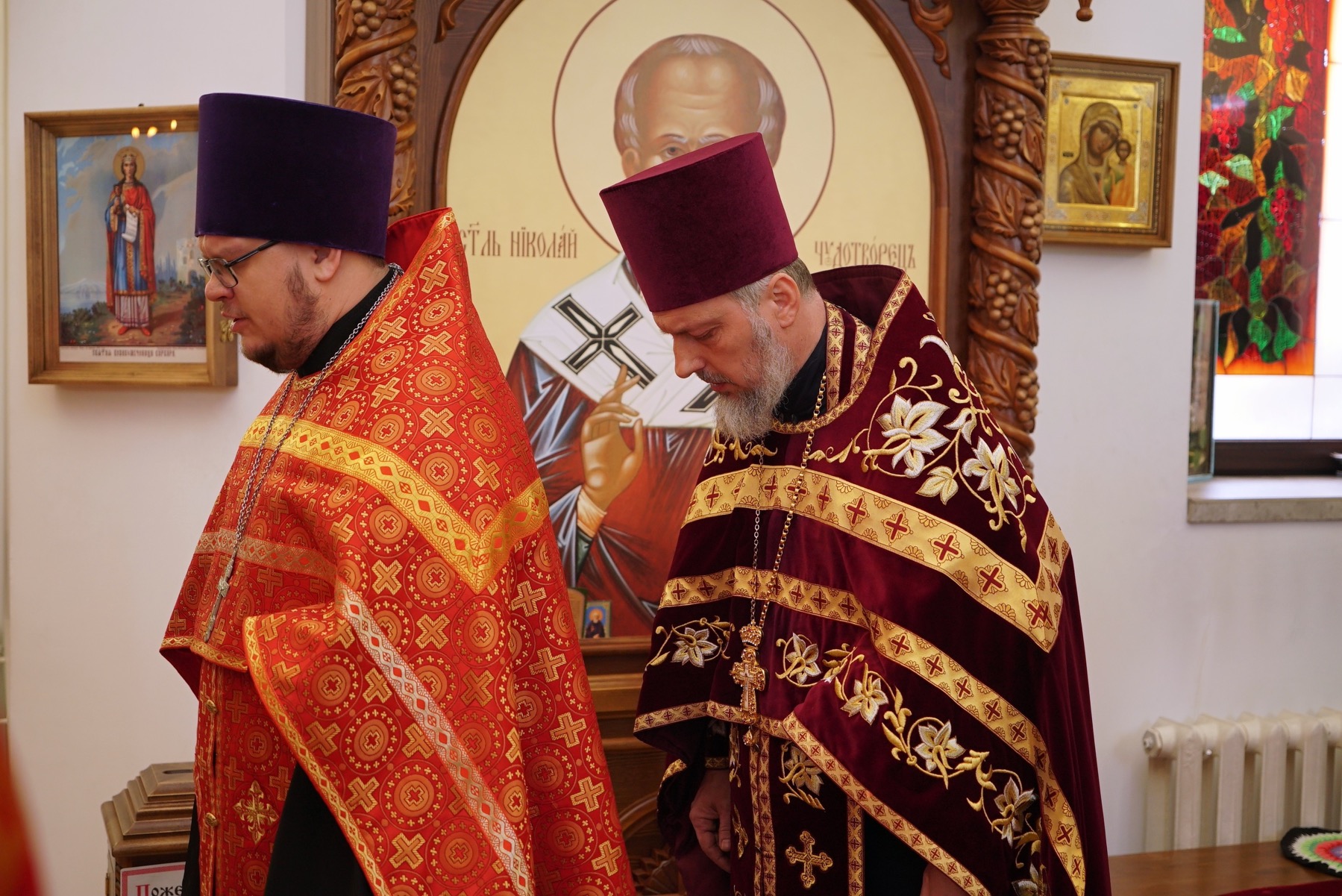 Преосвященному владыке сослужили: ключарь Успенского кафедрального собора протоиерей Александр Петров, настоятель храма иерей Даниил Тишков, иерей Иоанн Макаров, протодиакон Вадим Шпак.
