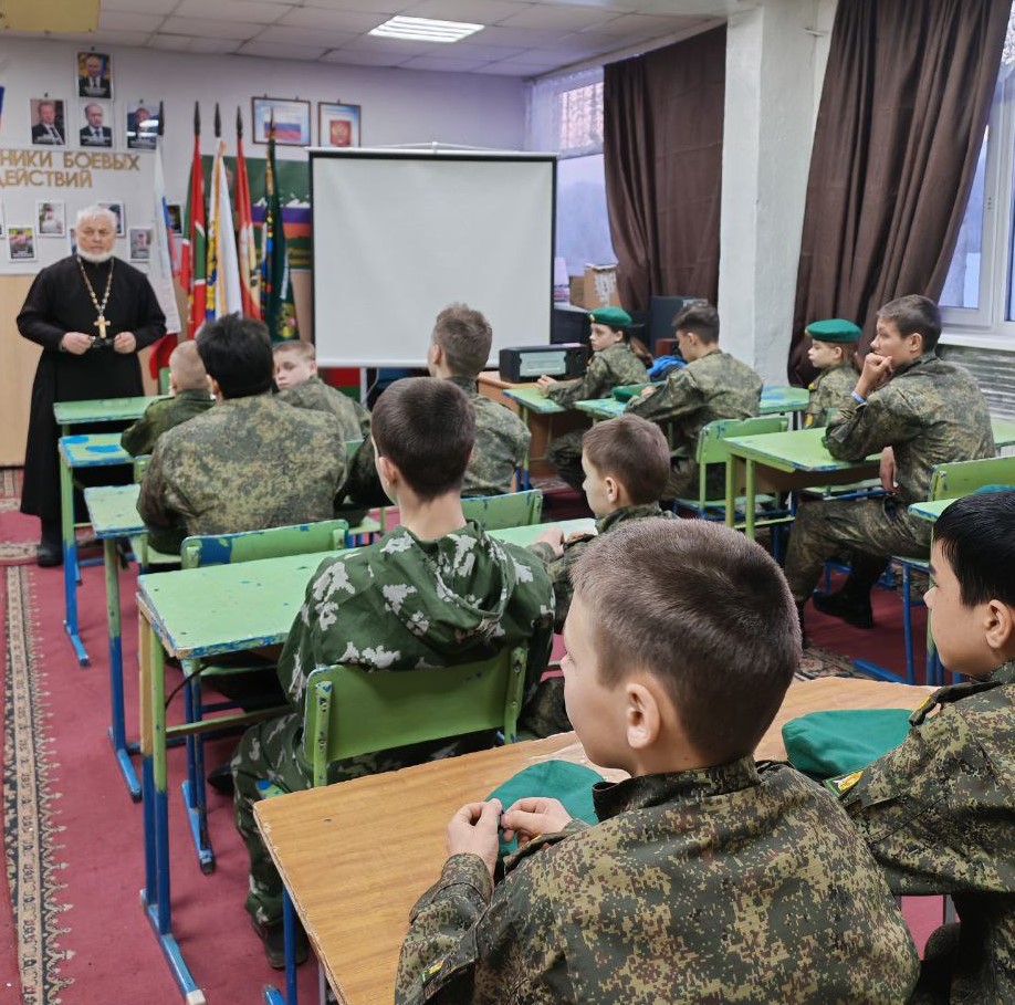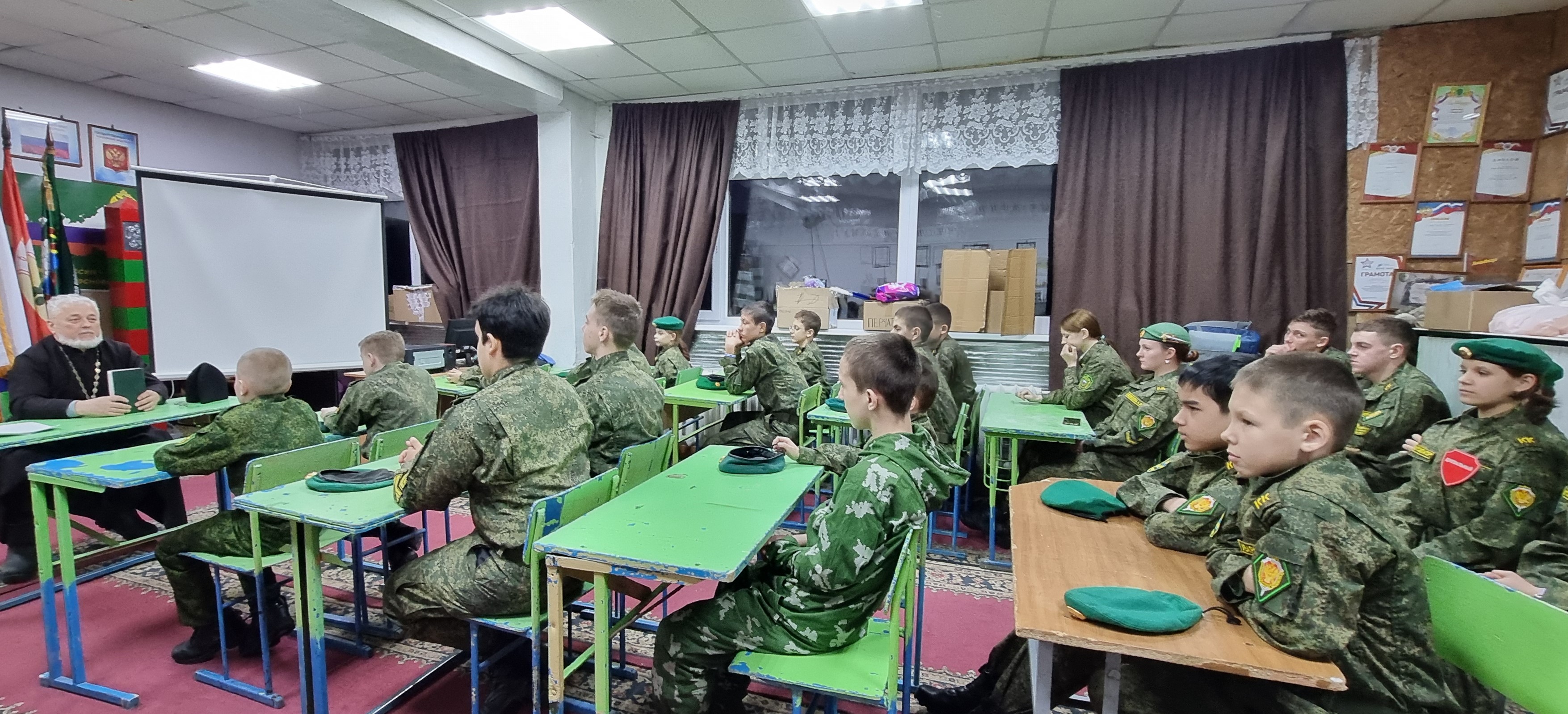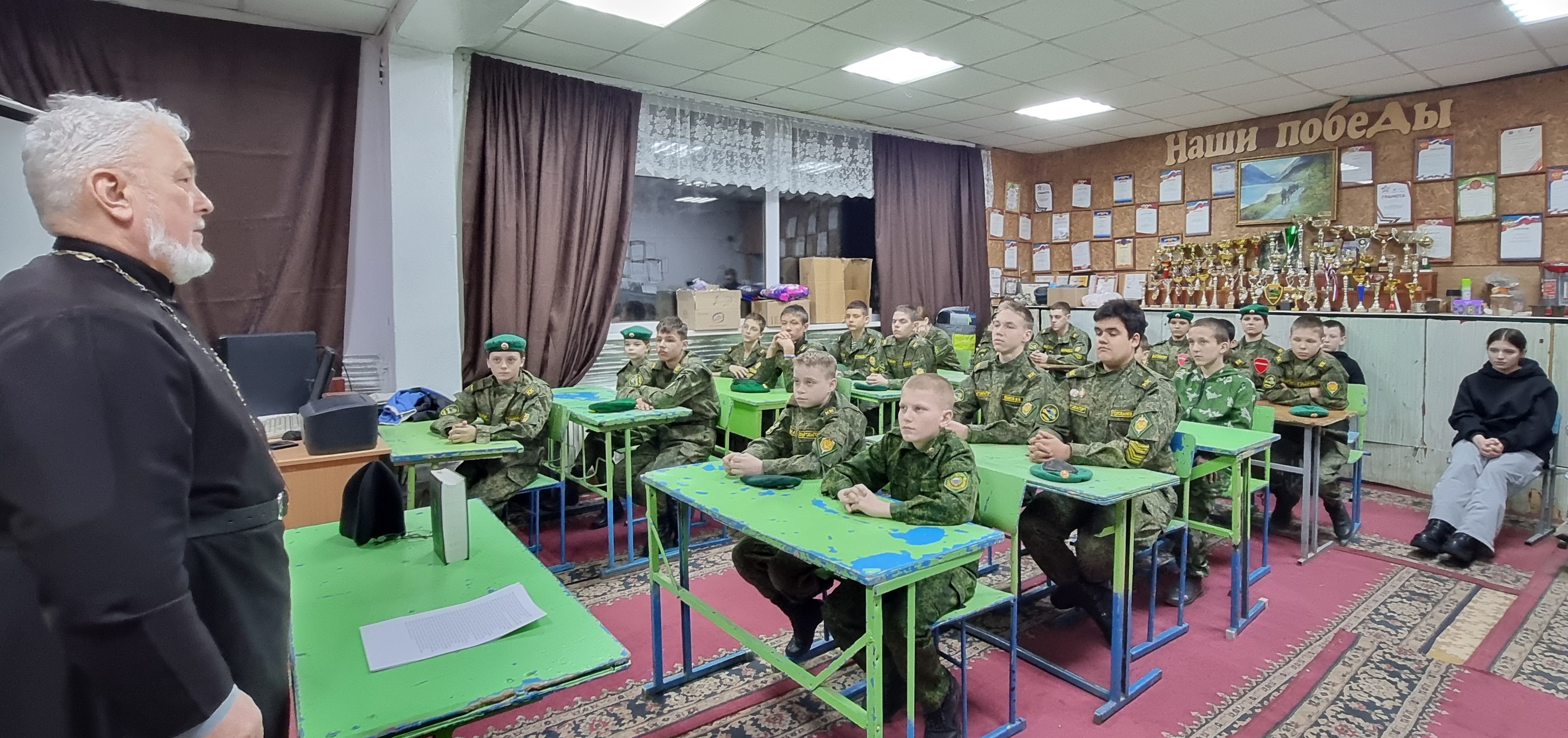 Настоятель храма Покрова Пресвятой Богородицы села Алтайское провел урок-беседу в клубе Юных друзей пограничников «Силагор»