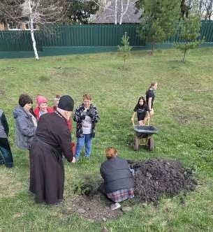 В посадке саженцев голубой ели (30 штук) приняли участие: ребята и сотрудники центра, ветераны ОВД, родители погибших солдат. В мероприятии принял участие настоятель храма Покрова Пресвятой Богородицы иерей Леонид Клепиков. Батюшка благословил всех на доброе дело. Надеемся, что аллея памяти будет радовать не только живущих в центре им. В.С. Ершова, но и жителей села.