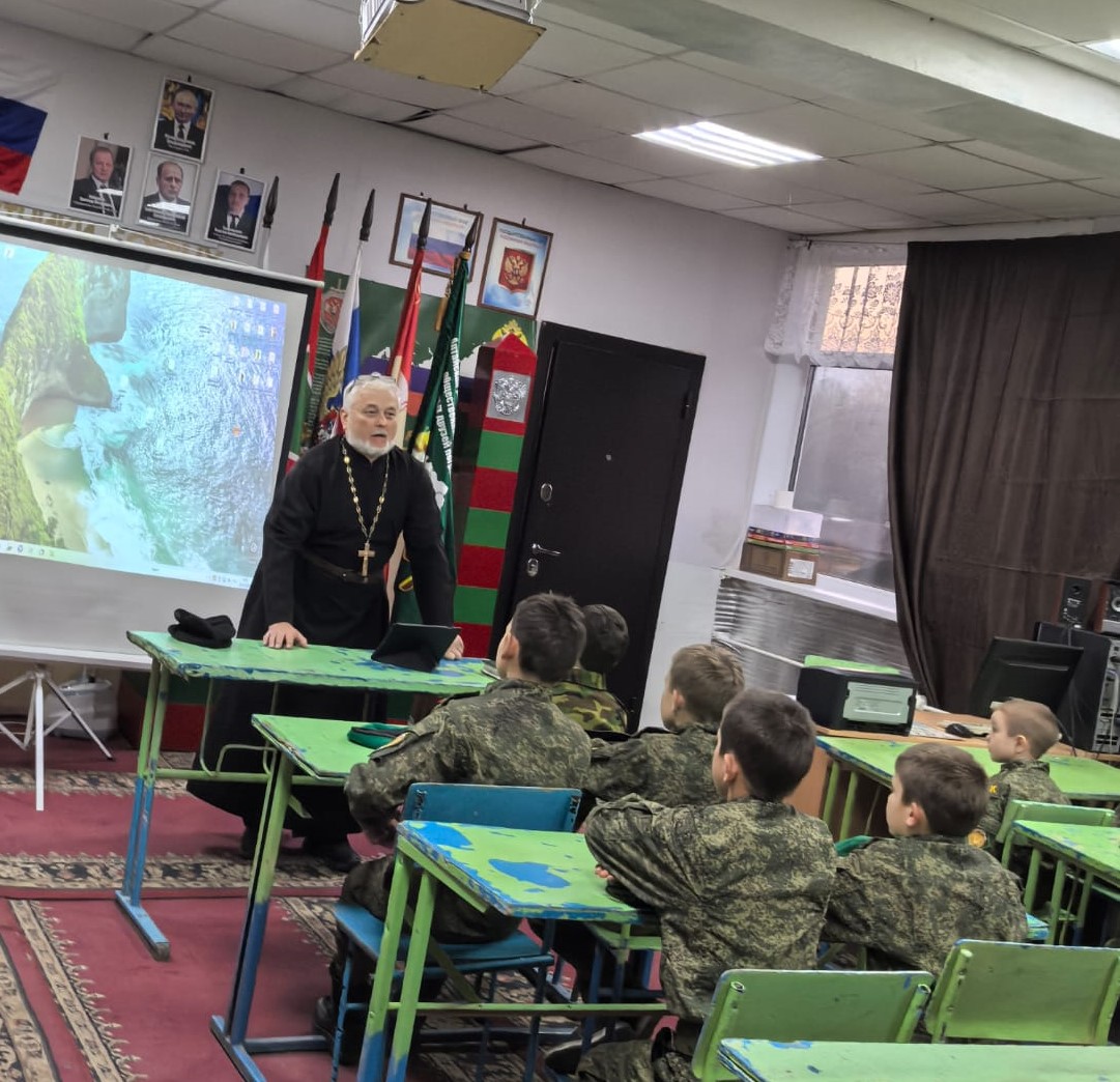 Настоятель храма Покрова Пресвятой Богородицы села Алтайское провел беседу в клубе Юных друзей пограничников "Силагор"