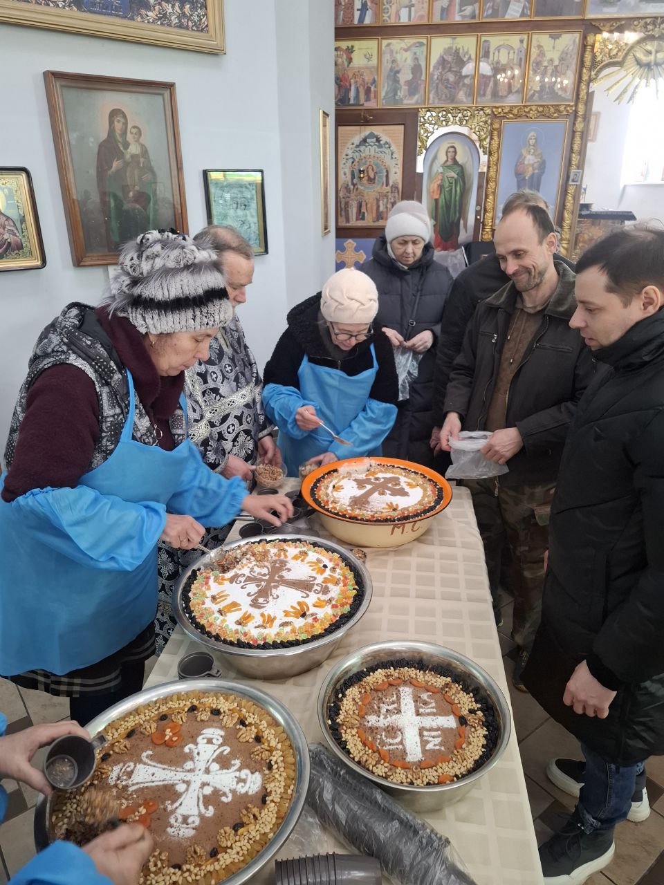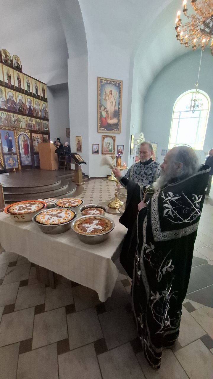 Коливо – отваренная в трапезной храма пшеница с медом, сухофруктами и орехами, которое прихожанки – сестры во Христе Покровского храма, дружно украшали также сухофруктами, орехами и цукатами. После освящения коливо раздали всем верующим для подкрепления сил во время Великого поста.