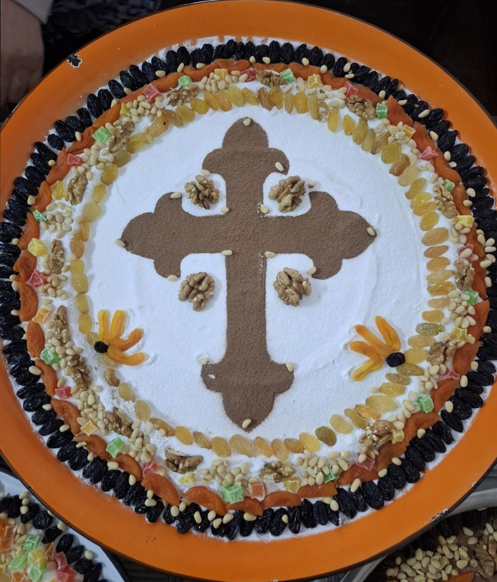Приготовленное из зерен пшеницы блюдо выражает веру живых в воскресение умерших для лучшей жизни. Зерна символизируют возрождение, обновление, смерть ради воскресения. «Истинно, истинно говорю вам: если пшеничное зерно, пав в землю, не умрет, то останется одно; а если умрет, то принесет много плода (Ин.12:24)», – говорит Господь Своим ученикам. Пшеничное зерно – один из распространенных символов в проповедях и притчах Спасителя. Мед, сладкие фрукты означают, что после воскресения праведных ожидает блаженство будущей вечной жизни в Царствии Небесном.