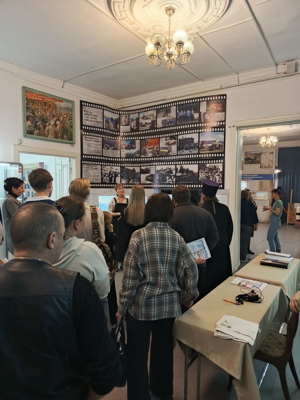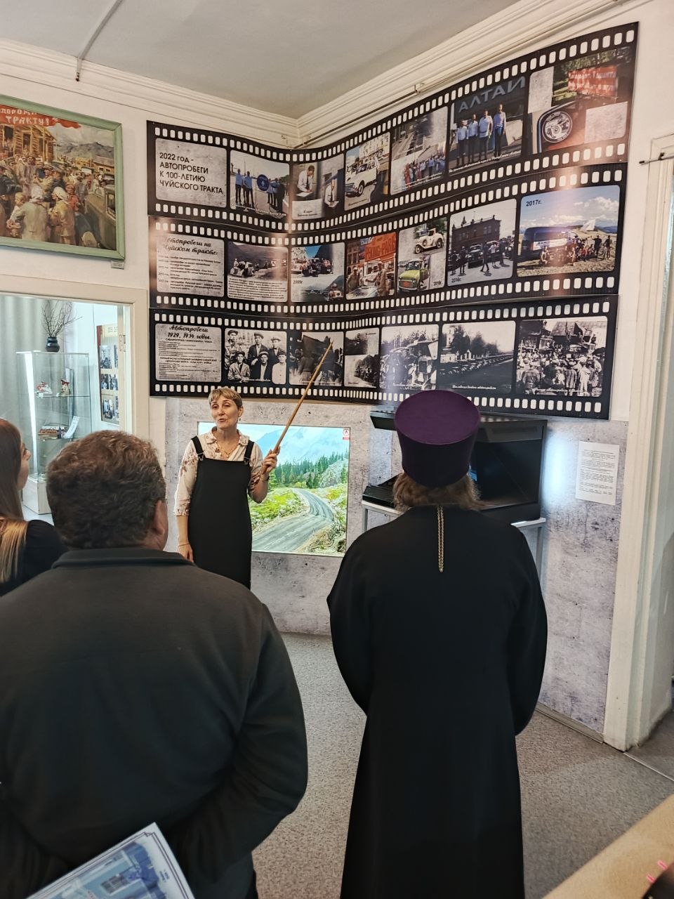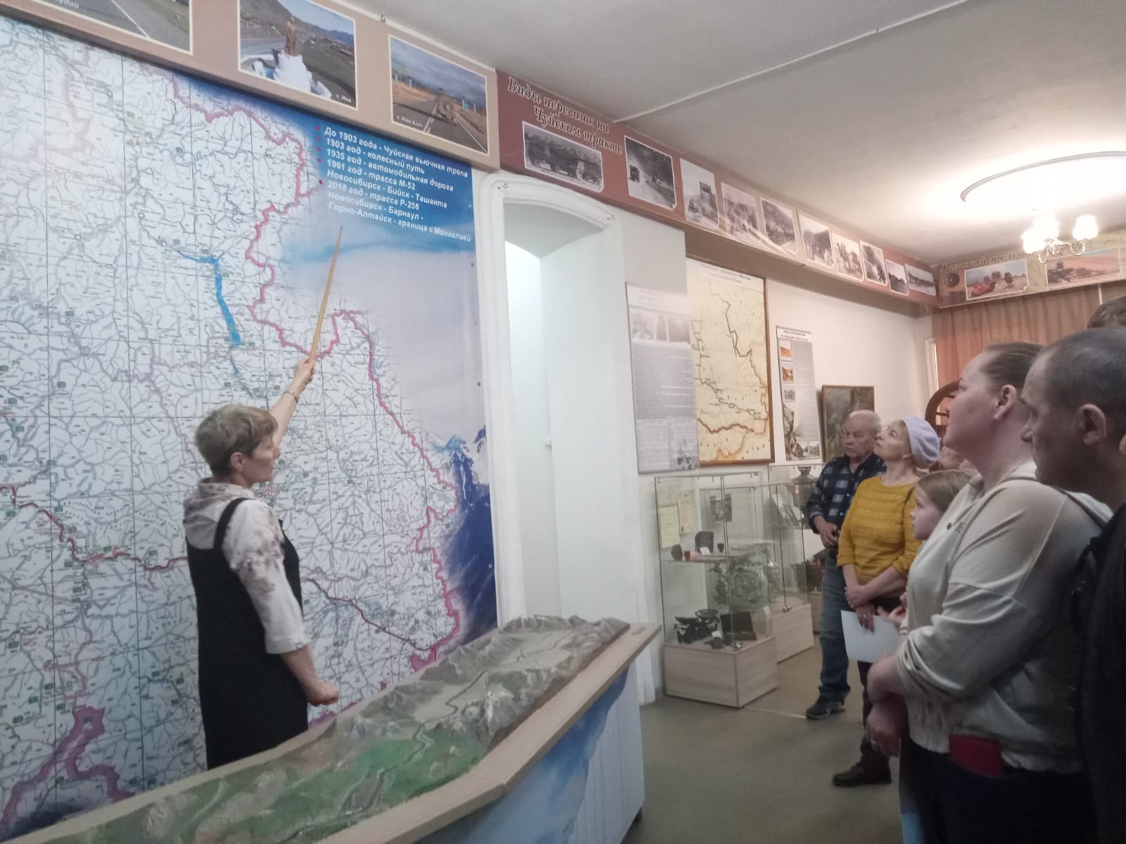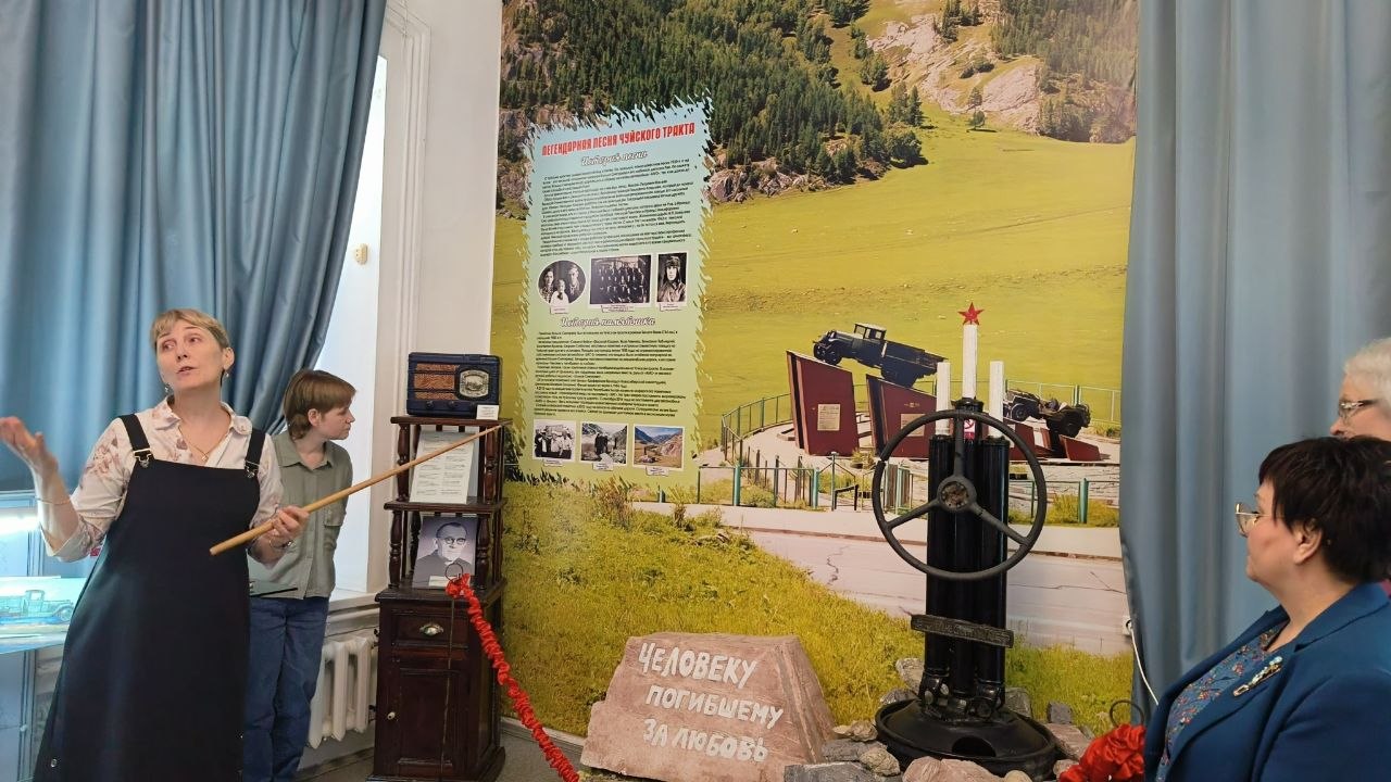Сотрудники музея Чуйского тракта провели для гостей обзорную экскурсию по залам музея, присутствующим были вручены благодарственные письма и билеты дарителя.