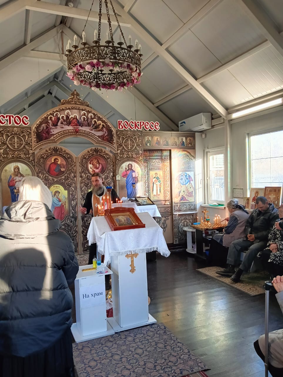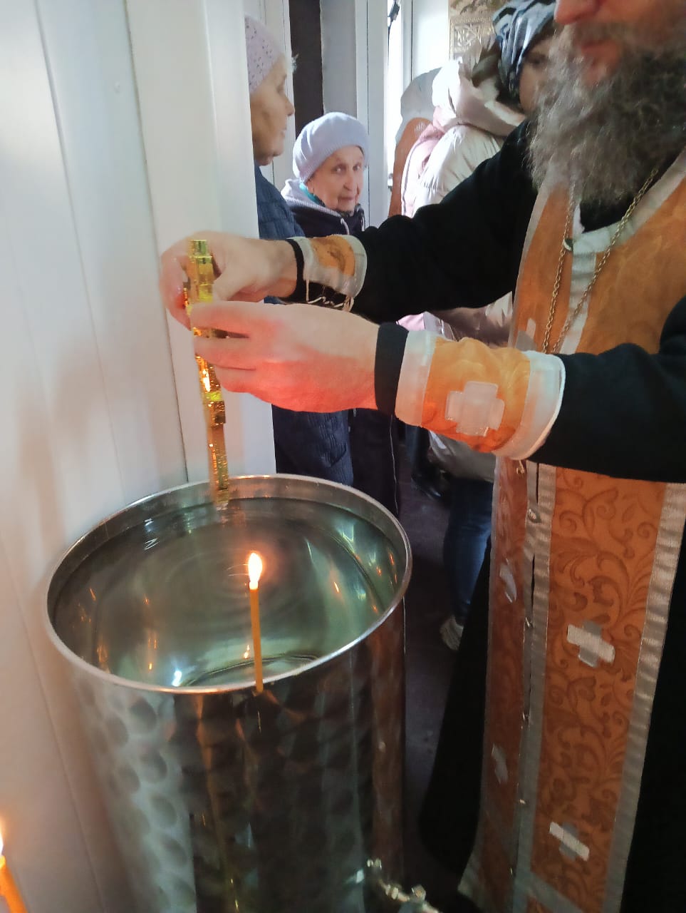 В канун праздника Божией Матери настоятель храма иерей Димитрий Камбалин совершил молебен малого освящения воды и окропил присутствующих.