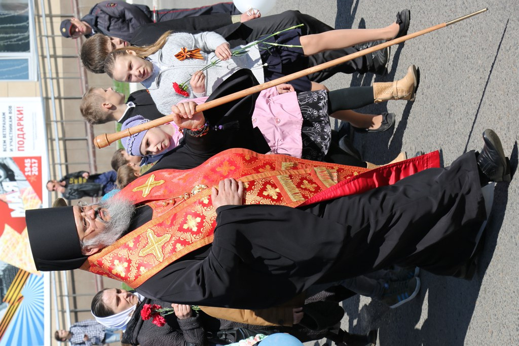 В мероприятиях, посвященных празднику, принимала участие и колонна Бийской епархии, которую возглавил епископ Бийский и Белокурихинский Серапион.