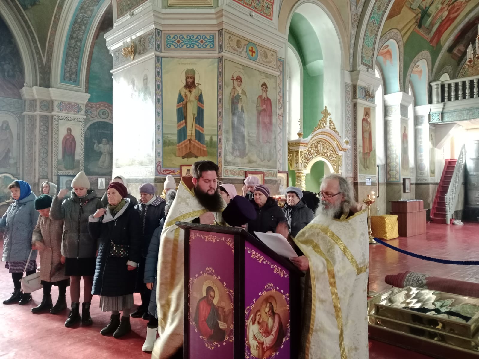 Благочинный Зонального округа иерей Александр Лобанов и настоятель храма Покрова Божией Матери села Шубенка Зонального района иеромонах Макарий (Михалев) совершили молебен с чтением акафиста святому.