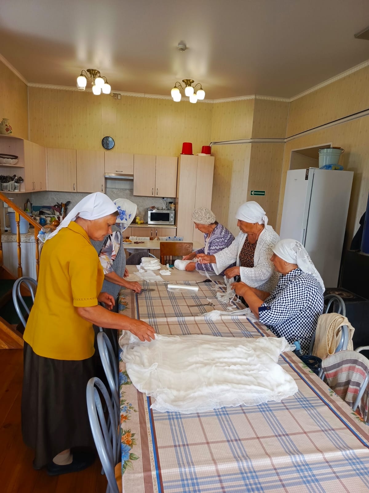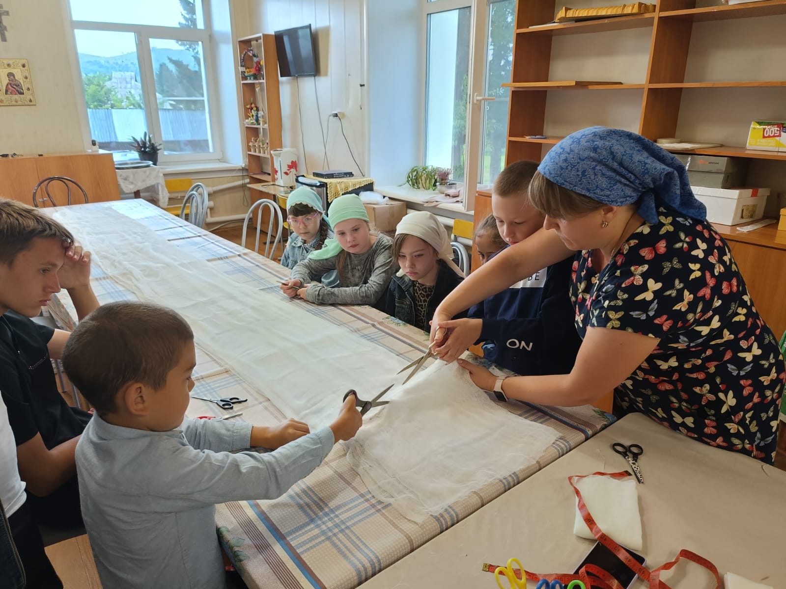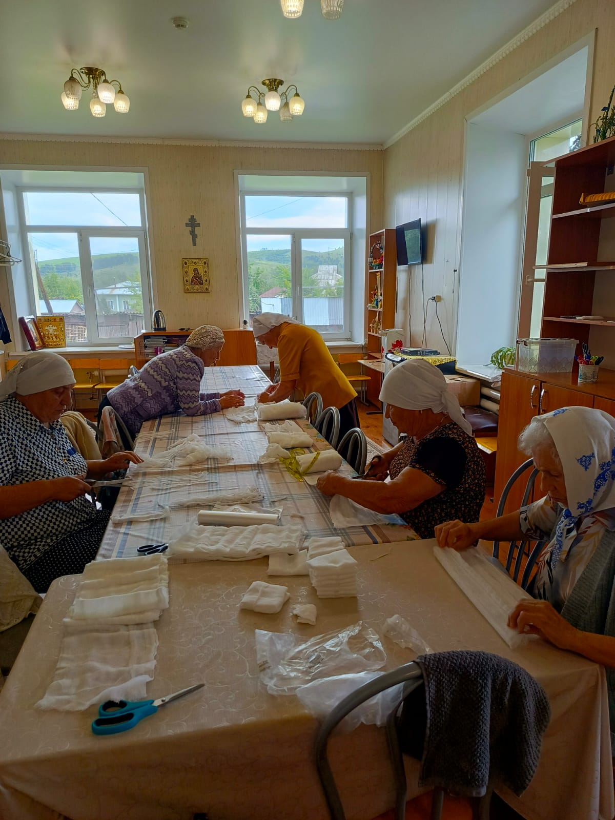 Прихожане и воспитанники воскресной школы храма Покрова Пресвятой Богородицы села Алтайское изготавливали из марлевой ткани салфетки для нужд госпиталей СВО.