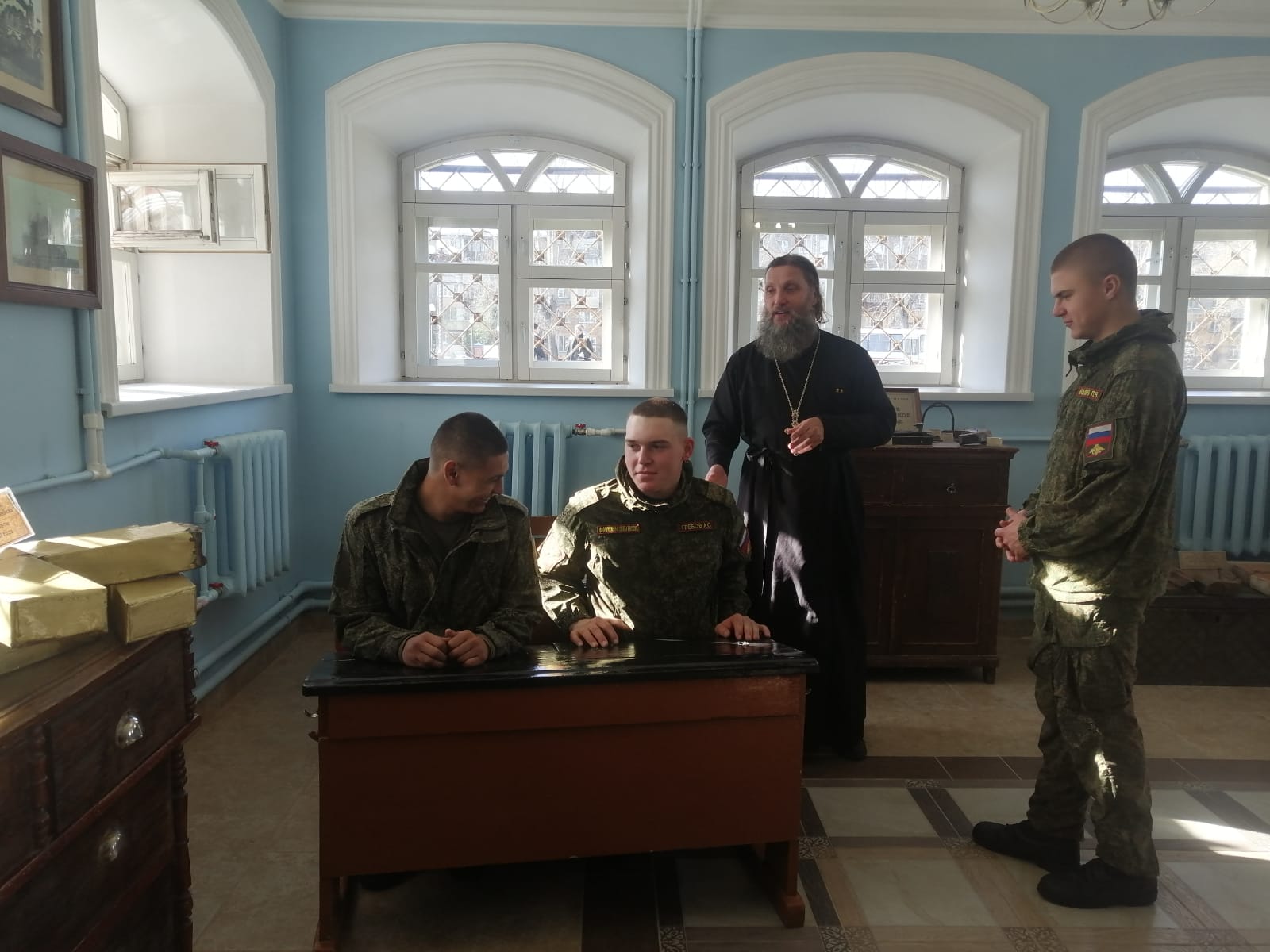 Солдаты срочной службы одной из воинских частей Бийского гарнизона посетили Бийское архиерейское подворье. Для ребят была проведена обзорная экскурсия по подворью. С большим интересом присутствующие ознакомились с экспозиционными залами Музея истории Алтайской духовной миссии.