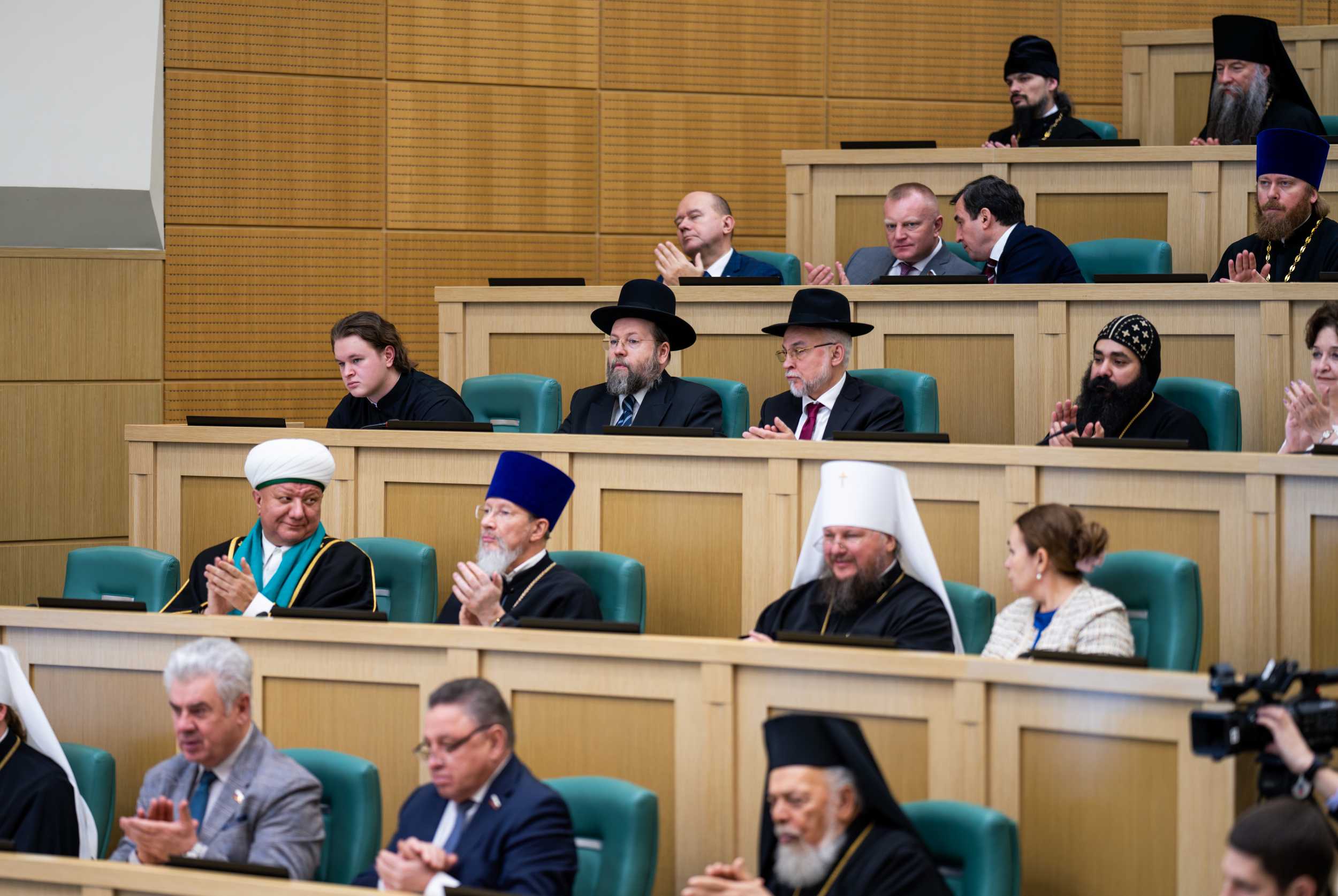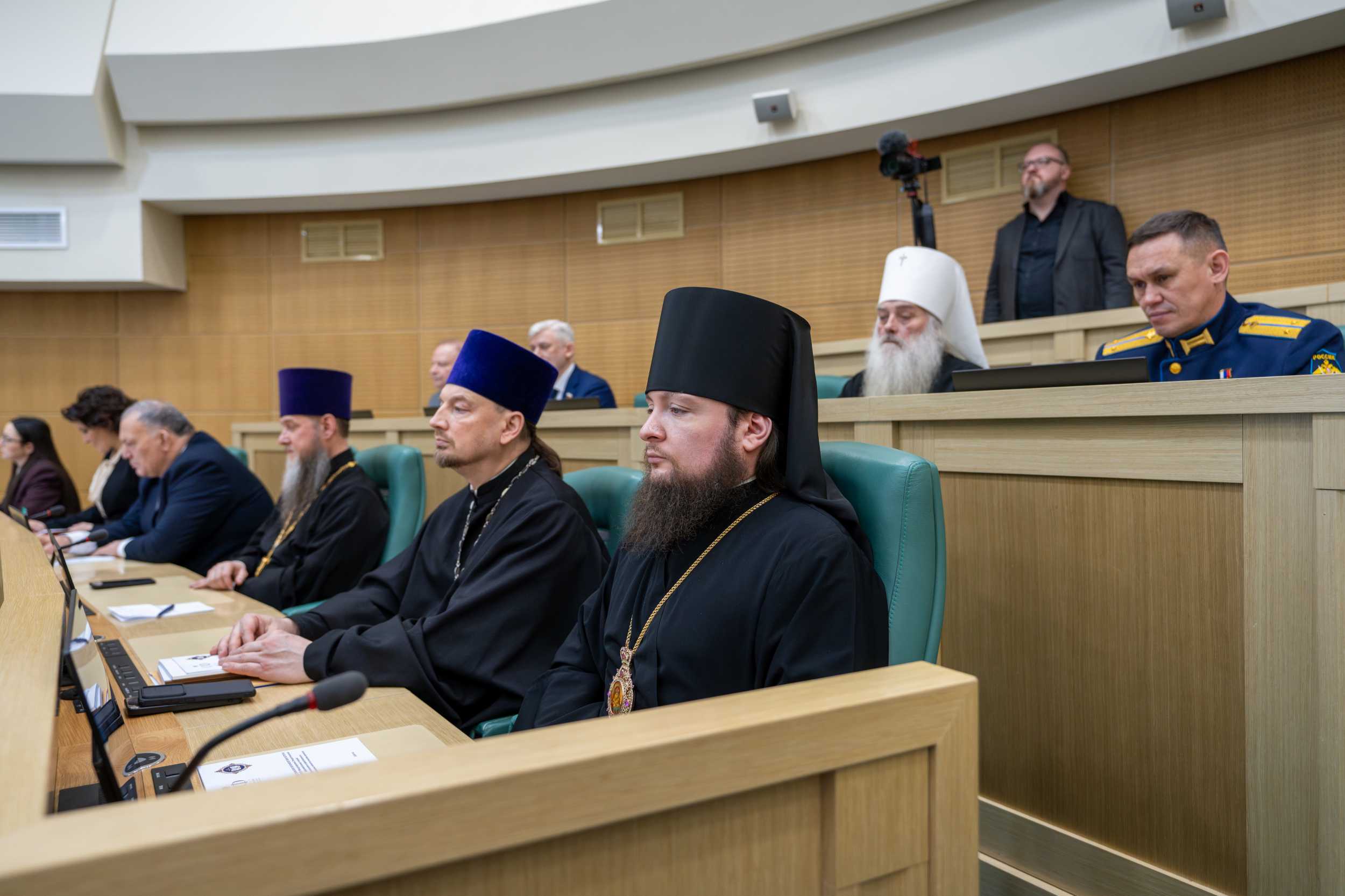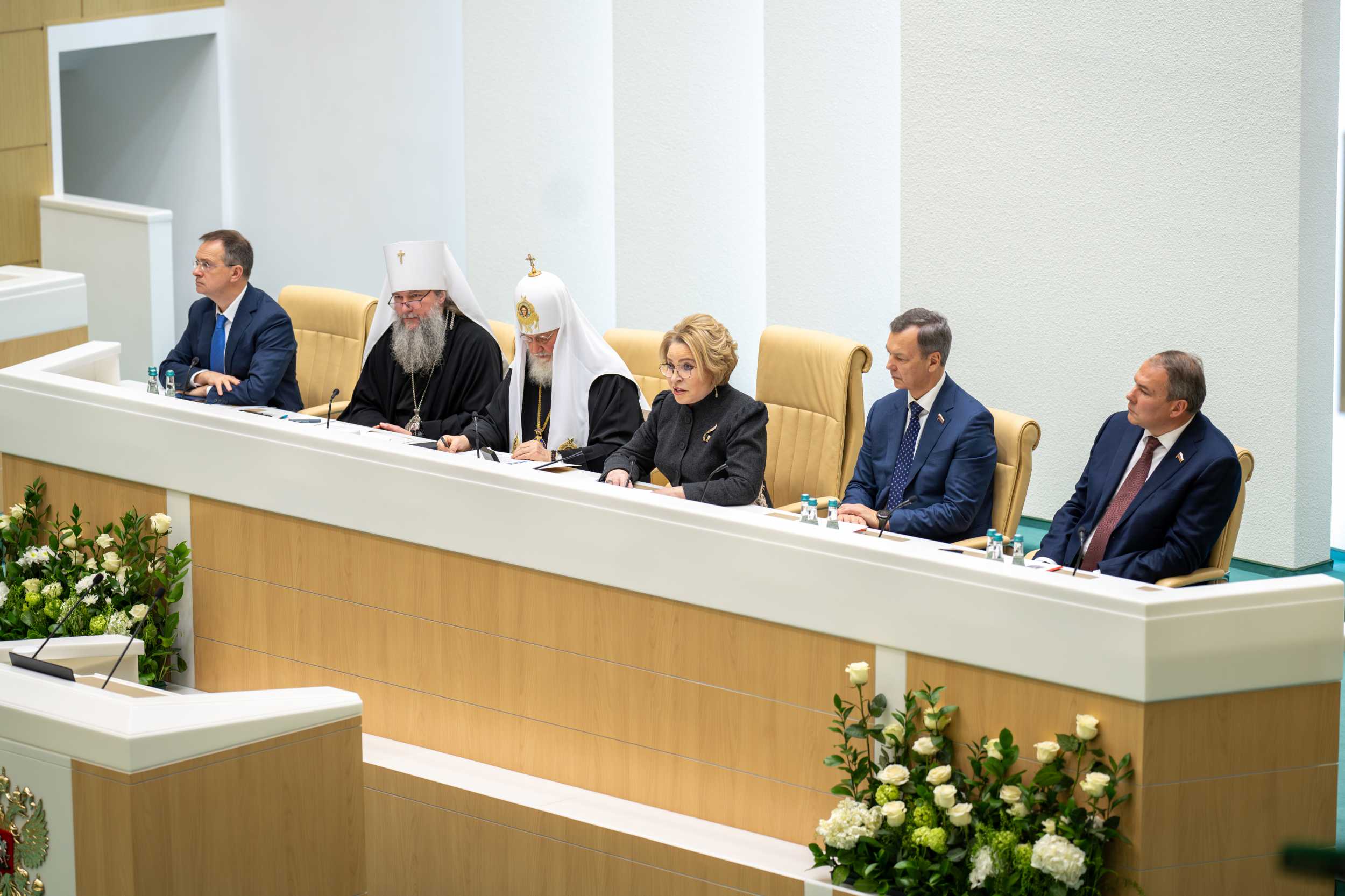 До начала пленарного заседания в Совете Федерации были проведены тематические круглые столы: «Воспитание и просвещение как инструменты формирования личности в современном обществе» (сопредседатели — председатель Комитета Совета Федерации по науке, образованию и культуре Л.С. Гумерова, председатель Синодального отдела религиозного образования и катехизации митрополит Екатеринбургский и Верхотурский Евгений); «Становление современной общественно-государственной модели воспитания гражданина и патриота (анализ опыта взаимодействия государственных и религиозных институтов)» (сопредседатели — первый заместитель председателя Комитета Совета Федерации по конституционному законодательству и государственному строительству Л.Н. Глебова и председатель Синодального миссионерского отдела архиепископ Зеленоградский Савва); «Церковь, власть и общество: поддержка участников специальной военной операции и их семей» (сопредседатели — первый заместитель председателя Комитета Совета Федерации по социальной политике Ж.Ю. Чефранова, член Комитета Совета Федерации по обороне и безопасности А.Л. Деркач, председатель Синодального отдела по взаимодействию с Вооруженными силами и правоохранительными органами, председатель Синодального комитета по взаимодействию с казачеством митрополит Ставропольский и Невинномысский Кирилл, председатель Синодального отдела по церковной благотворительности и социальному служению протоиерей Михаил Потокин).