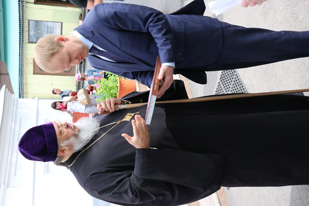 Дорогих гостей встречал епископ Бийский и Белокурихинский Серапион, прихожане Успенского собора, учащиеся воскресной школы, которые исполнили для всех праздничные песнопения.