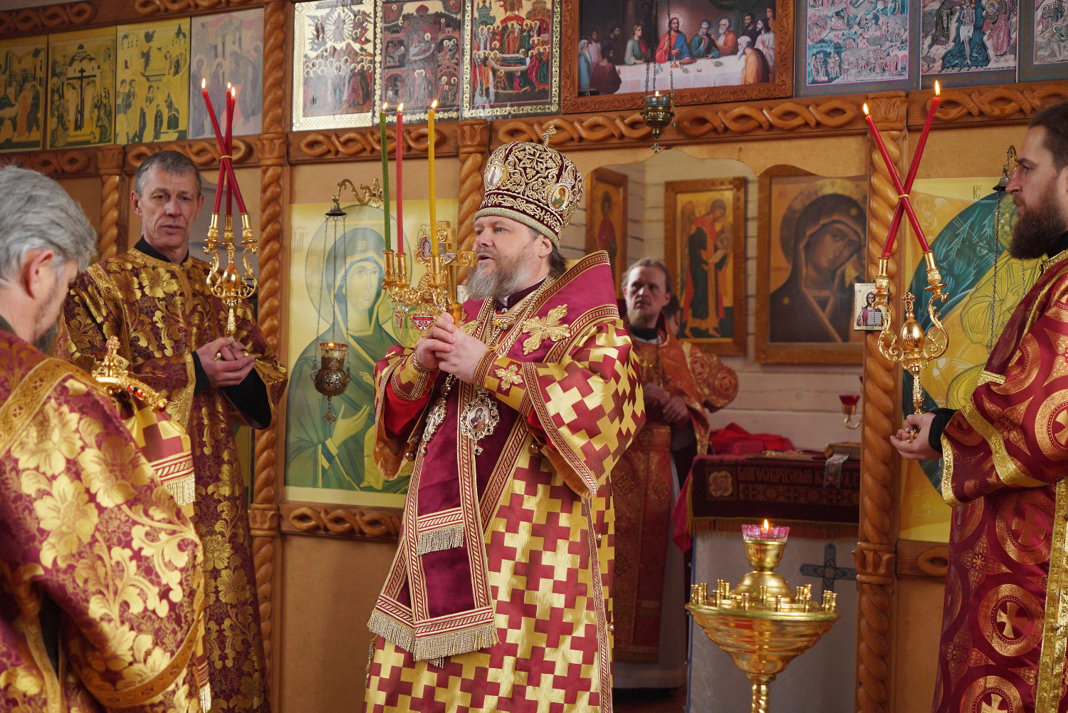 В четверг Светлой седмицы епископ Серафим совершил Божественную литургию в храме икон Божией Матери «Умягчение злых сердец» и «Неупиваемая Чаша» села Ненинка