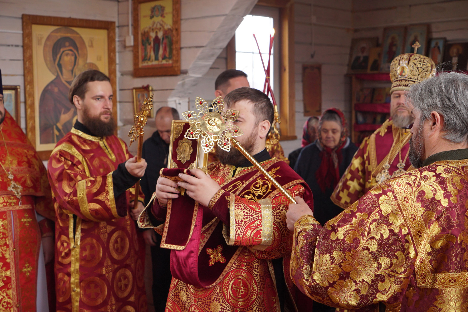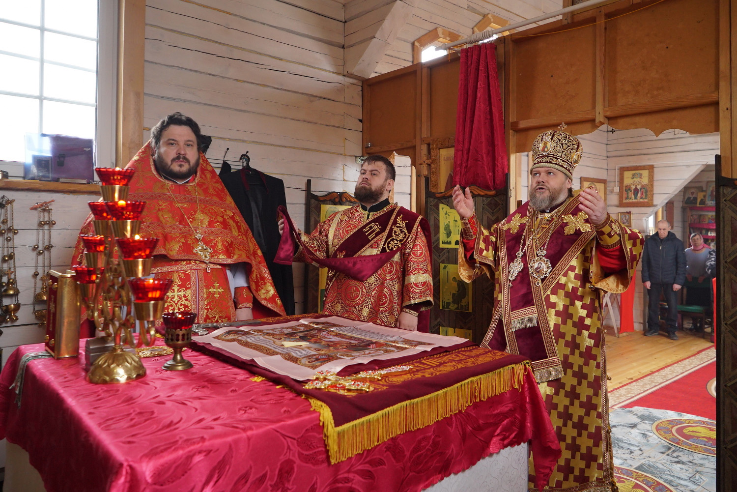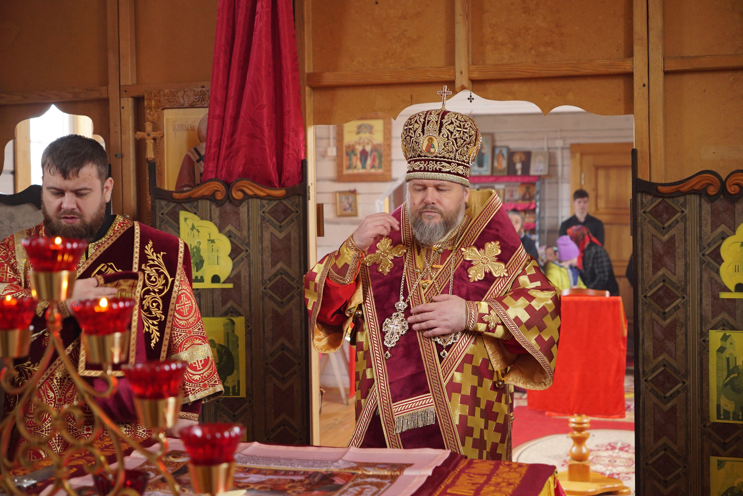 Его Преосвященству сослужили: настоятель храма иерей Алексий Жигалов, иерей Димитрий Щербаков, диакон Никита Гологузов.