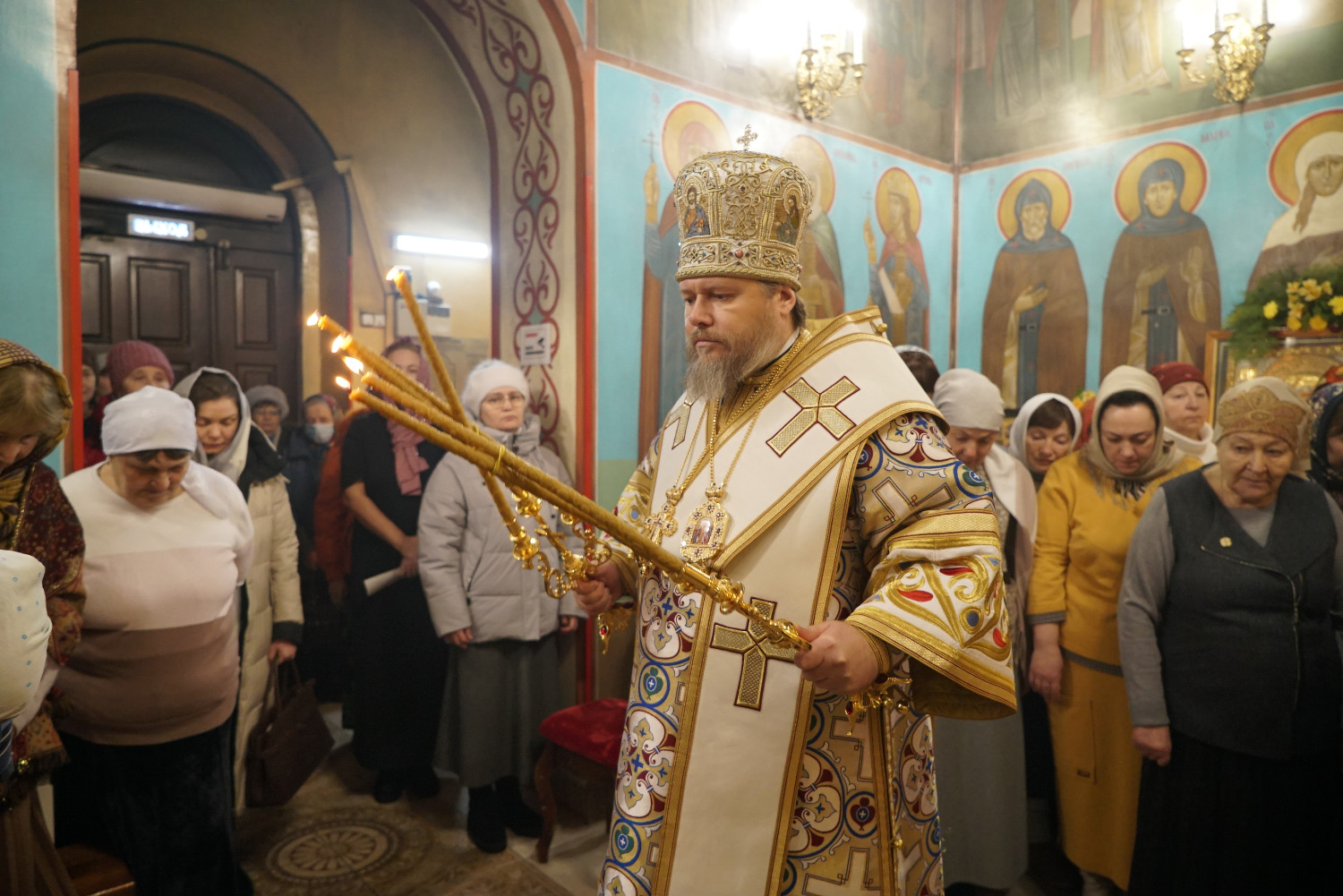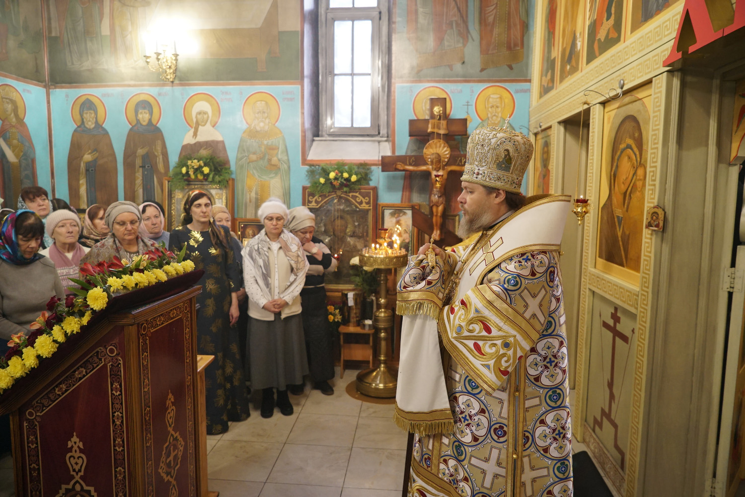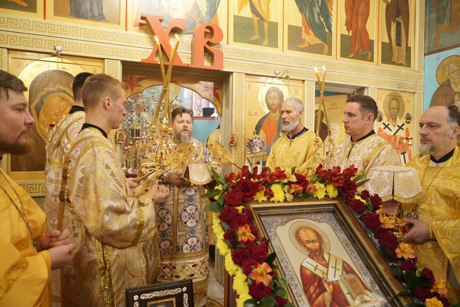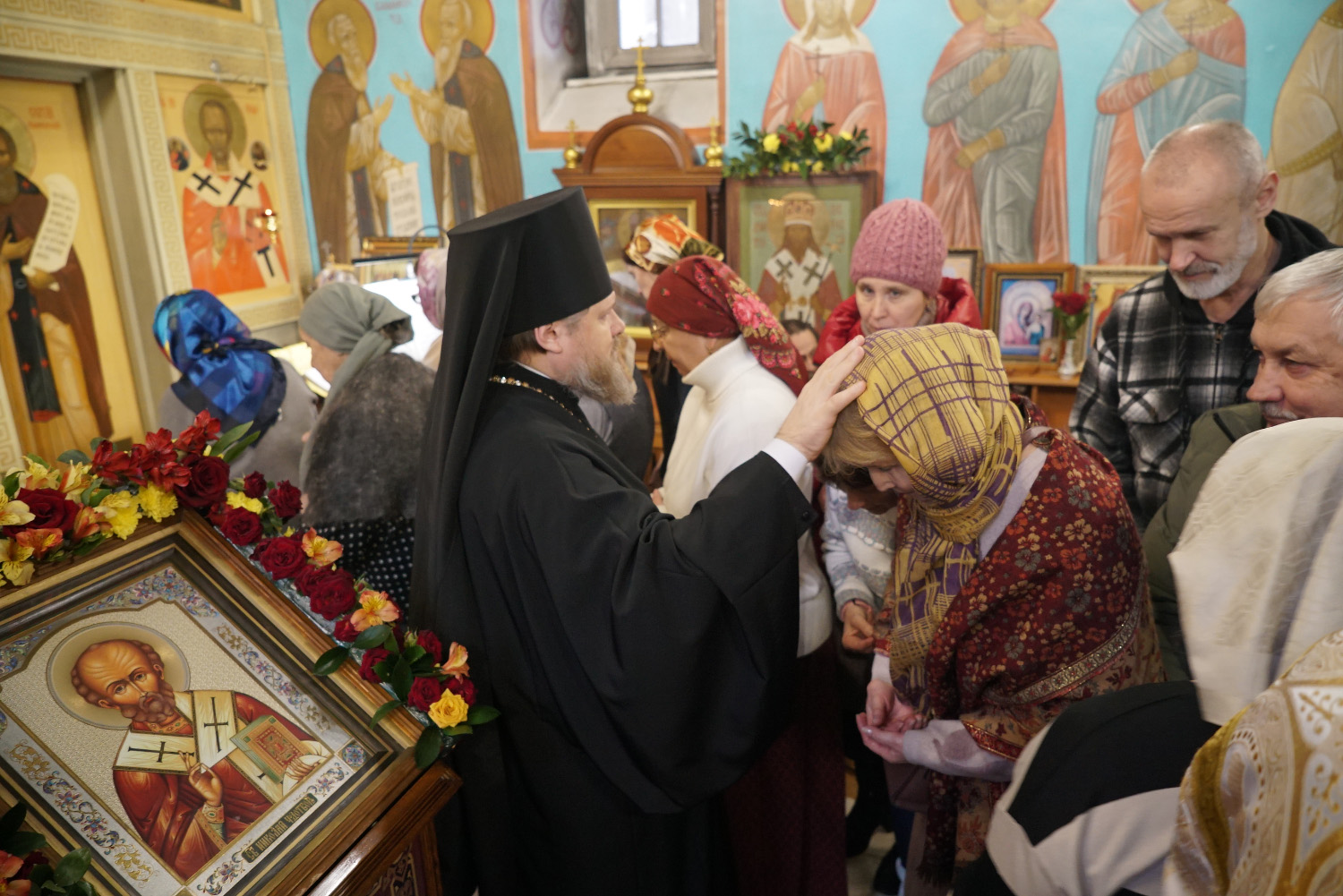 В завершение богослужения архипастырь поздравил его участников с престольным праздником и обратился к сослужащему духовенству и всем молящимся с проповедью, посвященной святителю Николаю Мирликийскому.