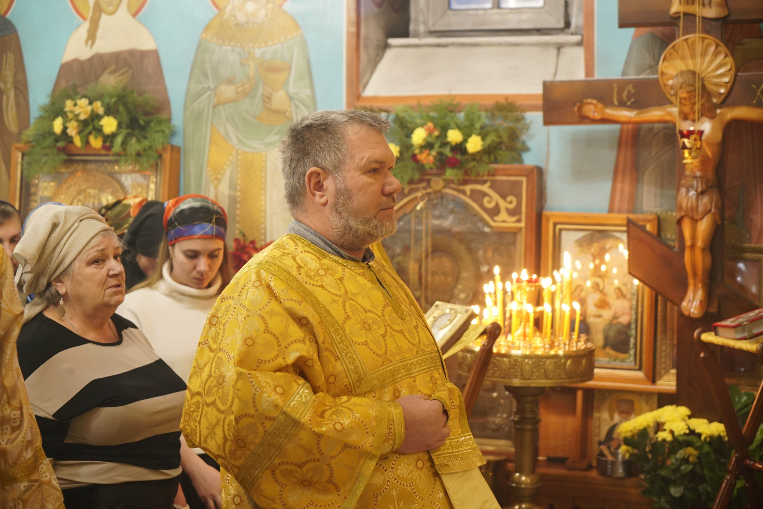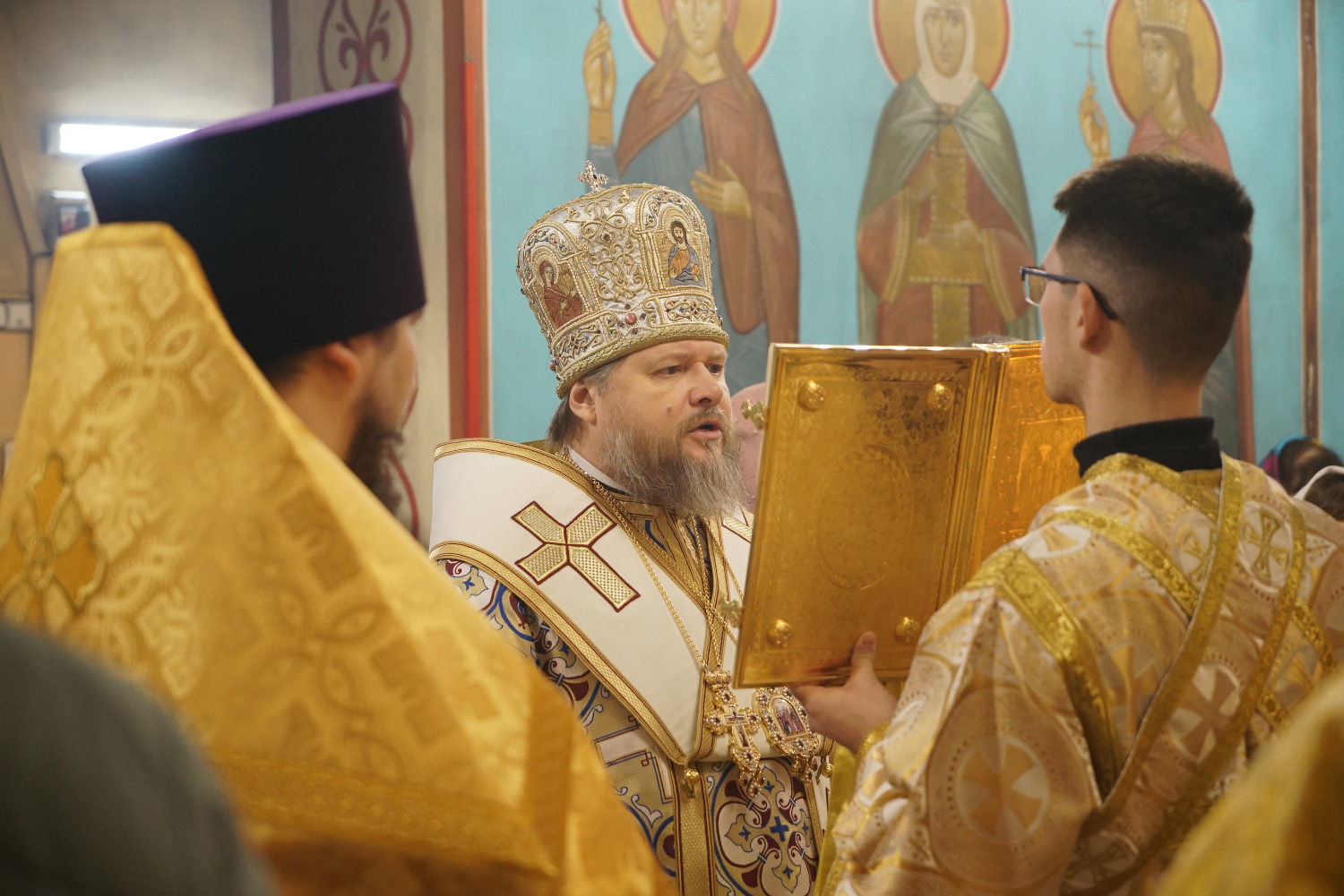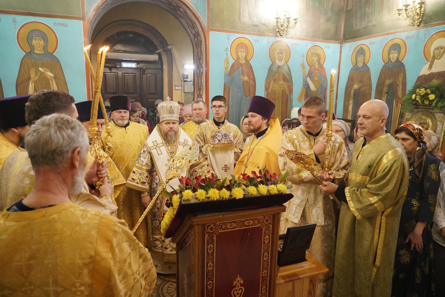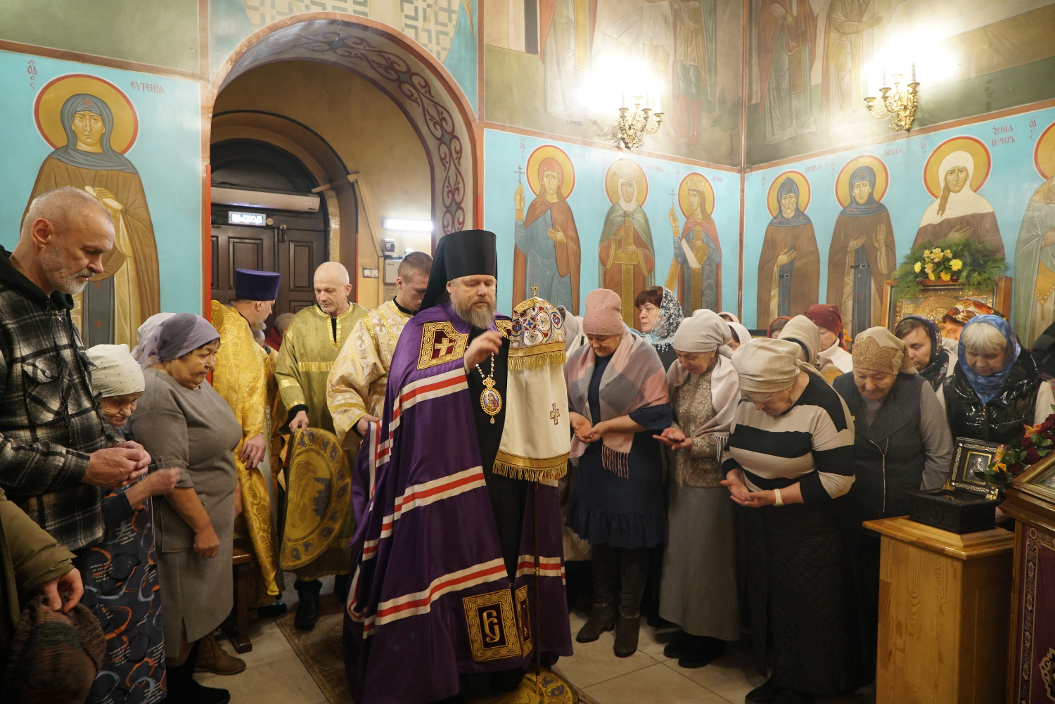 Преосвященному владыке сослужили: ключарь храма протоиерей Александр Петров, иерей Георгий Степанищев, иерей Дионисий Юдин, диакон Вадим Шпак, диакон Андрей Поповичев.