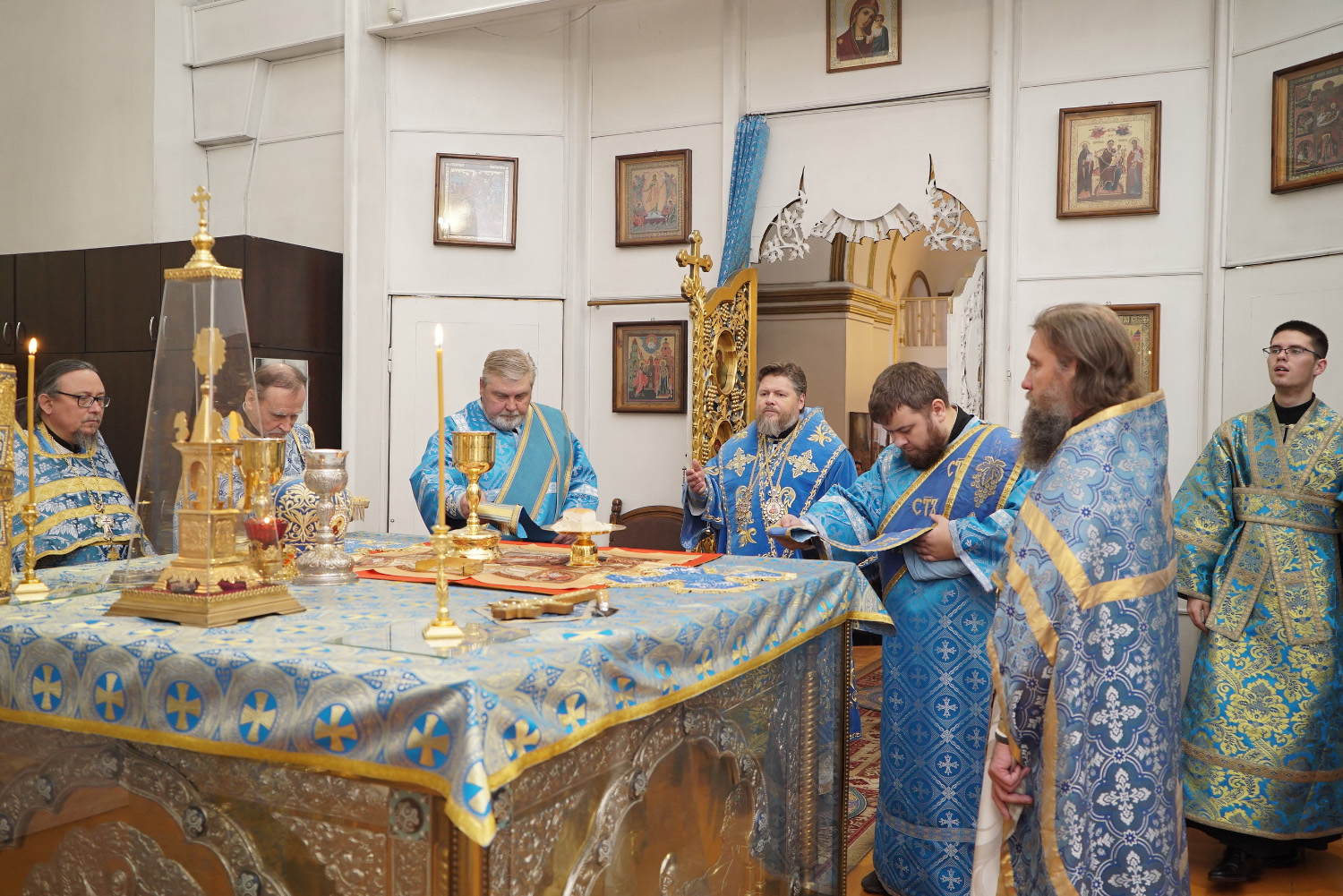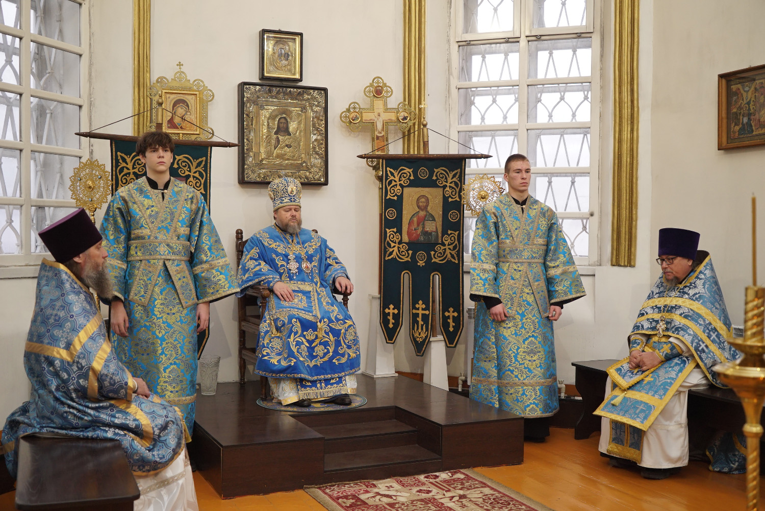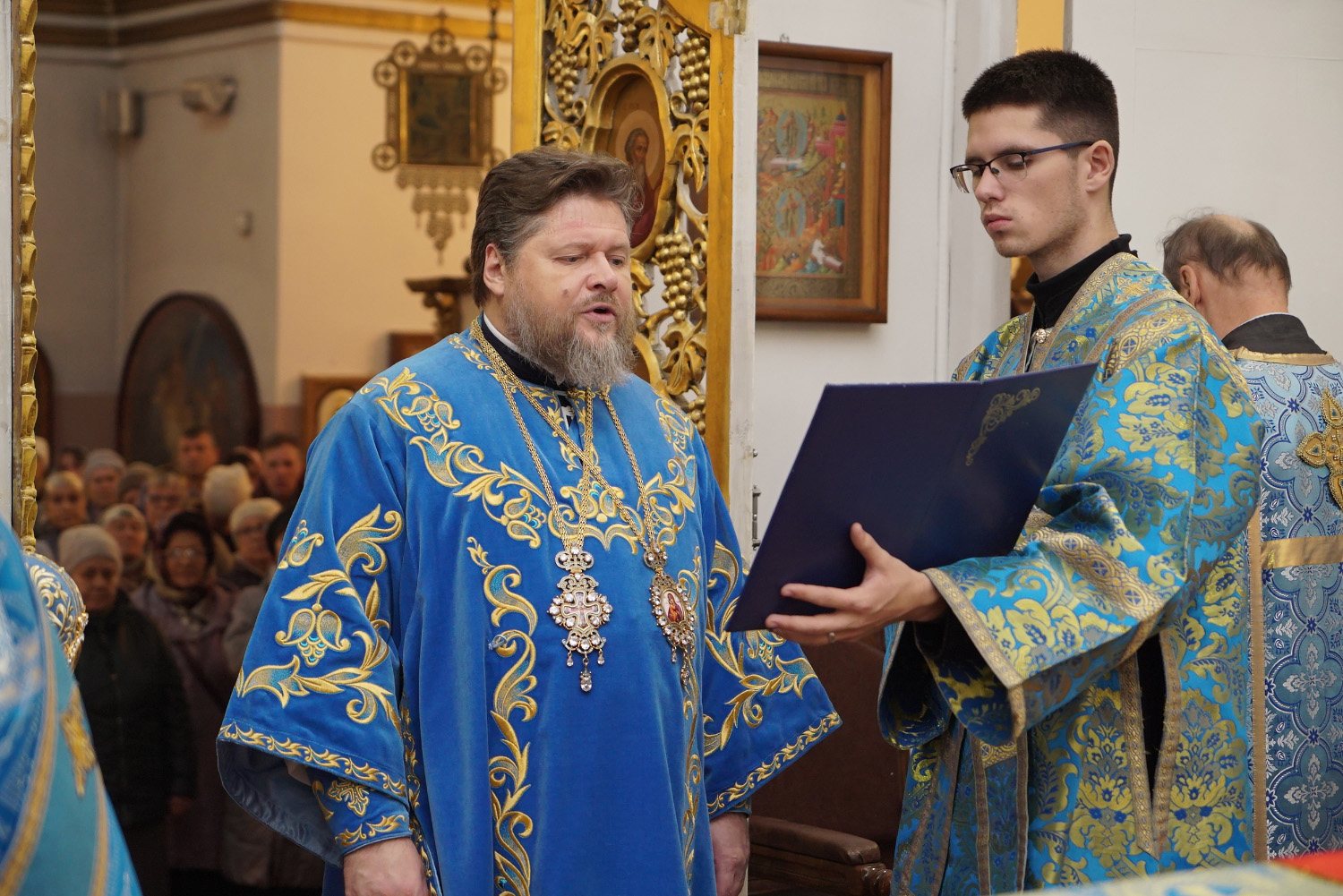 Преосвященному владыке сослужили: настоятель храма протоиерей Валерий Замятин, иерей Димитрий Камбалин, иерей Евгений Щигрев, иерей Вадим Четвергов, диакон Вадим Шпак, диакон Никита Гологузов, диакон Николай Геришенко.