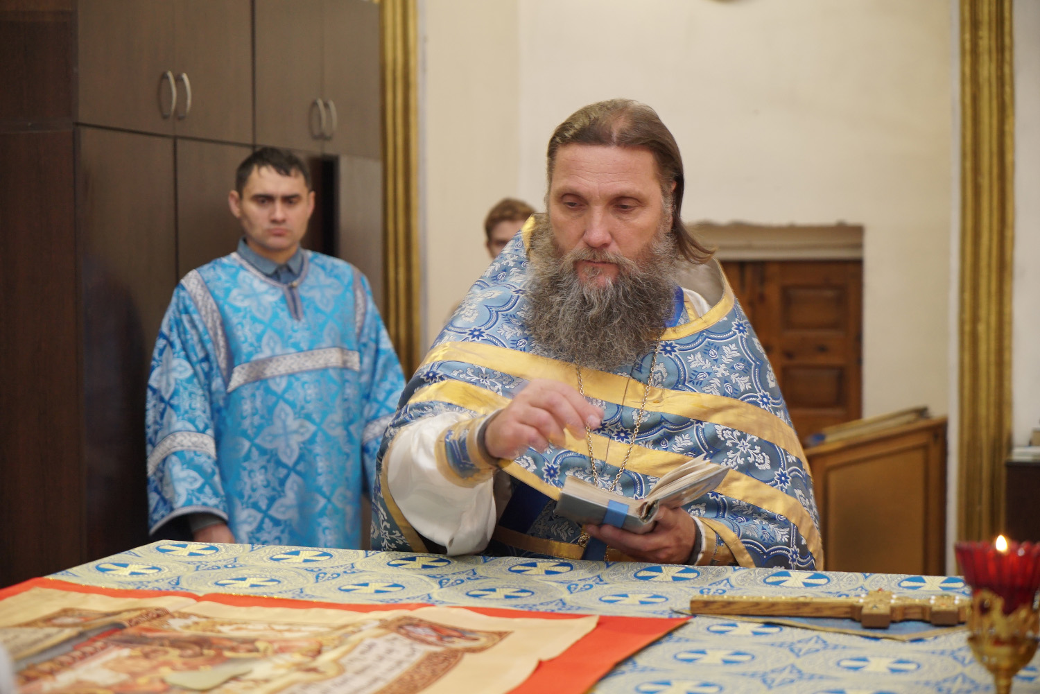 На сугубой ектении были произнесены особые прошения: «…о еже прияти молитвы нас недостойных рабов Твоих в сию годину испытания, пришедшую на Русь Святую…». Затем правящий архиерей вознес молитву о Святой Руси.