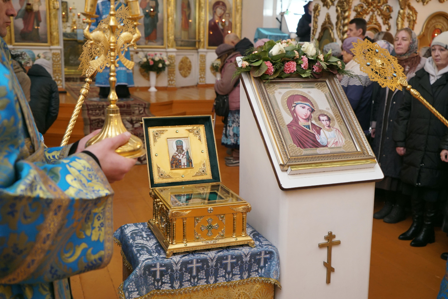 В завершение престольного праздника был совершен молебен с чтением акафиста святителю Иннокентию, митрополиту Московскому, честные мощи которого пребывали в храме Казанской иконы Божией Матери города Бийска с 3 по 4 ноября.