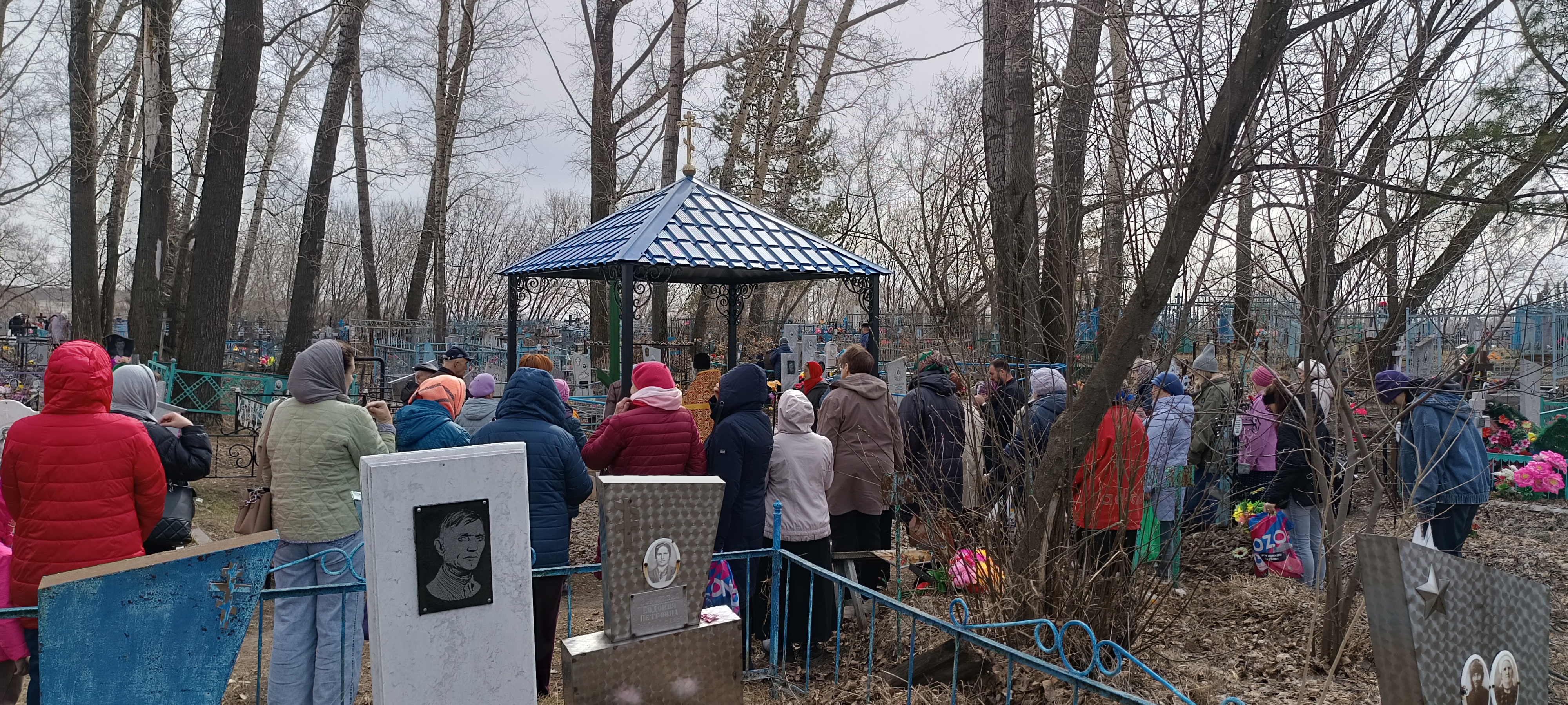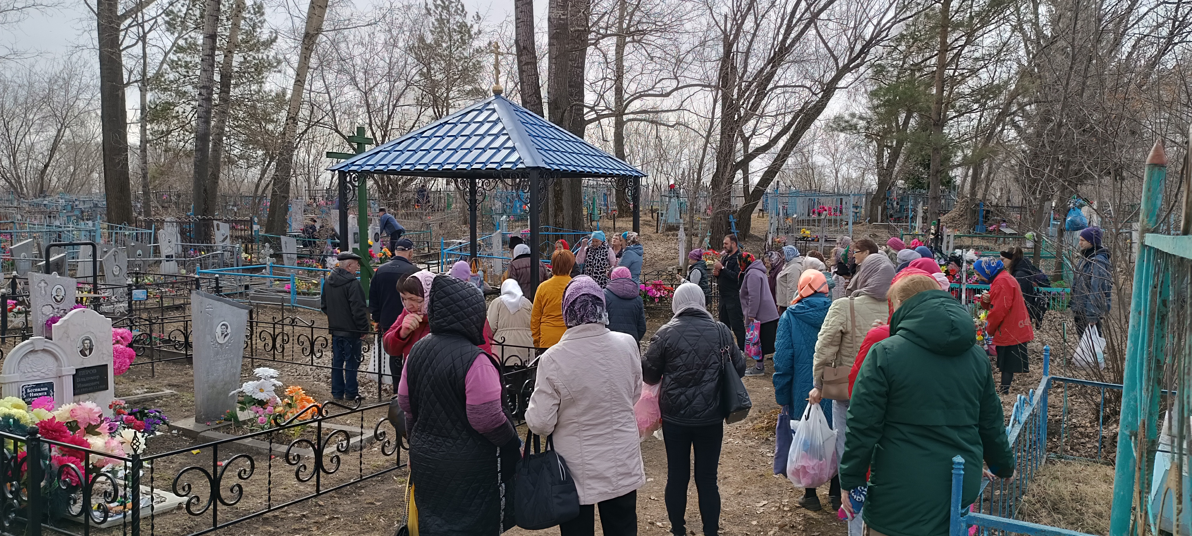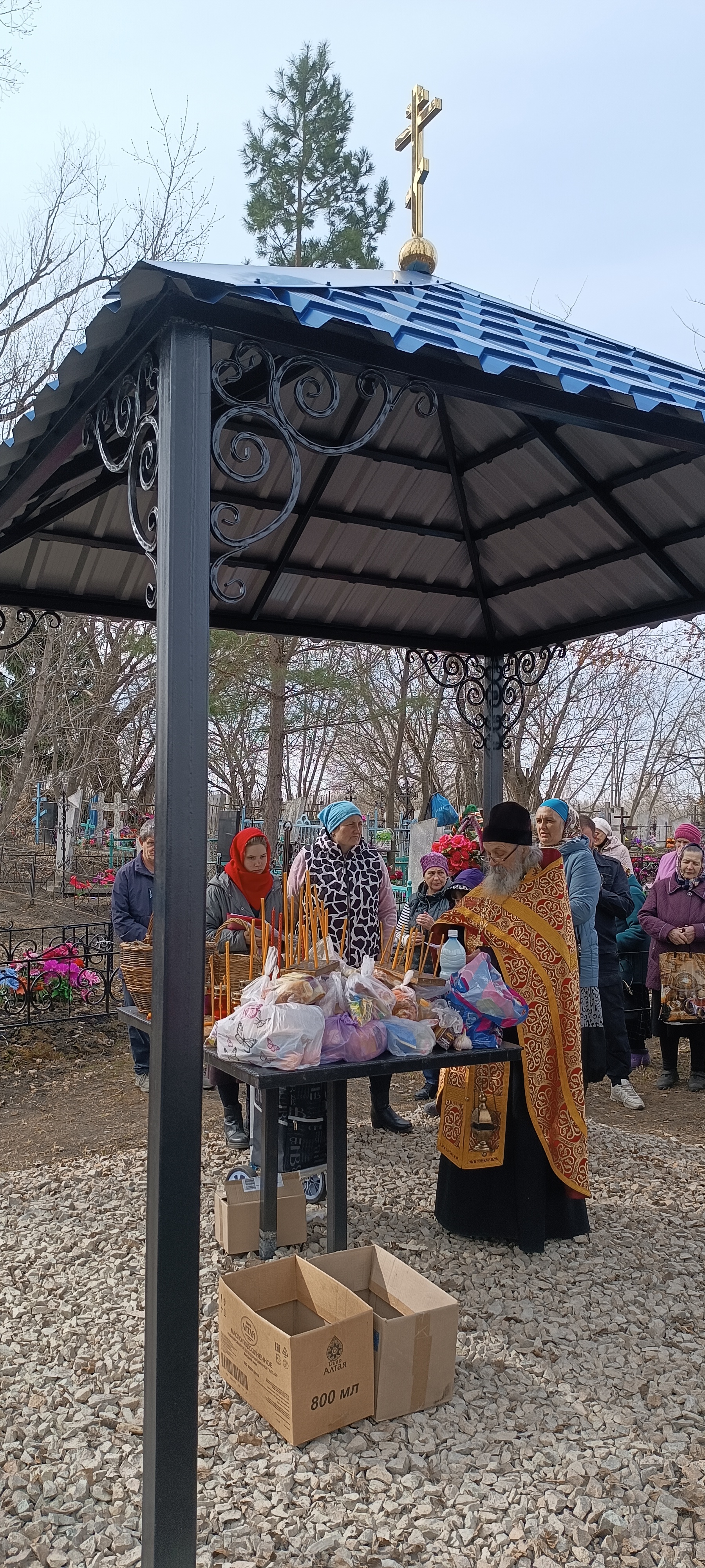 По сложившейся традиции, в этот день на кладбище собираются не только односельчане, но и многие городские жители, родственники которых похоронены на этом кладбище, спешат на совместную молитву – панихиду, которую много лет у кладбищенского поклонного креста служит отец Макарий.