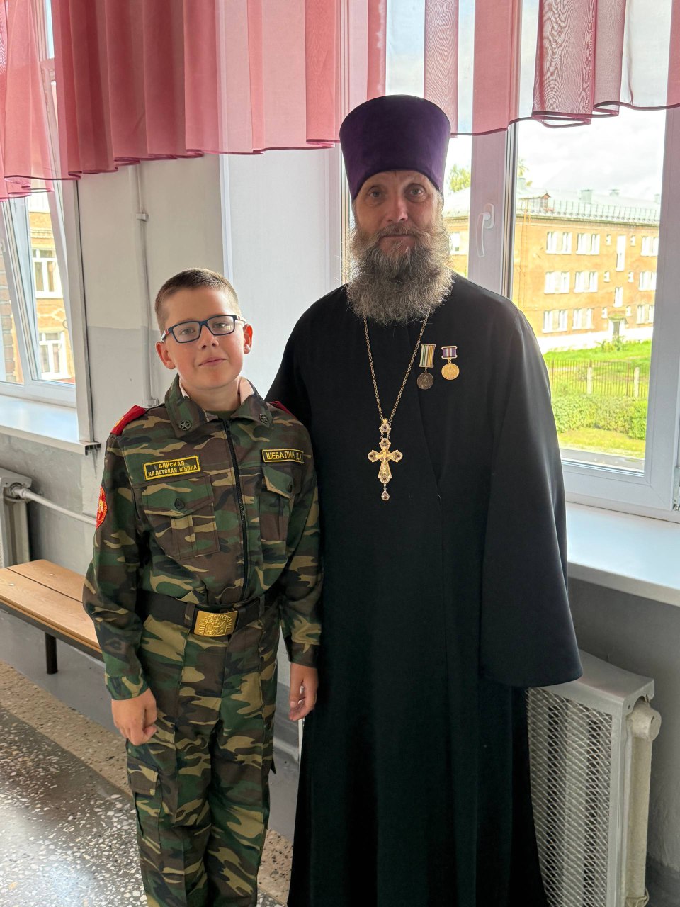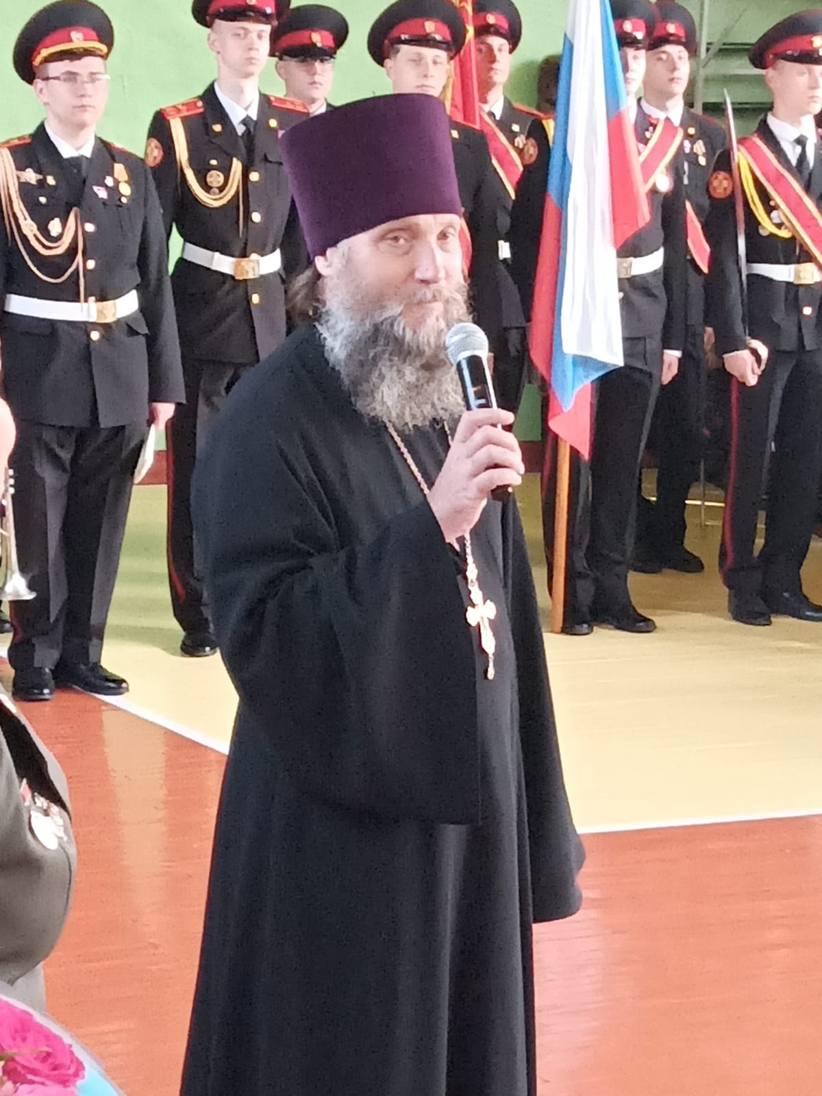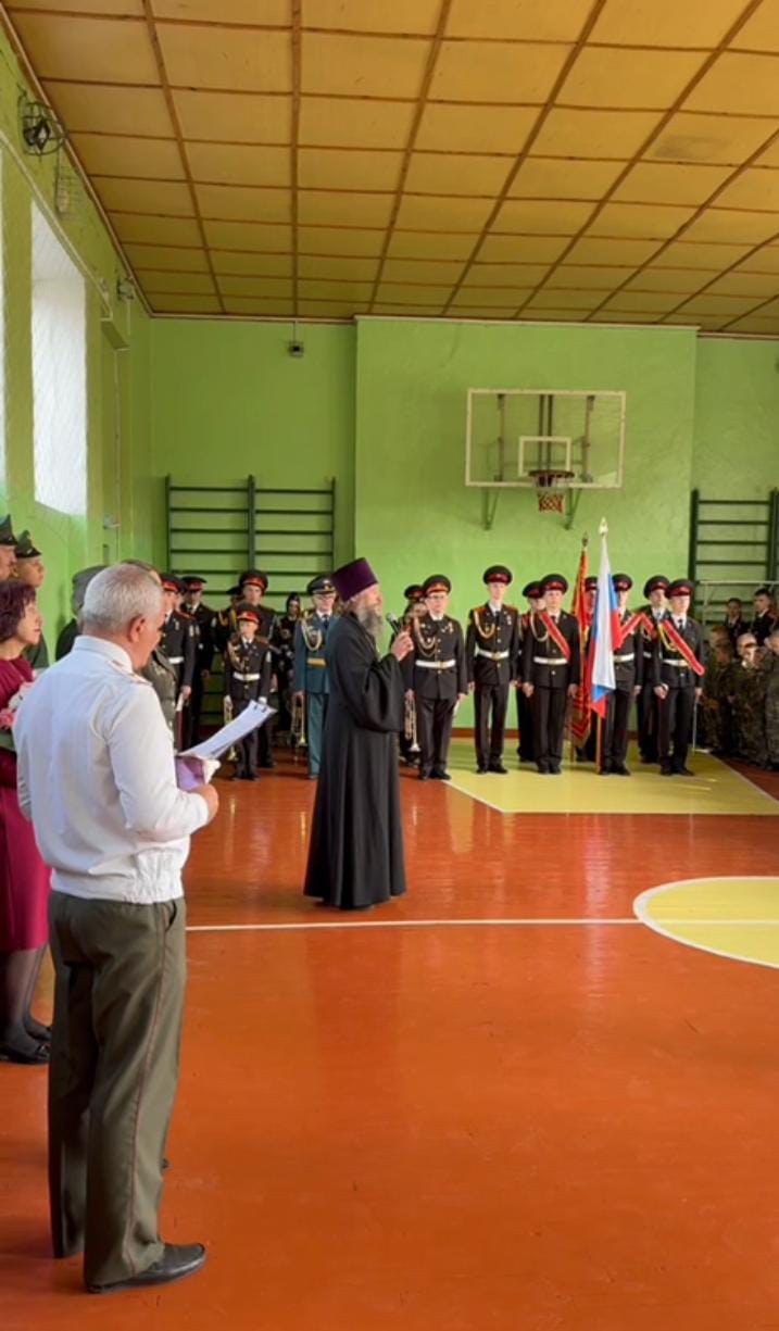 Совместно с сослуживцами, ветеранами и участниками СВО батюшка принял участие в торжественном построении Кадетской школы города Бийска.