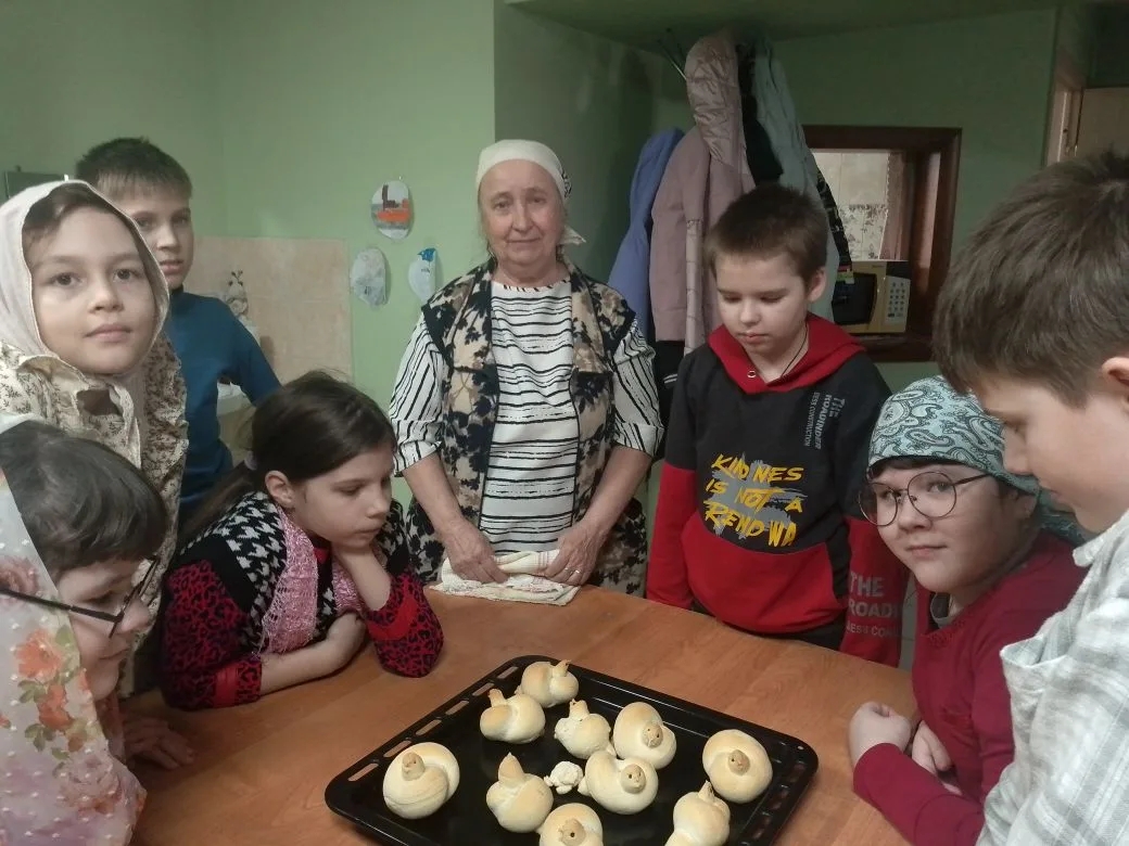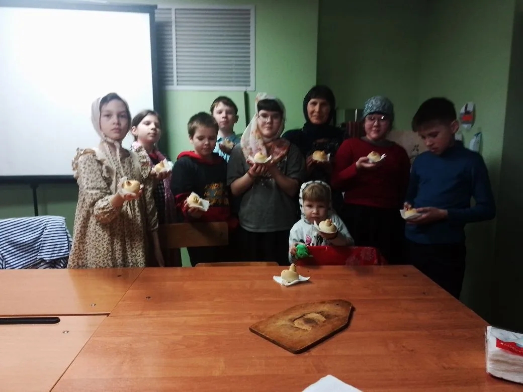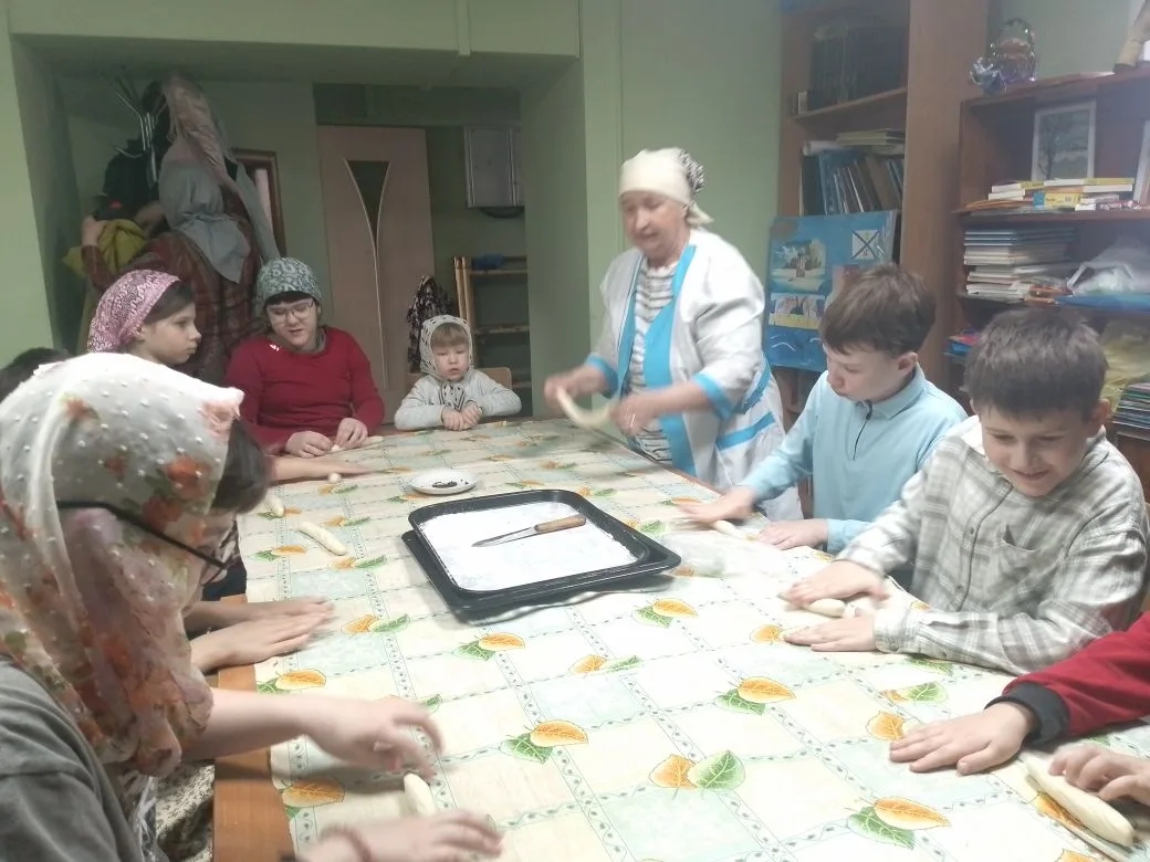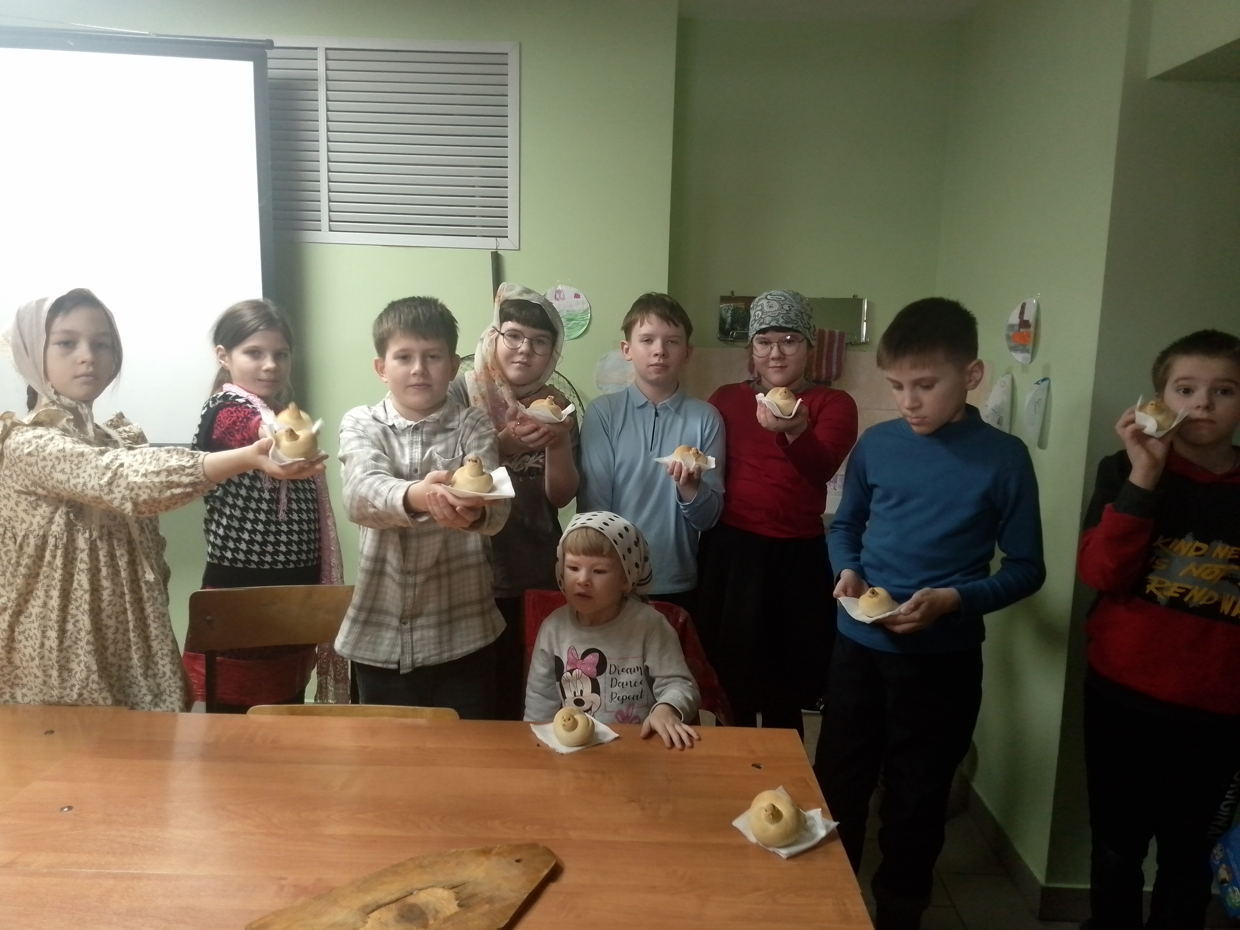 Настоятель храма иерей Георгий Степанищев рассказал воспитанникам школы об этом празднике. Затем дети под руководством просфорницы храма Екатерины Васильевны учились стряпать булочки в честь праздника в виде птичек. Пока булочки готовились к выпеканию, ребята вспоминали изученные молитвы и получили в подарок четки.