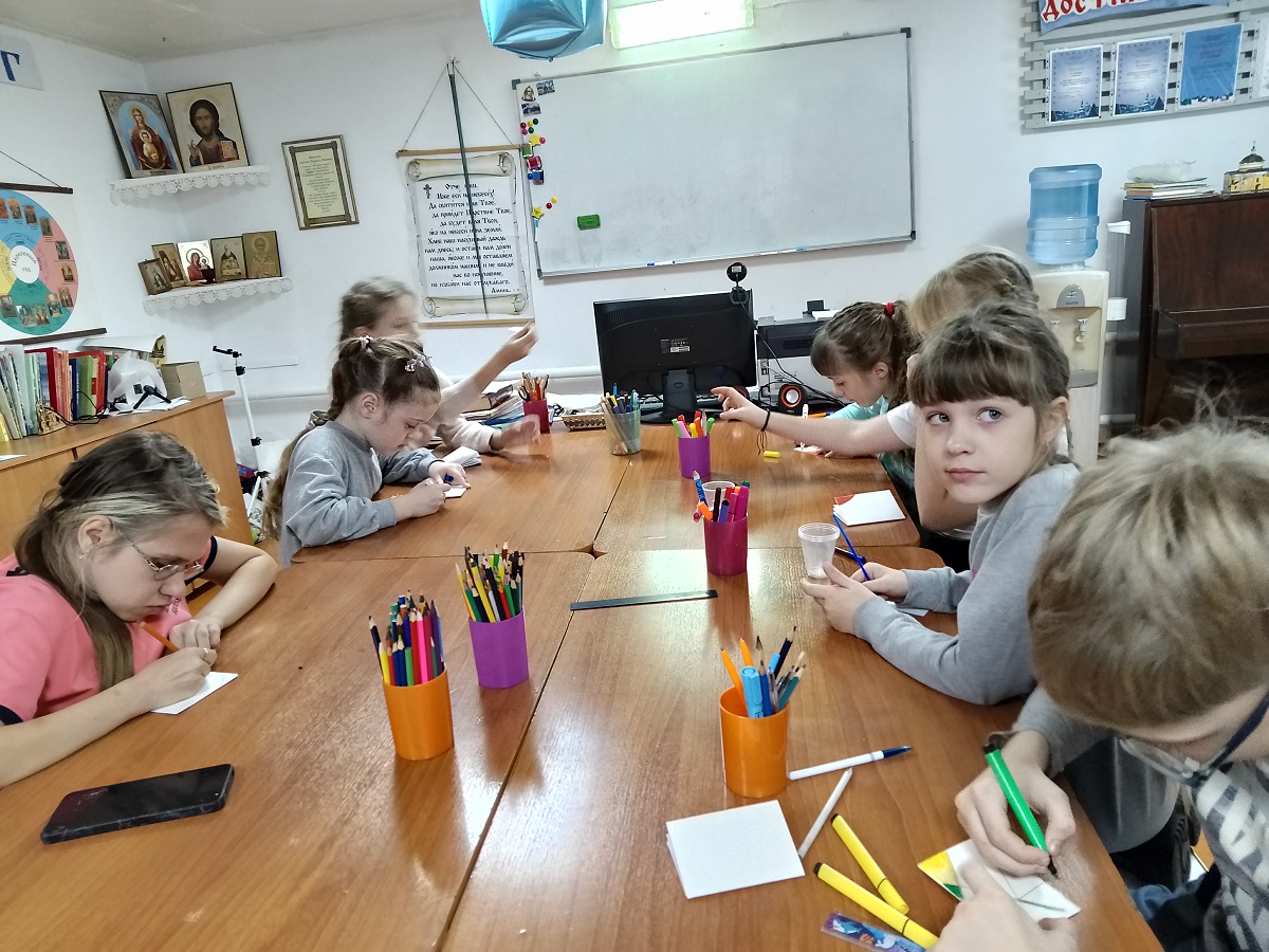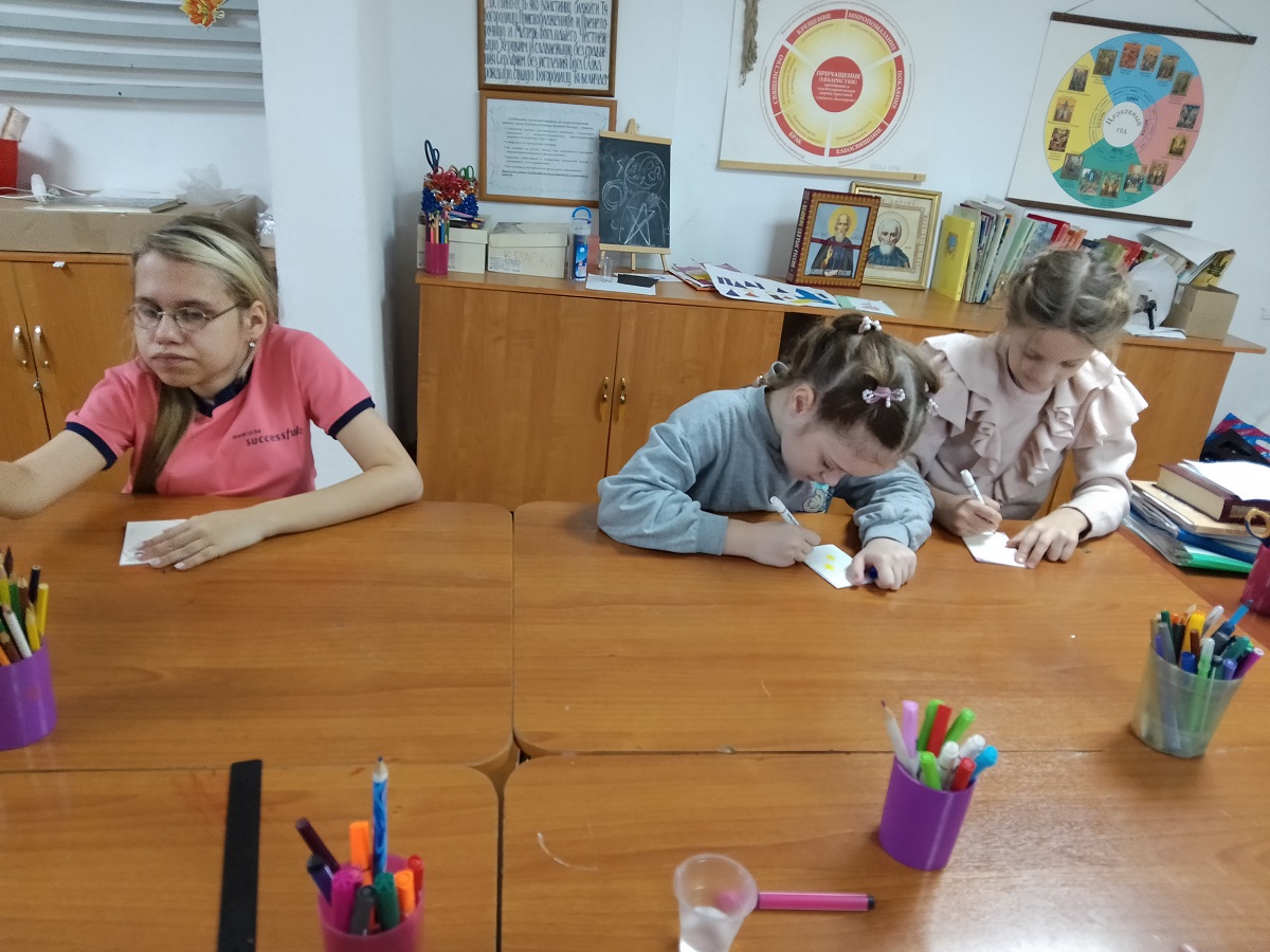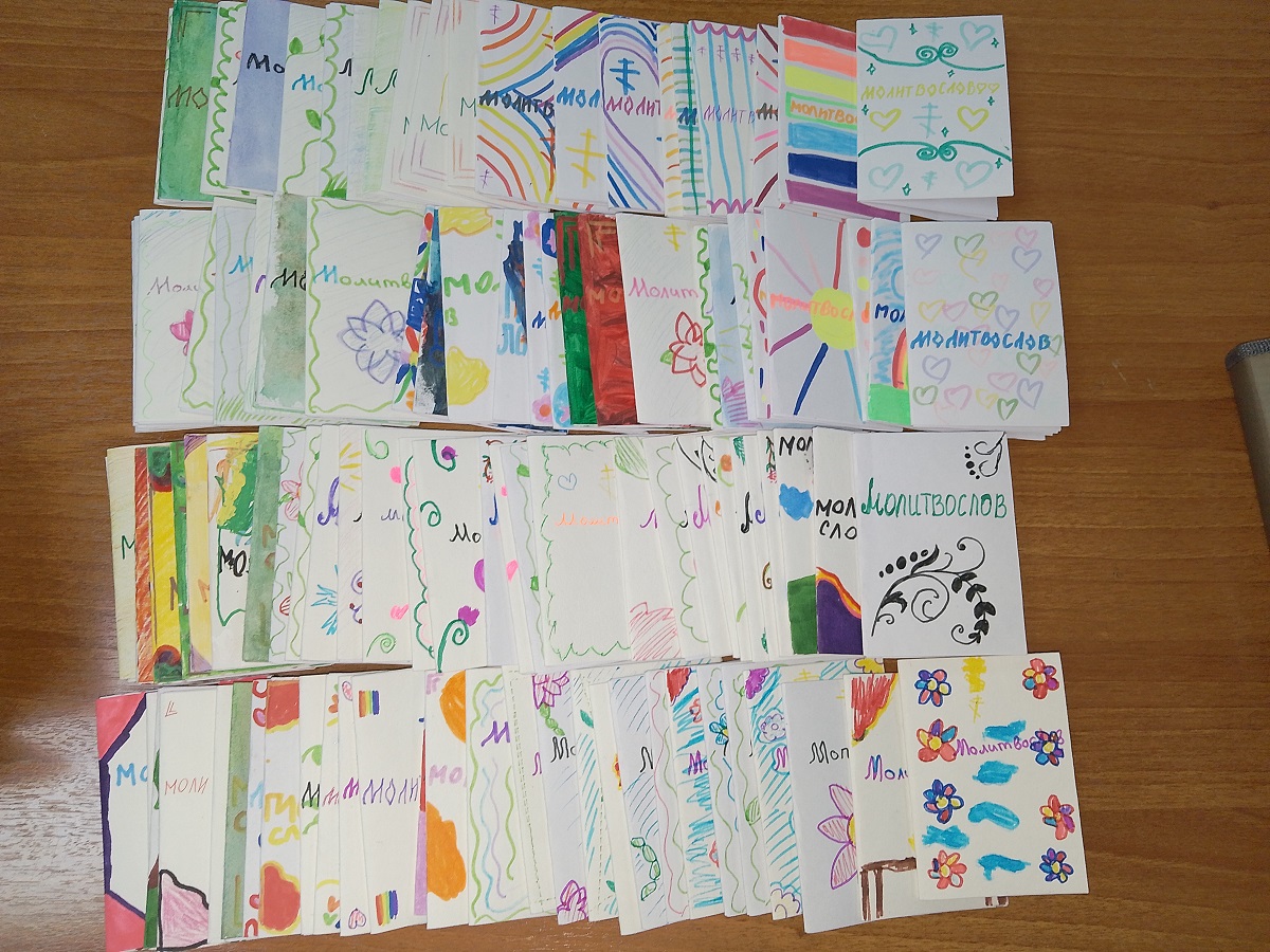 Ребята с энтузиазмом, чувством ответственности и благодарности нашим солдатам трудились над созданием молитвословов. В работу вложена молитва, чистая детская душа. Каждый молитвослов, кроме основных молитв, содержит искренние пожелания детей, которые они сами придумали и записали. Более 100 молитвословов были переданы в городской пункт сбора для воинов СВО и в ближайшее время отправятся к адресатам.