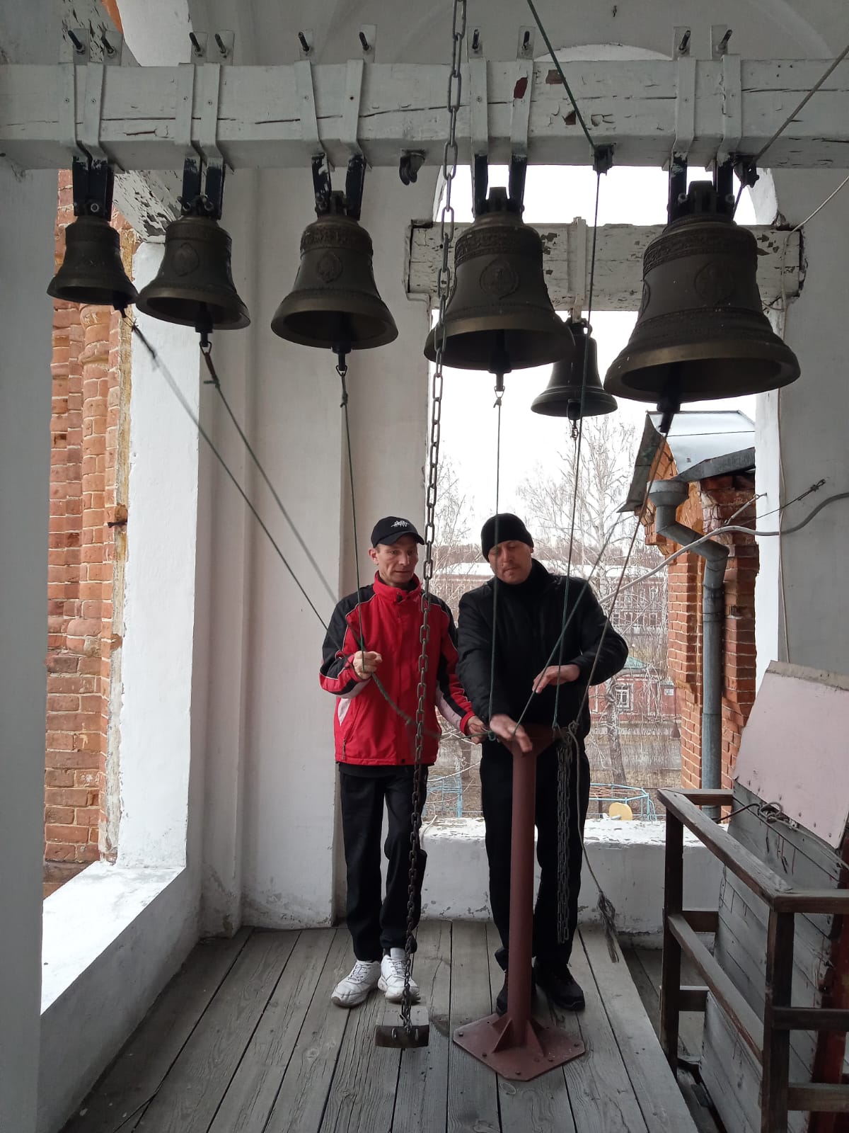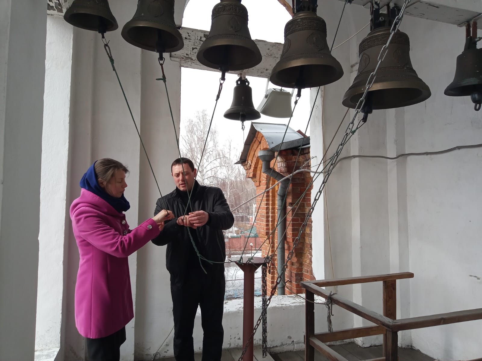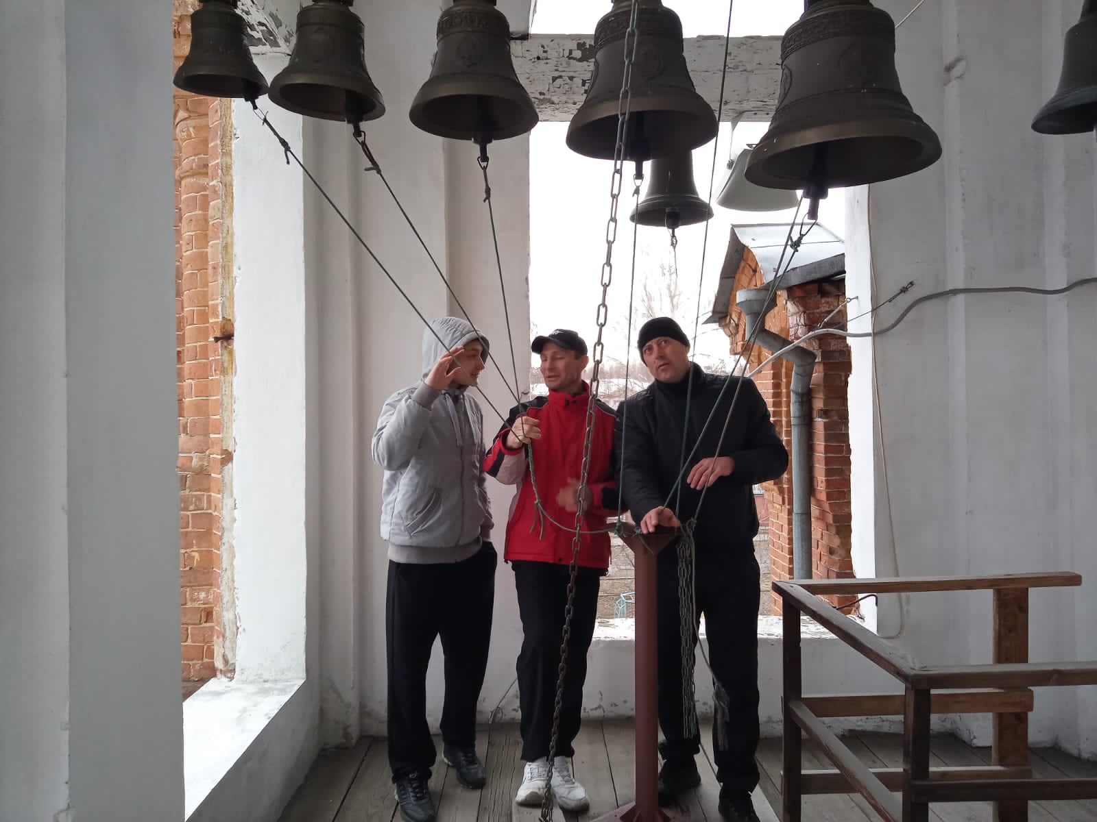 При содействии воспитанника воскресной школы храма, выпускника школы звонарей Павла Камбалина, участники занятий смогли отработать практические навыки профессии звонаря.