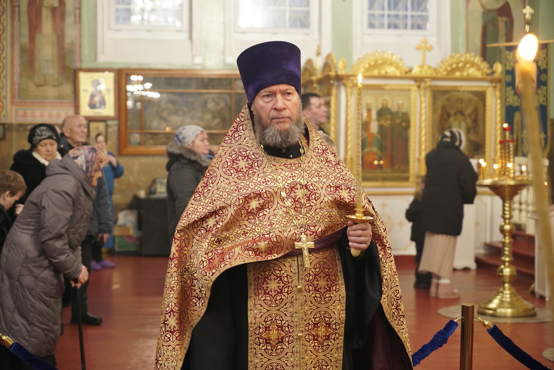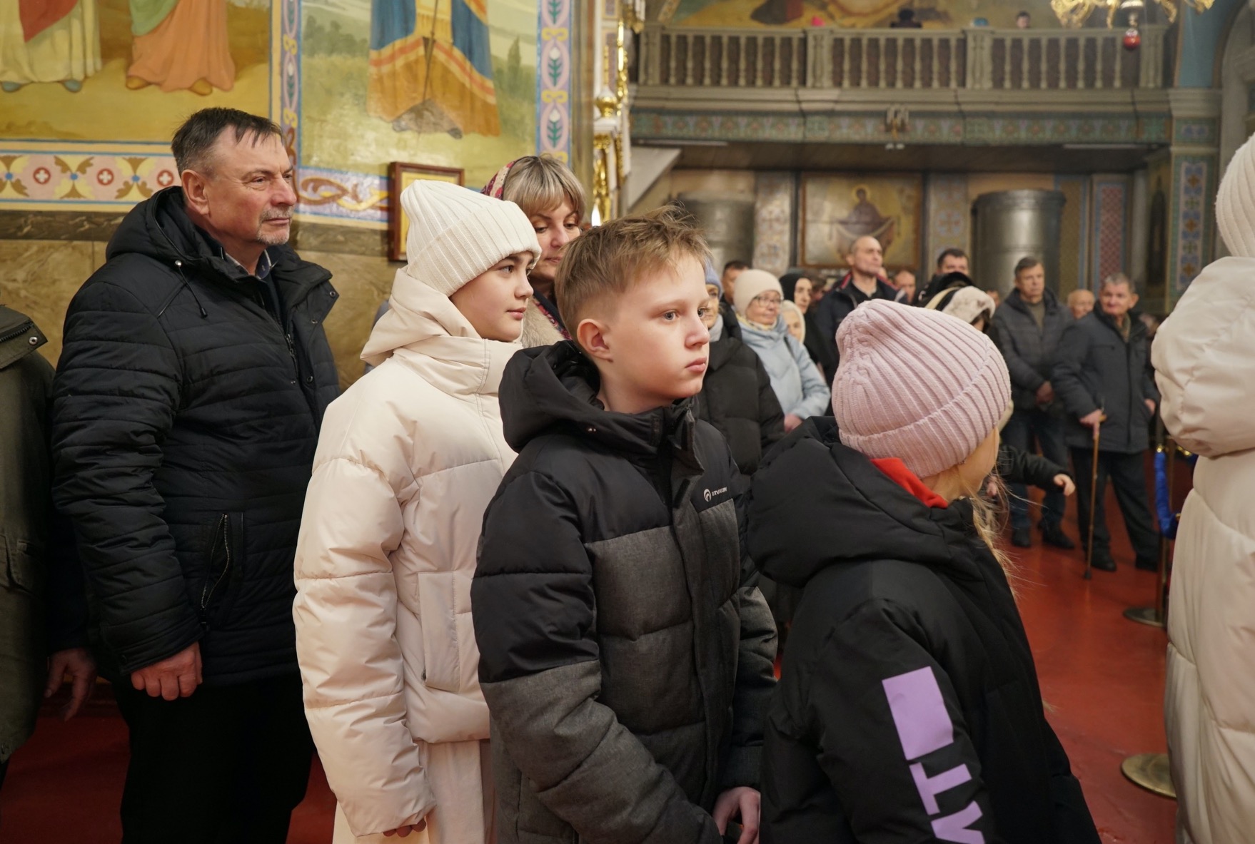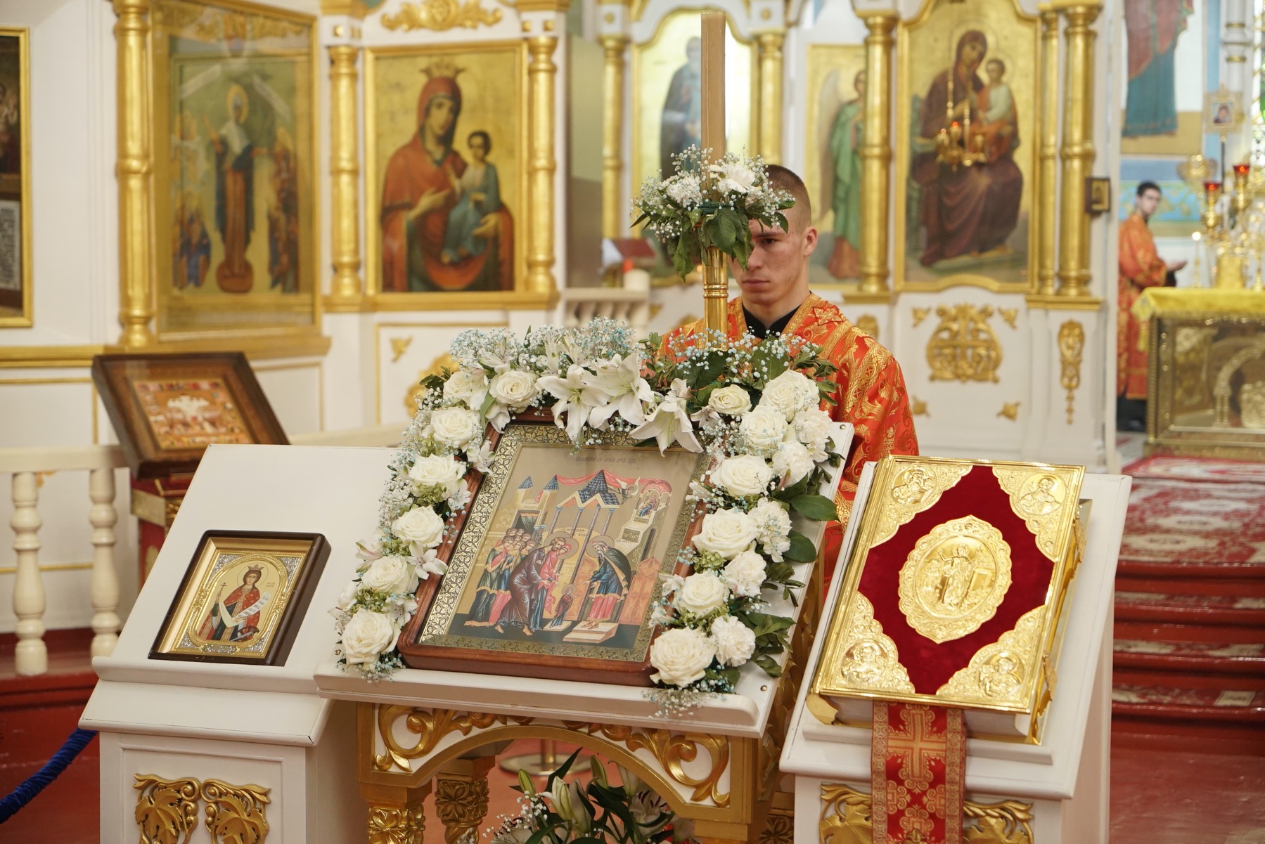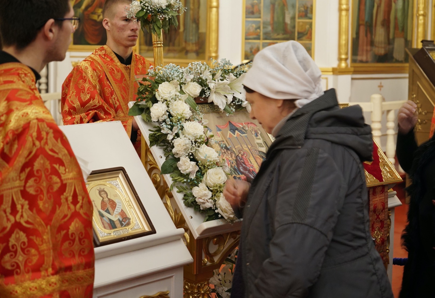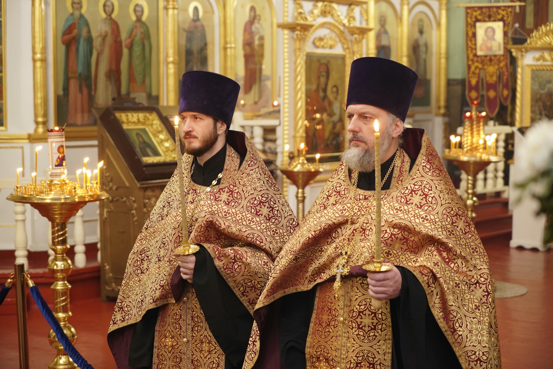 Его Преосвященству сослужили: ключарь собора протоиерей Александр Петров, протоиерей Владимир Ащеулов, иерей Иоанн Шкуропацкий, диакон Вадим Шпак, диакон Никита Гологузов, диакон Артемий Волков.