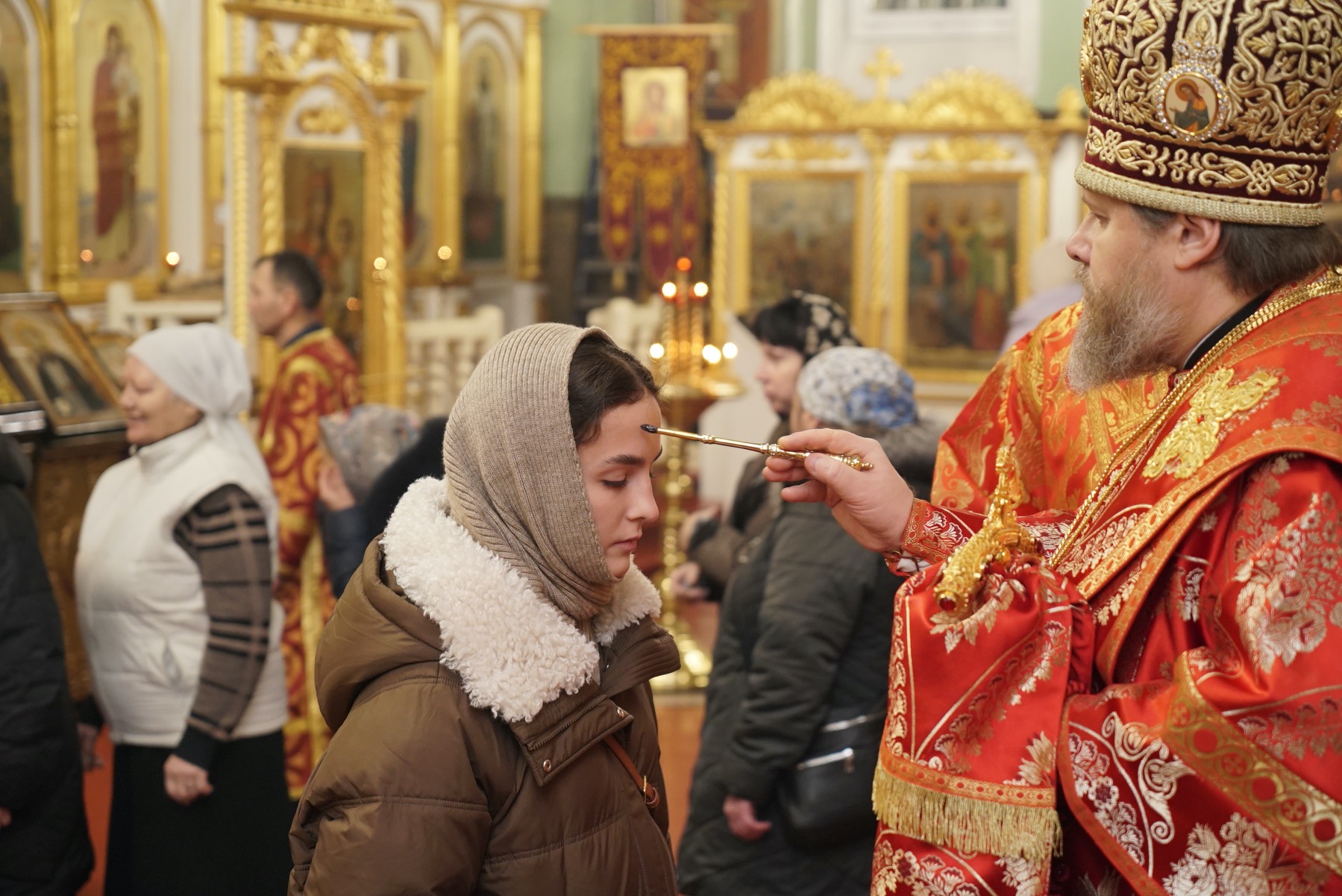 На утрене во время чтения канона архипастырь помазал верующих освященным елеем.