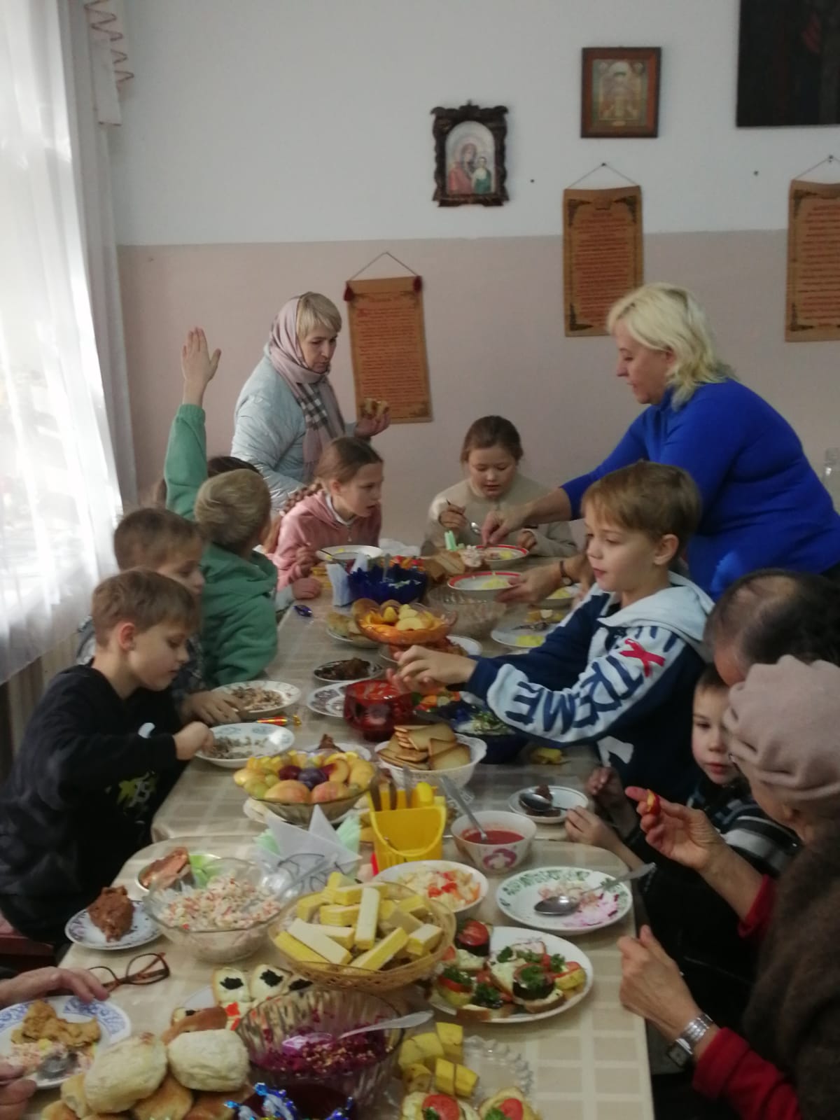 После молебна ко Пресвятой Богородице крестоходцев и всех прихожан ожидала праздничная трапеза у стен храма и концерт, на котором выступил хор воскресной школы "Радость моя" и студенты музыкального колледжа.