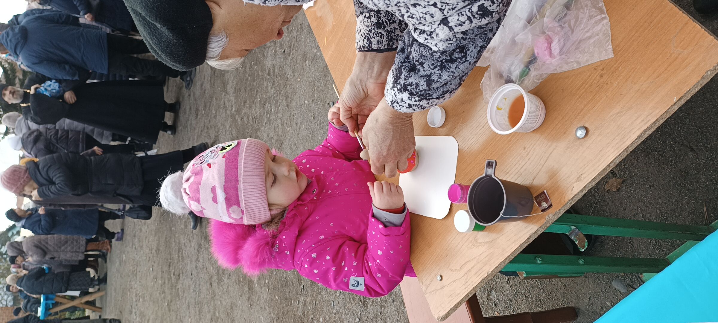 Для гостей был организован мастер-класс по росписи керамических игрушек, осенняя фотозона, выставка поделок, горячий чай с пирогами и праздничная трапеза.